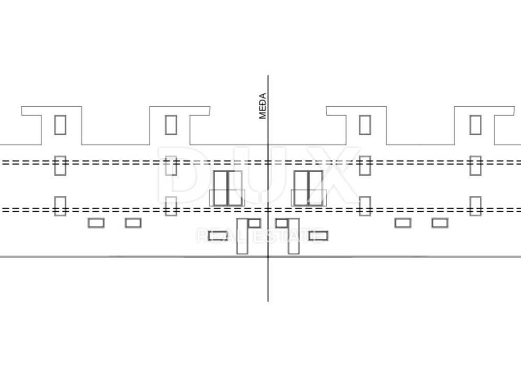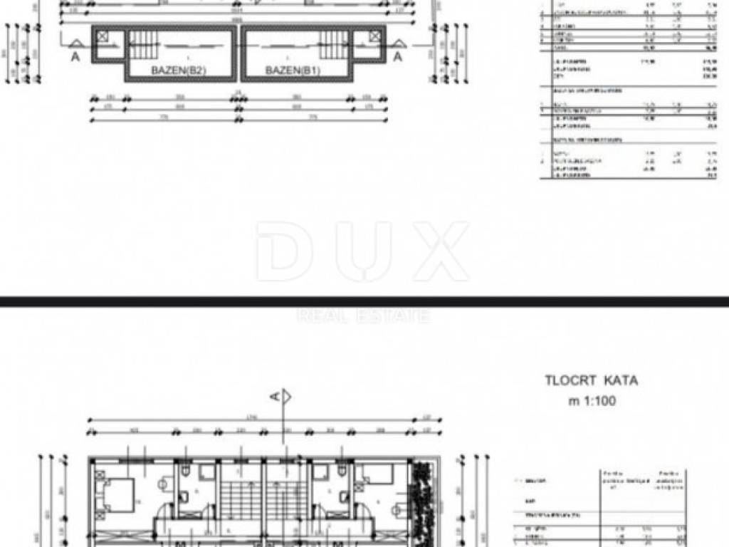 Projekt predviđa izgradnju dvojne kuće s dvije stambene jedinice, svaka površine 130 m, s vlastitim bazenom. Objekt se sastoji od podruma, prizemlja i kata (Po+Pr+1), a dodatni izlaz vodi na prostranu krovnu terasu. Lokacija je vrlo mirna, pogodna za život ili turistički najam, s osjećajem privatnosti i tišine, a opet blizu svih bitnih sadržaja i mora.