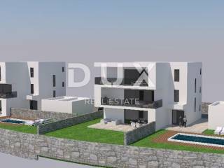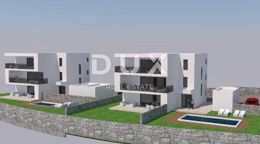 In a quiet location on the island of Rab, apartments are for sale in a new building, which is surrounded by greenery and silence. We present an apartment on the 2nd floor, with a usable living area of 98 m2, with a terrace of 25.33 m2. The apartment consists of an entrance area, an open-space living area with a kitchen, dining room, living room with access to the terrace, two modern bedrooms, each with its own dressing room, two bathrooms, technical rooms. On the outside there is a shared swimming pool and a garage, which belongs exclusively to this apartment. NEW CONSTRUCTION! Opportunity in a quiet location. Exceptionally high-quality building, built of Ytong blocks, 20 cm thick interfloor panels, 2.62 meter high rooms. Thermal insulation and waterproofing. The facade is a combination of a white silicone plastered facade layer with parts of the building in anthracite color. The roof is flat with sheet metal trim, drainage and multi-layer insulation. Triple-glazed windows, white on the inside, anthracite on the outside, and electric ALU shutters. The entrance door is aluminum, anti-burglary, with a locking system and preparation for smart control. The floor coverings will be the same throughout the apartment, i.e. 60x60 cm ceramic tiles will be installed. The bathrooms will have Geberit built-in cisterns, a walk-in shower, a "Rainshower" system, wall-mounted electric heating with WiFi control. Each room will have WiFi-controlled air conditioning. The property is ideal for those looking for modern architecture, away from the hustle and bustle. "Ready to move in" - a solution without additional investment!! You certainly don't want to miss this opportunity, so contact us while you can still make a good choice and a smart investment! The planned completion date is 06/2026.