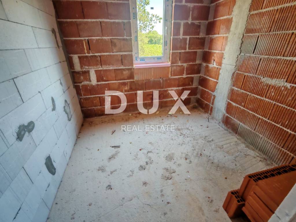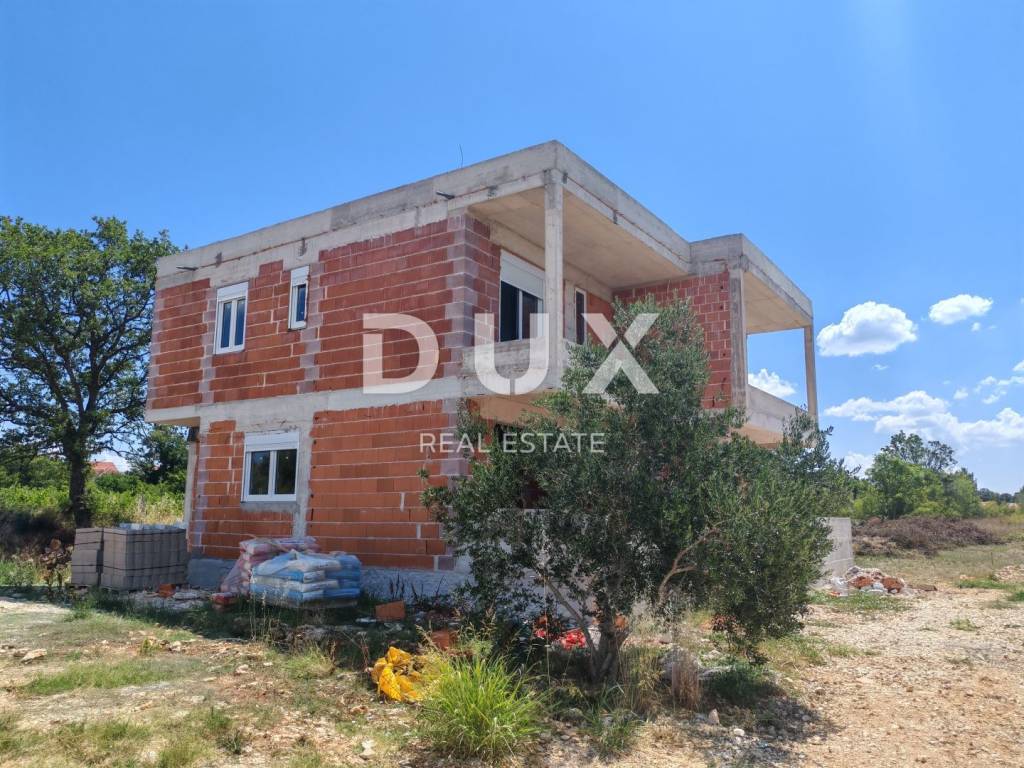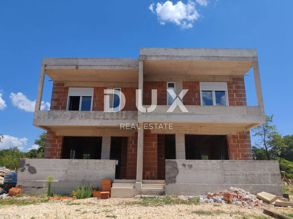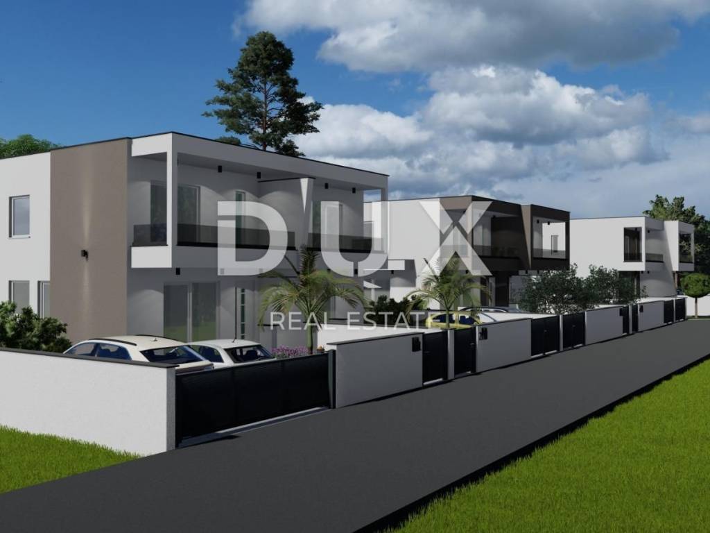 In the peaceful and family-friendly setting of Poličnik, just a ten-minute drive from Zadar, a modern semi-detached house with a swimming pool is being built - perfect for a pleasant and quality family life. On the ground floor there is a spacious living room with access to the terrace, a modern kitchen with a dining room, a pantry, a guest toilet and a beautifully landscaped garden, ideal for relaxation or children's play. On the first floor there are three comfortable bedrooms, the main one of which has its own dressing room and access to the terrace, as well as a modern bathroom. The project includes a total of three duplex villas, each with its own swimming pool and a fenced garden. The first villa is currently under construction, and the completion of the works is scheduled for spring 2026. Each house consists of a ground floor and an upper floor, connected by internal stairs, while the garden will be enriched with Mediterranean vegetation, with a secured parking space and a 15 m2 swimming pool. The construction is carried out according to high standards: walls made of thermo block bricks, facade insulated with 8 cm of polystyrene, PVC joinery with triple glazing, roller shutters and mosquito nets. Four air conditioners are provided for heating and cooling one in the living room and one in each bedroom. Underfloor heating is installed in the bathrooms, and in the early stages of construction there is a choice between tiles, parquet or laminate for floor coverings. Poličnik is a place that combines a peaceful, family atmosphere with the proximity of all important amenities schools, shops and transport connections. The city of Zadar, only a ten-minute drive away, offers all the advantages of an urban environment beautiful beaches, rich cultural heritage, restaurants, promenades and numerous amenities for all generations. If you are looking for a quality home in a peaceful environment, yet close to the city, this is an ideal opportunity. Contact us for additional information and a viewing!