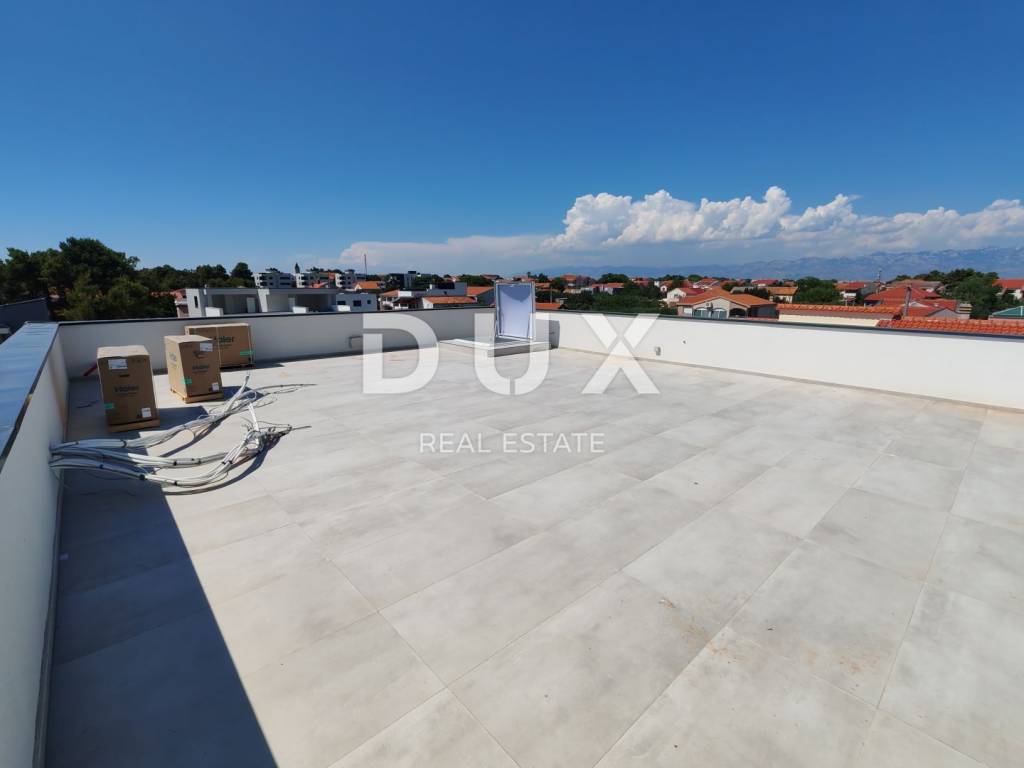 For sale is an exclusive apartment on the second floor of a new building, located only 180 meters from the beautiful Jadro beach on the island of Vir - a perfect combination of modern comfort and Mediterranean ambiance. This spacious apartment with a living area of 95 m2 is located in a building with a total of three residential units, built in 2025. In addition to offering a practical and functional layout, the apartment stands out with top-quality materials and modern technical solutions. It consists of two spacious bedrooms, a modern bathroom, an additional toilet, a storage room, a comfortable living room with access to a covered terrace and a shared yard - ideal for relaxation or family gatherings. The apartment also comes with 2 parking spaces. A special part of this apartment is a spacious 100 m2 roof terrace with a beautiful sea view. The apartment is equipped with underfloor heating with WiFi control, with each room having its own digital thermostat for individual temperature regulation. Electric shutters, air conditioning in the living room and bedrooms, security doors with smart locks, and mosquito nets on all windows and glass walls ensure a high level of comfort and security. Rectified designer Italian ceramic tiles have been installed, and the sanitary ware is by the renowned Hansgrohe. The building has separate water and electricity meters, including special meters for shared consumption. The island of Vir, connected to the mainland by a bridge, is an increasingly sought-after destination due to its natural beauty, safety, and excellent infrastructure. Jadro Beach is one of the most beautiful on the island, and the proximity of Zadar just a 25-minute drive away provides additional value, combining the peace of island life with the proximity of urban amenities. For more information and to arrange a viewing, please feel free to contact us. This property offers more than just a home it offers a premium lifestyle.
