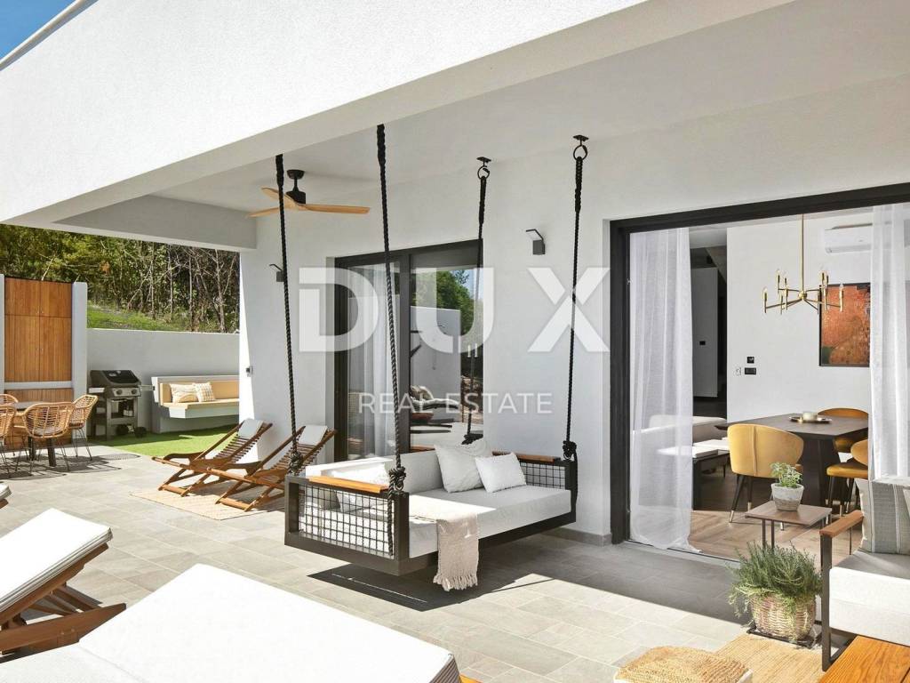 On the southeastern coast of Istria, where green hills meet the sea, where nature and heritage unite, just four kilometers apart, there are two towns with different but complementary characters - Labin and Rabac. Rabac, due to its white pebble beaches, rich Mediterranean vegetation and crystal clear and clear sea, has been called the pearl of Kvarner. Once a small fishing village, Rabac is today an attractive tourist destination that hides an abundance of cultural events in its network of picturesque streets. The green surroundings of Rabac and the picturesque hinterland invite you to adventure, exploration and recreation throughout the year. Not far from Rabac and Labin, in a small village by the sea, an extraordinary villa with spectacular sea views is for sale. It is located in a quiet village with a view that encompasses Učka, the city of Rijeka, the Kvarner islands and the crystal clear Adriatic Sea, and the position of this property offers exactly this enchanting and unique view. It is characterized by a modern design and the construction used top-quality building materials according to the highest standards for residential construction. The design was based on the cascading configuration of the terrain, orientation towards the views of the blue sea and the charming landscape that surrounds it, and the interaction of the exterior and interior. The concept of the functional interior layout that extends over three floors is based on practicality, open floor plan and airiness. It stands out with a large number of glass walls, top-quality equipment and carefully selected elements of modern furniture, creating an elegant and aesthetically appealing ambiance filled with comfort. The basement consists of a playroom, toilet and an additional room that can be arranged according to your own wishes and preferences (wellness zone, office, bedroom). The ground floor consists of an open-concept space that unites the kitchen, dining room and living room, a bedroom with its own bathroom, a guest toilet and a laundry room. The first floor consists of three bedrooms with their own bathrooms and a terrace. The yard is fenced, minimalistically decorated with grassy areas and indigenous plants, providing privacy and peace, and the perfect harmony is rounded off by a swimming pool with a sunbathing area and a summer kitchen. There are parking spaces for 4+ cars and a Wallbox charger for electric vehicles is installed. This perfectly composed property is an exceptional opportunity for a comfortable family life as well as for investment in a tourist rental business.