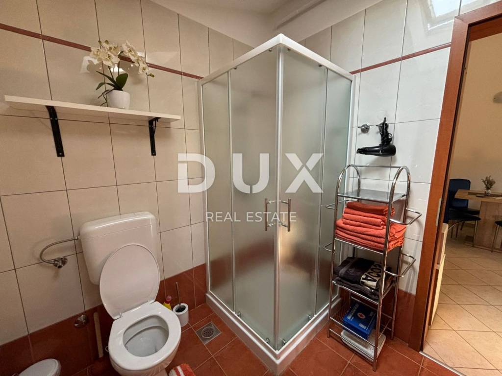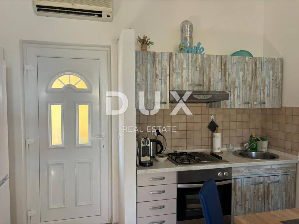 In the offer of DUX real estate we bring you the most sought-after type of property on the market! It is an apartment with a comfortable terrace and a shared swimming pool, barbecue and yard for maximum enjoyment at the sea. The apartment offers 39.85 m2 and consists of an open space living room with kitchen and dining room from which you access a beautiful terrace. In addition to the above, there is a bedroom that also has access to the terrace and a bathroom. We would like to point out that the living room has a height of almost 4 meters, so it creates a feeling of additional space and airiness, and you can also create a gallery. The apartment also comes with a storage room. The apartment is located 300 meters from the sea and is located in a smaller residential building that exudes a true maritime spirit! DOCUMENTATION: Ownership 1/1 No burden Usage permit! For organizing a viewing and all additional information, feel free to call us!