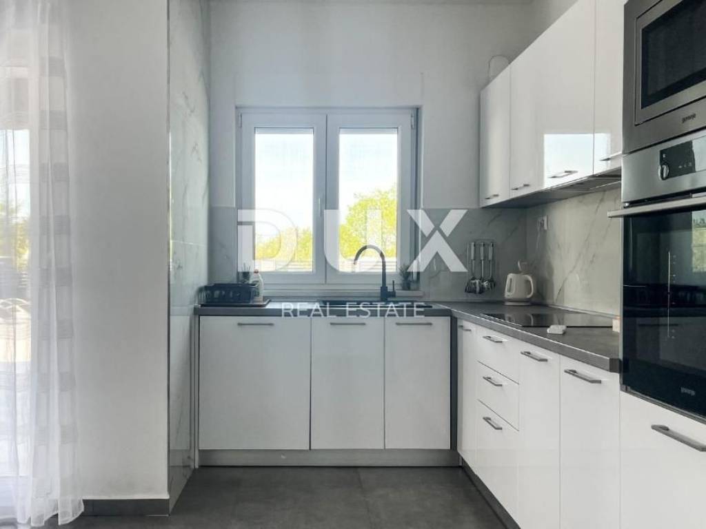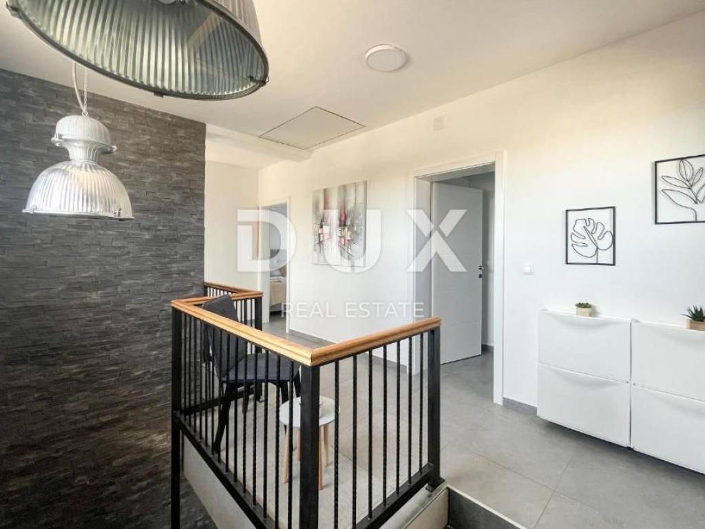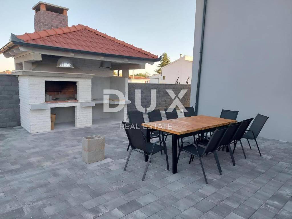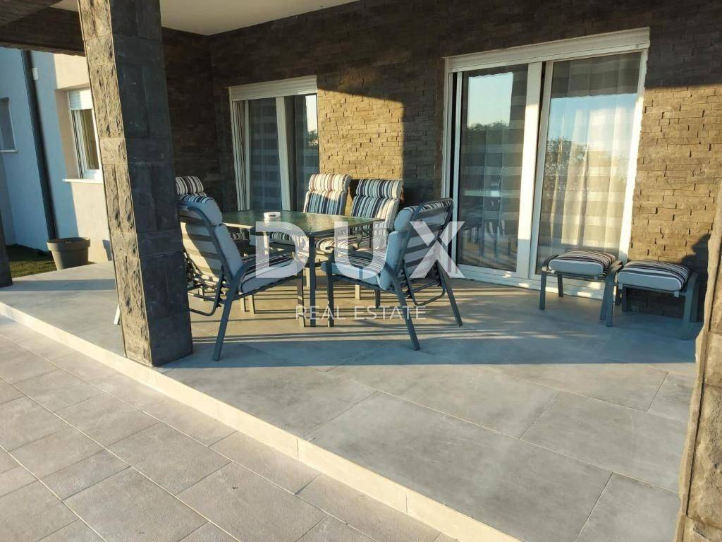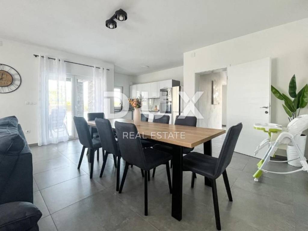 For sale is a beautiful, fully furnished villa with a swimming pool and a large landscaped garden, located in Murvica, a quiet village near Zadar. This modernly decorated family house covers 235.17 m of living space and is located on a plot of land with a total area of 1114 m. It was built in 2022 and offers everything you need for a comfortable life, rest and recreation, and due to its content and location it also represents an excellent investment opportunity for tourist rental. On the ground floor there is an entrance hall, a spacious kitchen with a dining room and living room, one bedroom, a laundry room, a bathroom, an additional toilet and a covered terrace ideal for outdoor living. An internal staircase leads to the first floor where there are three comfortable bedrooms, each with its own bathroom, and two covered terraces. One of the rooms has its own private terrace, while the other two share a common exit. The ground floor also includes a large garage that has been converted into an entertainment and recreation area, with billiards, darts and table tennis. In the spacious courtyard there is a 46 m heated swimming pool and outdoor shower, as well as a covered brick barbecue, a children's playground, a basketball court and small football goals. There is parking space for at least four cars on the plot. The house is well-equipped and fully furnished, and everything is included in the price. The facade thermal insulation is made of 10 cm thick polystyrene, the floors are covered with ceramic tiles, and the joinery is PVC. There are two air conditioners in the living room, while there is one in each bedroom. In addition, an 18 kW heat pump has been installed for year-round heating, and a 10 kWh solar system is planned to be installed. Murvica is located just a few minutes' drive from Zadar and is increasingly popular for a quiet family life, as well as for vacations. The place has all the necessary facilities for everyday life, and the proximity of the city ensures the availability of additional services and amenities.