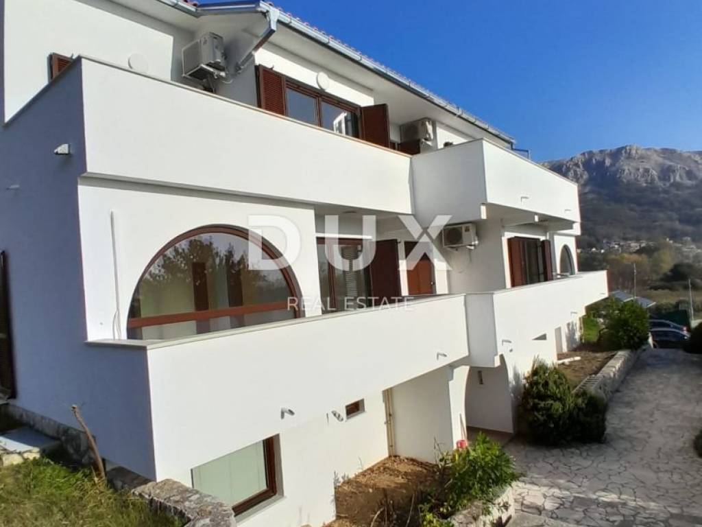 Located only 800 m from the sea, near Baška, this apartment of 61.46 m of living space offers the perfect combination of comfort and natural surroundings. It is located on the ground floor and consists of an entrance hall, a spacious living room and kitchen, a dressing room, two bedrooms, a bathroom and a separate toilet. Each room is covered with oak parquet, and the bathroom and kitchen are tiled. The living room opens onto an uncovered terrace, and one bedroom also has an exit to the yard with a swimming pool and a barbecue. The apartment is heated and cooled with Mitsubishi air conditioning, and the nature surrounding the building makes this apartment ideal for a vacation all year round. The carpentry is wooden. The apartment has its own electricity and water meter, a swimming pool in a shared garden and rich horticulture. It also uses one parking space in a shared parking lot. A good opportunity, very close to the most famous beach on the island of Krk!