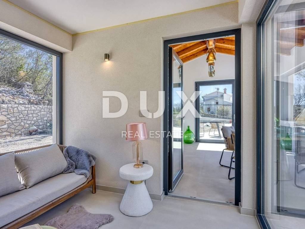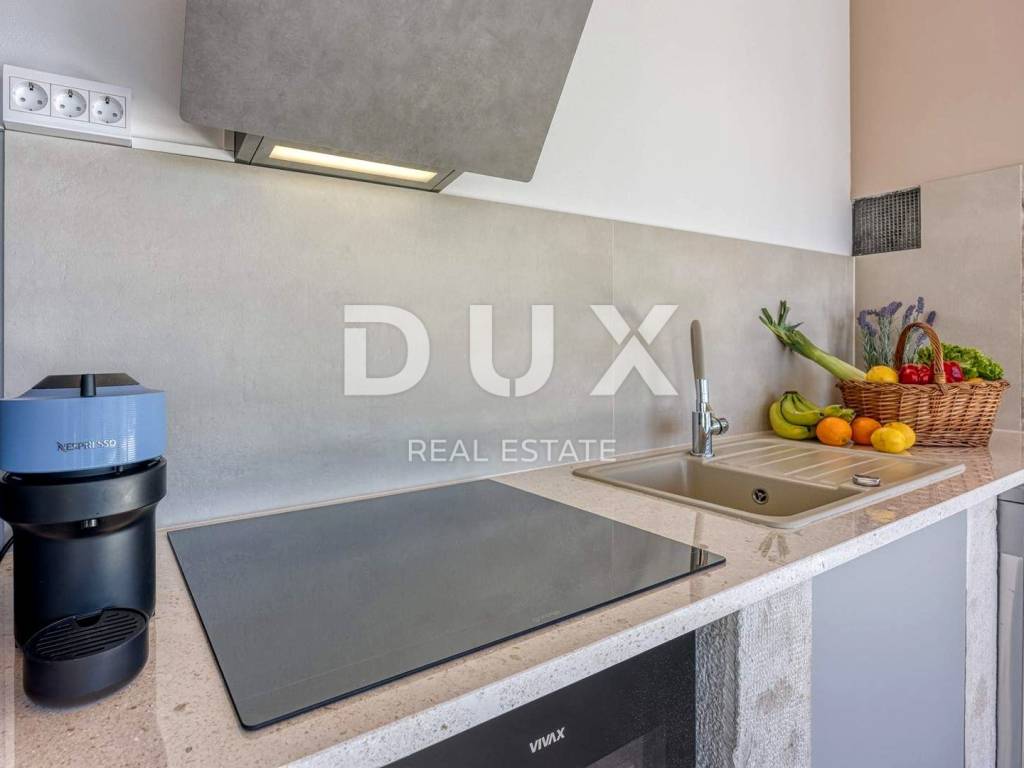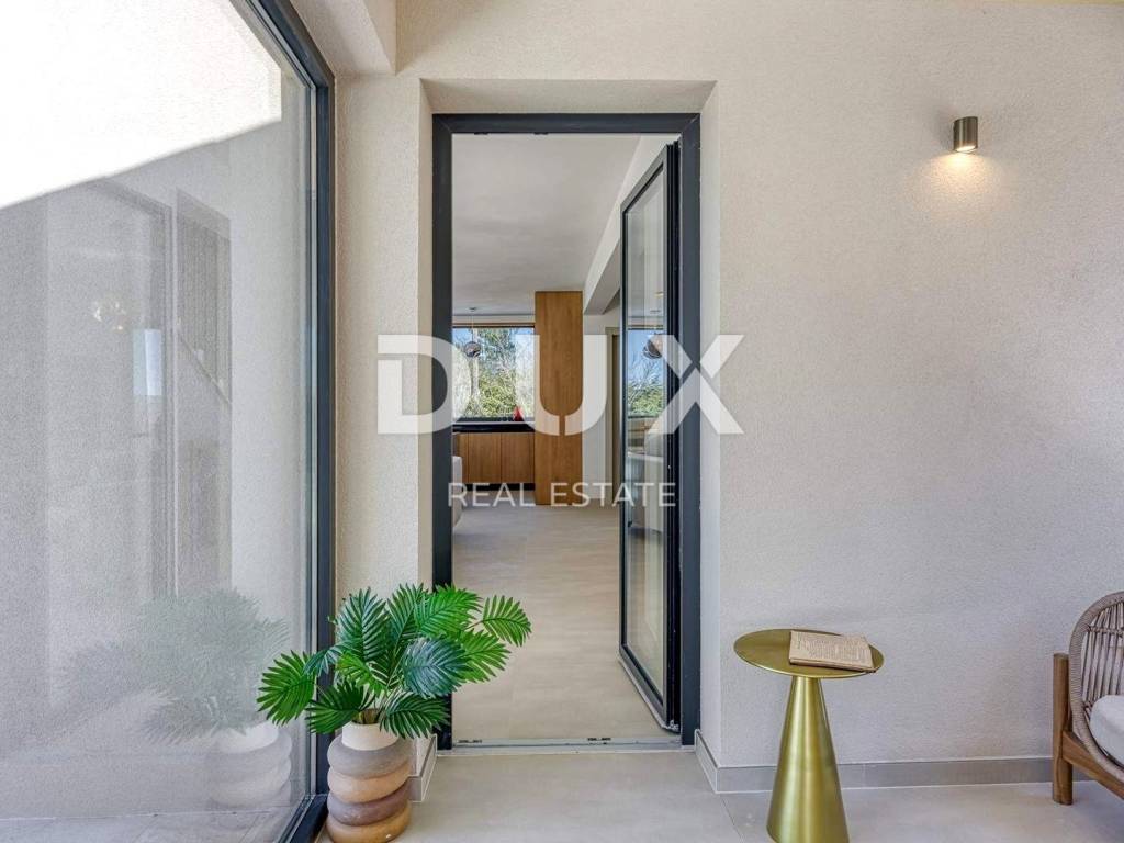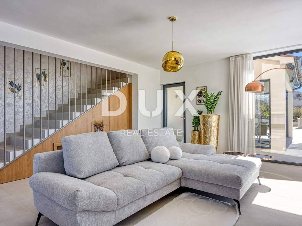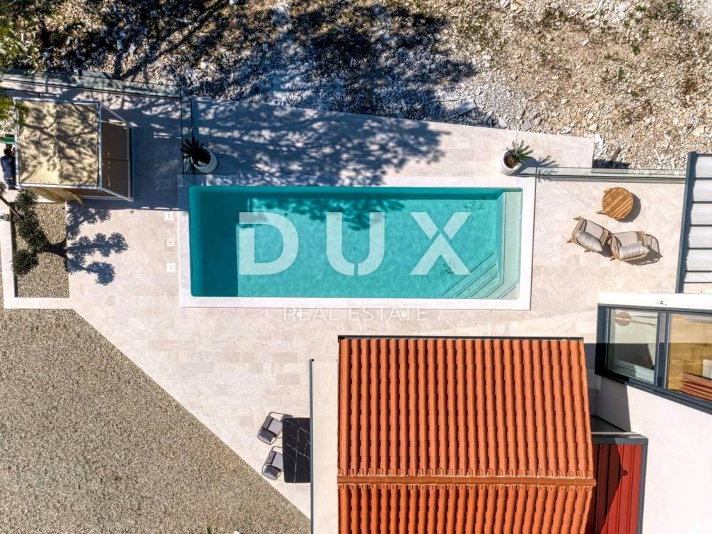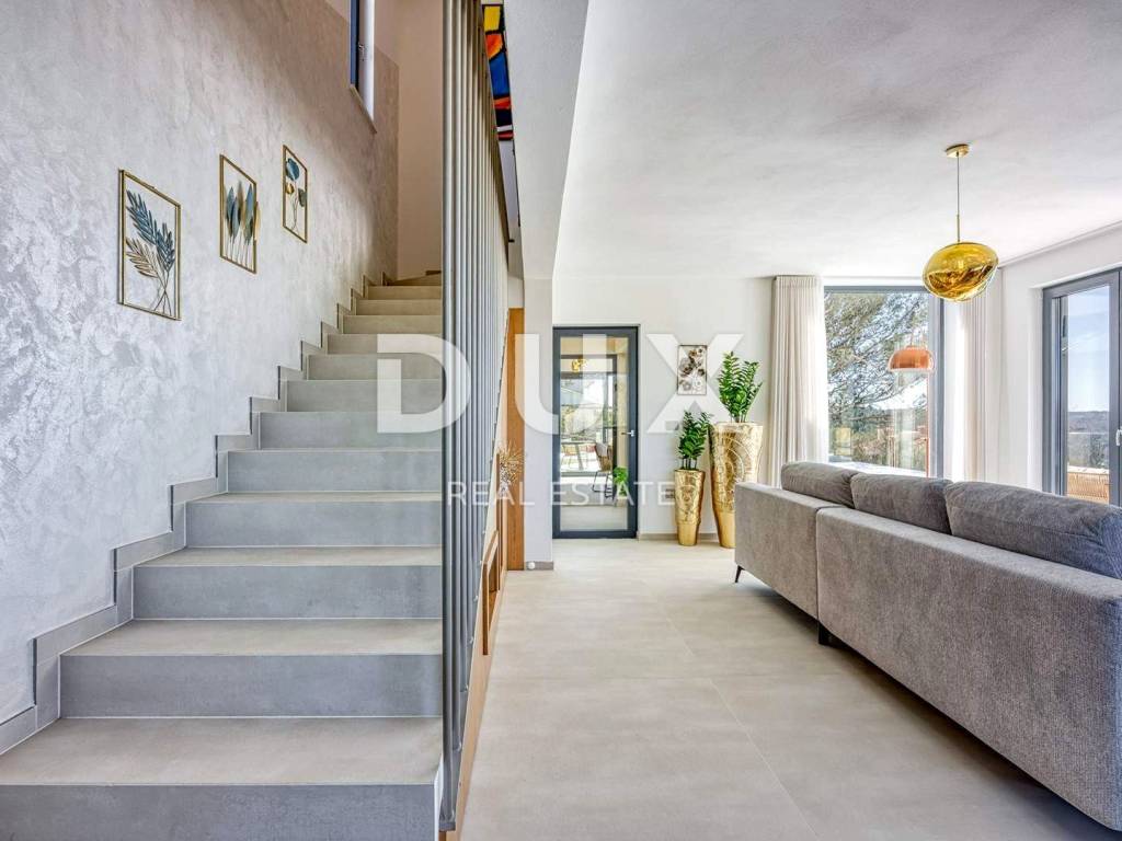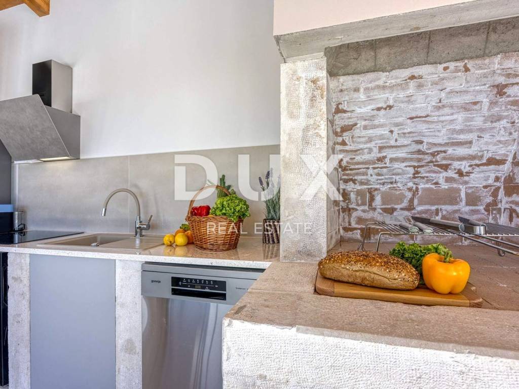 The ground floor consists of an open-concept space that unites the kitchen, dining room and living room with access to the terrace covered with a pergola and a guest toilet. The ground floor layout is complemented by a closed summer kitchen that is connected to the living area by a hallway.