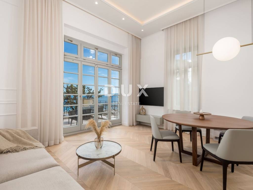 In the very center of Opatija, in a representative Austro-Hungarian building, there is this elegant and completely renovated property of 100 m. Located on the second floor, the apartment consists of an airy living room, a modern kitchen with a dining room, two bedrooms, two bathrooms and an additional guest toilet. High ceilings, quality materials and plenty of natural light create a sophisticated, yet pleasant atmosphere. The interior of the apartment is carefully designed in a contemporary style, combining aesthetics with functionality. The pride of this property is certainly the 25 m terrace, which offers a beautiful panoramic view of the Kvarner Bay ideal for enjoying your morning coffee, an evening rest or socializing with guests. The distance to the sea is only 30 meters, while all the key amenities the Lungomare promenade, restaurants, shops and cultural attractions are literally a few steps away. The apartment is located in an exceptional location with excellent transport connections. Volosko is a two-minute drive away, while Lovran is less than 10 minutes away by car. This property is an ideal opportunity for those looking for a combination of historical elegance and modern life on the Adriatic coast. To arrange a visit to the property, call the agent with confidence - consultation in German is possible.