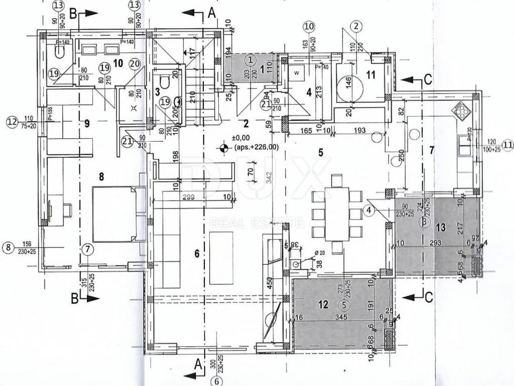Bathed in a pleasant Mediterranean climate, located in the heart of the western Istrian coast, the ancient town of Poreč and its coastline of preserved natural beauty, landscaped parks, pine and oak groves that reach the sea itself, along which the clear sea, beaches, bays and islands alternate, spreads over an area of 139 km and consists of 58 settlements. With the identity of an urban coastal city, Poreč is a city of culture, sports, entertainment, a city of tourism and true hospitality. One of the most attractive cities of Croatian tourism that uniquely combines the natural beauty of Istria, a rich cultural and historical heritage and the most modern amenities of a top tourist destination. The harmony of the old town core, which is a cultural monument, with one of the most famous Istrian cultural monuments, the Euphrasian Basilica, which is on the UNESCO World Heritage List, and the most well-maintained and best-equipped tourist settlements on the Adriatic, forms a mosaic of unforgettable experiences. Poreč is also a city that is much more than a summer destination of sun and sea. Poreč is a city tailored to humans. A city in which there is a constant impulse to make living conditions better and progress in various spheres greater. A city that is a pleasant, safe and well-maintained place to live where everyone can find their place, a city without surtaxes with high social sensitivity for all generations. Not far from the city of Poreč, there is a villa with panoramic views for sale. It is located in a charming settlement with panoramic views of the sea and the surrounding area, surrounded by greenery, vineyards, olive groves, family houses and holiday homes. It was designed respecting the profession, legal regulations and spatial planning documentation and was built according to the highest standards for residential construction. The property with an attractive exterior is perfectly integrated into the surrounding landscape, and the equally attractive and coordinated interior and harmoniously planned rooms show how every detail was thought of in the design. A large number of glass walls ensure maximum penetration of external light, which emphasizes the space and at the same time fluidly connects the interior with the exterior. The villa is designed as one residential unit that extends over two floors. The ground floor has an open-concept living area that combines a living room, dining room and kitchen with access to covered terraces, a bedroom with its own bathroom, a guest toilet, a laundry room and a technical room. An internal staircase leads to the first floor, where there are three bedrooms with their own bathrooms and private terraces, and a hall with a sauna or an office (depending on the needs of the future owners). The yard is decorated and fenced in an ambient and horticultural style. Complete harmony is provided by a covered summer kitchen and an overflow pool with a sunbathing area, next to which is an elegantly integrated lounge area with an open fireplace. The location, structure and comfort make this property an ideal opportunity for a peaceful family life as well as for an investment for the purpose of tourist rental. The seller of the property in question is a legal entity.