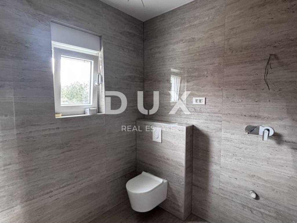 An apartment with a garden in a modern new building on the island of Vir near Zadar is for sale. The apartment with a living area of 57.26 m2 is located on the ground floor of a smaller residential building. It consists of two bedrooms, a kitchen, a dining room and a living room, and a bathroom. The apartment also has a terrace of 9.17 m2, a storage room, a yard with a garden of 100 m2, and two private parking spaces. The total usable area of the apartment, including all accessories, is 98.33 m2. The apartment is fully air-conditioned, and the bathrooms have underfloor heating. The facade is thermally insulated, the joinery is PVC, and the floor coverings are ceramic tiles and laminate in the rooms. The apartment is equipped with a video intercom, and the building has video surveillance. The property is located in an attractive location on the south side of Vir, in Torovima. The sea and the beach are 650 m away. There is a small shop nearby, and the town center is 3 km away. The island of Vir is a well-known tourist destination and the most visited place in Zadar County. Beautiful beaches and untouched nature are just some of the benefits of this island, which is located near the urban center of Zadar. Vir is 13 km from the historic town of Nin, which, in addition to rich cultural monuments, also has the longest sandy beach in Croatia, Kraljičina plaza. The urban center, the city of Zadar, is 30 km away, and the nearest airport is 38 km away.