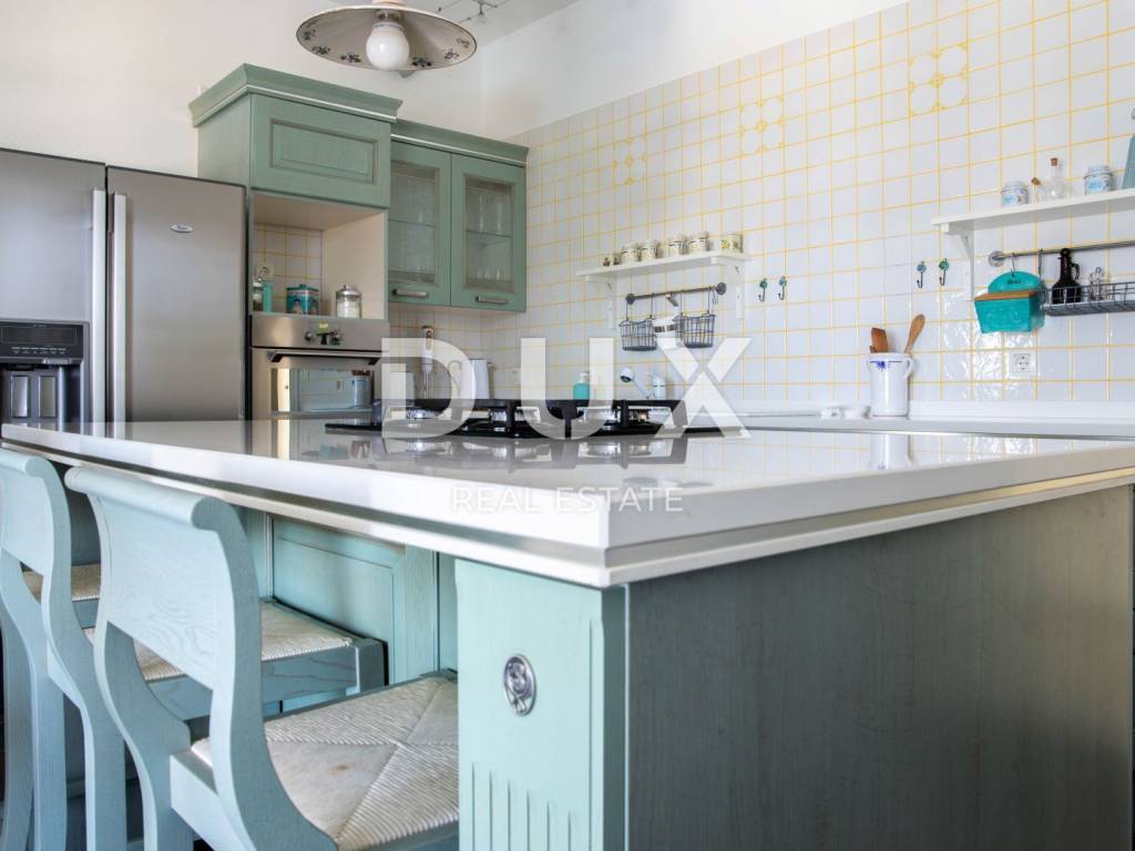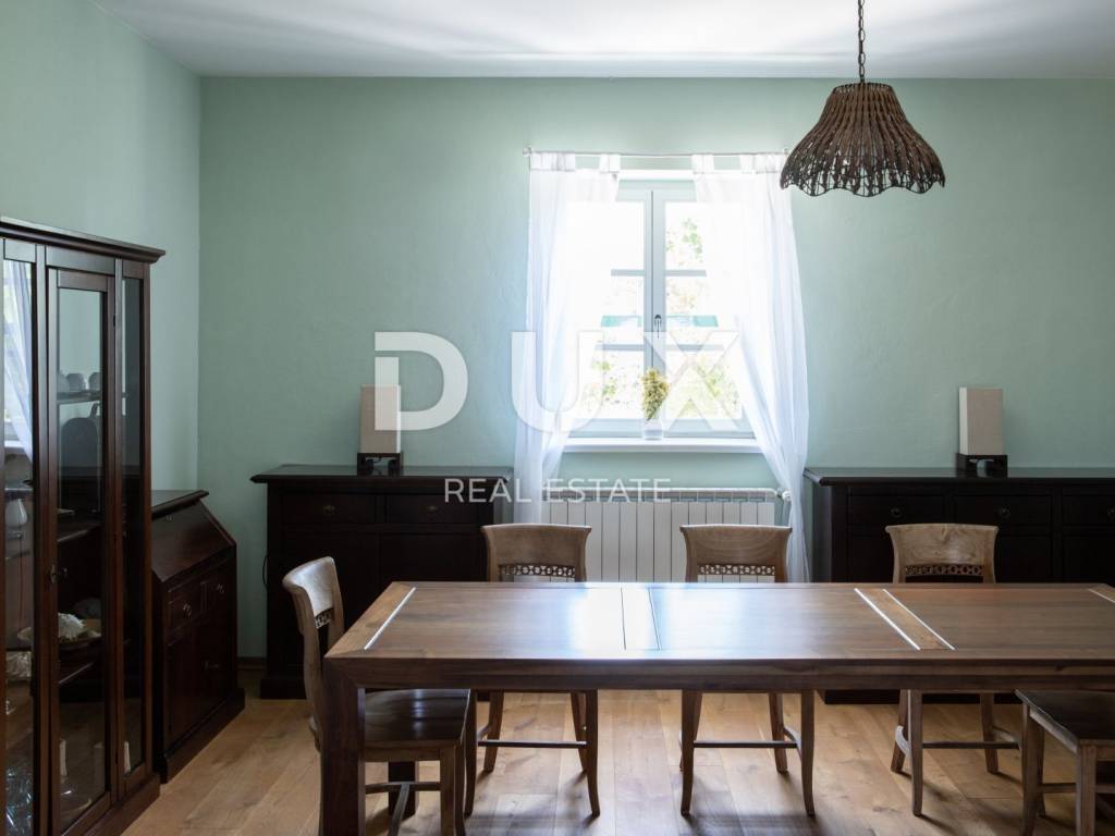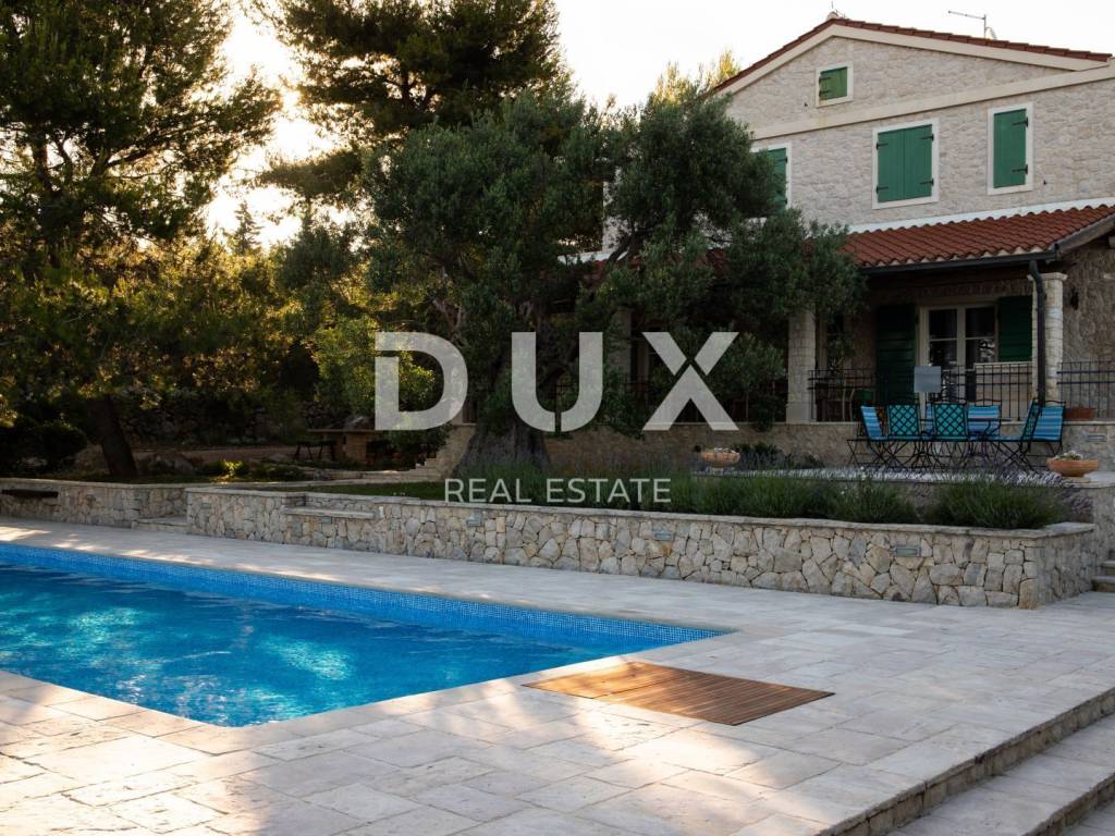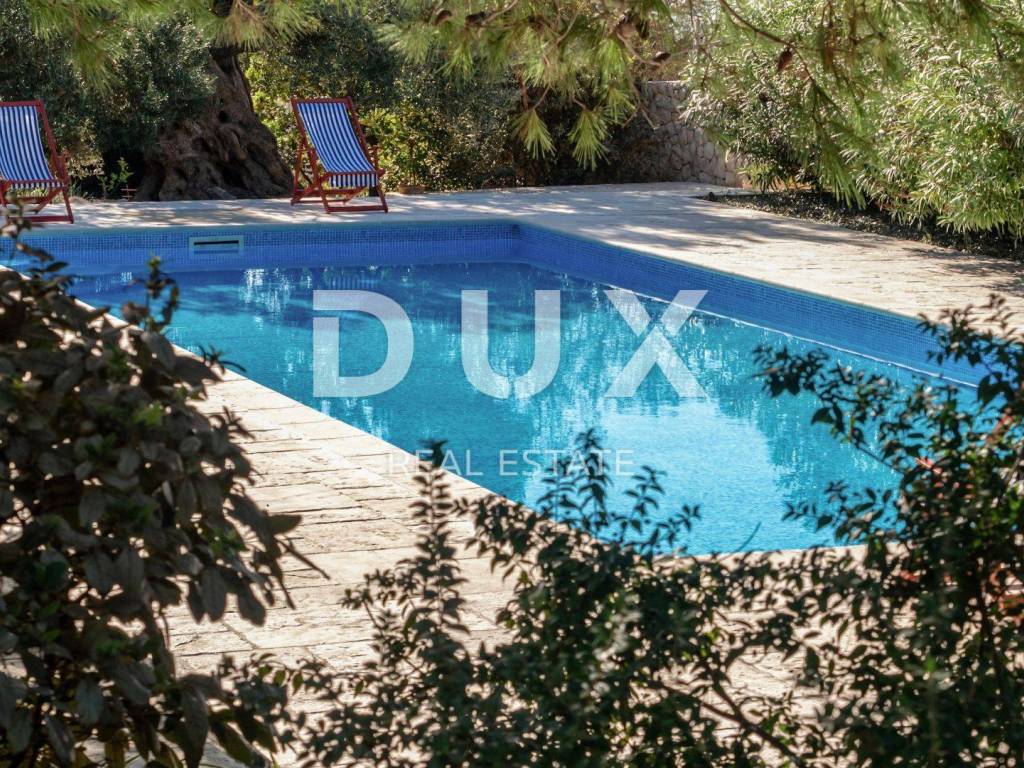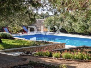 A unique villa with a swimming pool, a living area of 290 m2, is located on a beautifully landscaped garden of approximately 4000 m2. The villa is located between the towns of Lun and Tovarnela, about twenty kilometers from the town of Novalja. It is surrounded by renovated old dry stone walls and centuries-old olive trees. There are no other houses built in the immediate vicinity, which offers complete privacy and comfort. It is surrounded by an area of the protected Lun olive grove with several thousand centuries-old olive trees. The garden has a dozen centuries-old olive trees, as well as an olive grove with about thirty young olive trees. The house is surrounded by numerous plantations of Mediterranean plants: pines, cypresses, oleanders, lavender, rosemary, laurels, immortelle, as well as numerous other plants. The large garden of the villa has a swimming pool (5 x 15 m), a sunbathing area with deck chairs and a large covered terrace with a table and chairs for 10 people, and the terrace includes a barbecue area and a stereo system with outdoor speakers. The house is divided into two floors, where on the first floor we have four bedrooms with terraces and two bathrooms. Two rooms have access to terraces from which there is a view of the Kvarner islands of Rab, Cres and Lošinj. On the ground floor there is a fully equipped kitchen with direct access to a covered terrace, a living room with a corner sofa and a table for 10 people with also direct access to the terrace, a bathroom with a bathtub and shower and an additional utility room. The villa is surrounded by old Lun olive gardens, which are the main features of the historic village of Lun and with their landscaped walkways provide the pleasure of long walks or bike rides. It is only a few minutes walk from numerous beaches (the nearest is 250-300 m from the house). The Lun olive groves are what makes the town of Lun unique on the island of Pag, but also in the world. Among the approximately 80,000 olive trees in the Lun area, the approximately 1,500 wild olive trees (lat. Olea Oleaster) that are 5-8 meters high and 20-80 centimeters in diameter stand out. This area of wild olives, covering an area of 24 hectares, is the only one of its kind on the Adriatic and one of three locations of its kind in the world, and therefore has great botanical value. Due to its characteristics, it was protected and declared a botanical reserve in 1963. Lun olive oil is of special quality and aroma and is considered one of the best on the Adriatic. RARELY AVAILABLE!