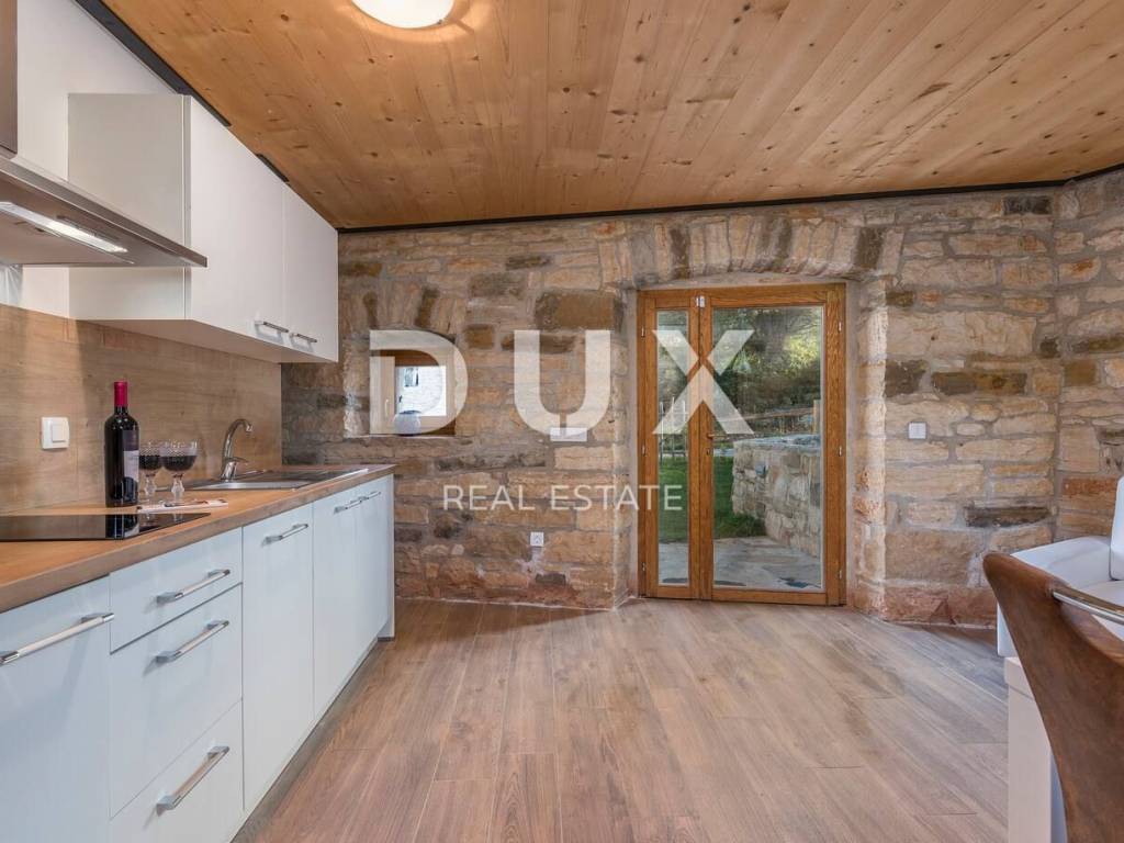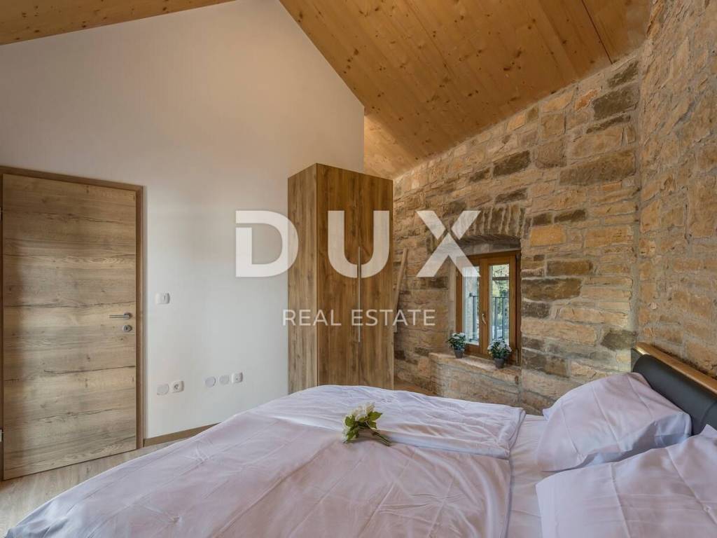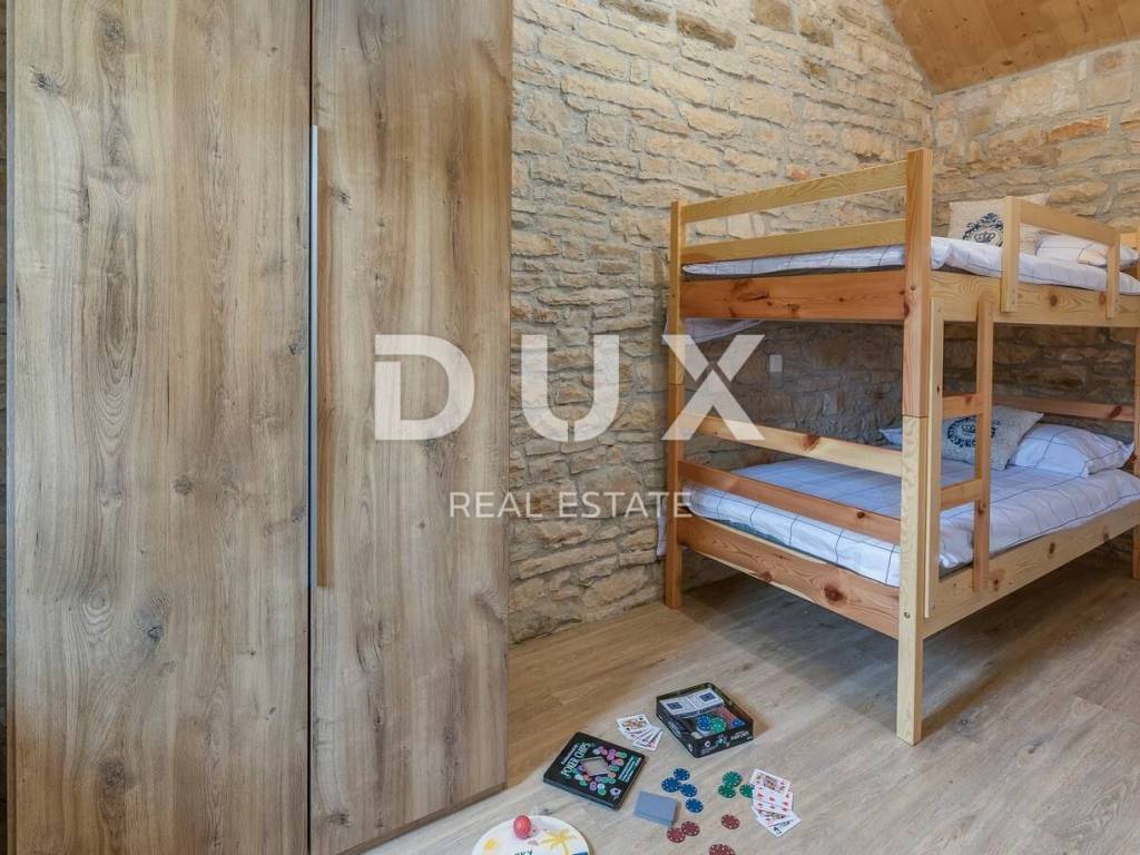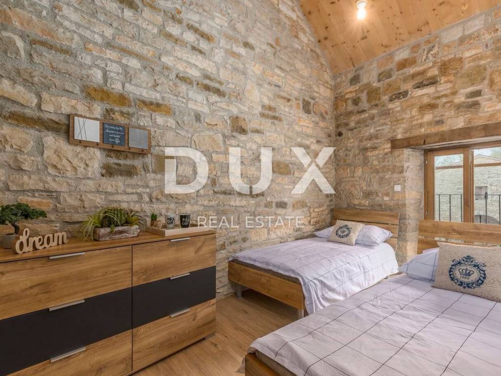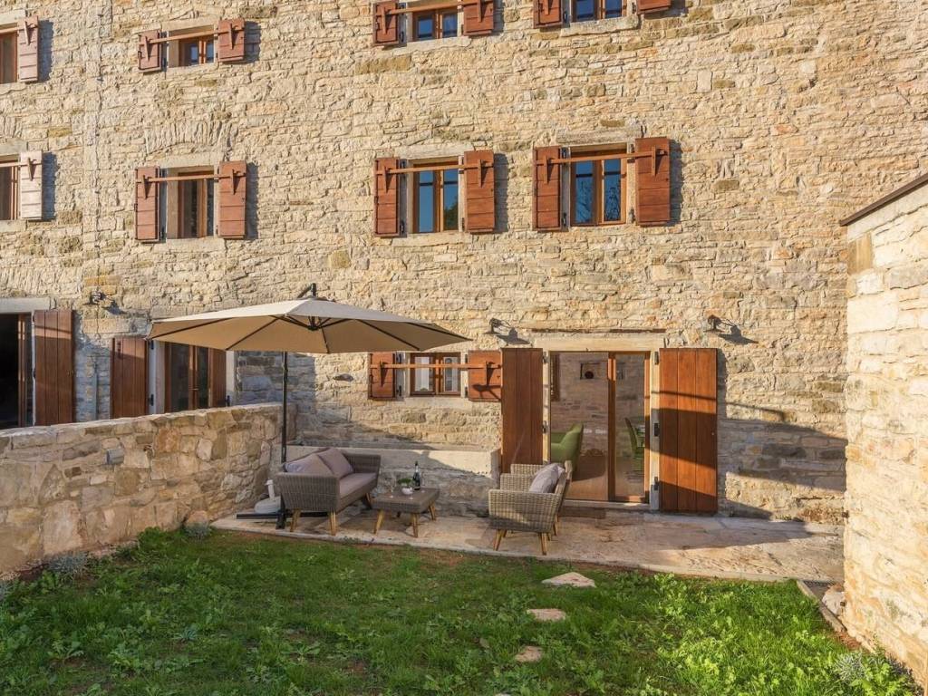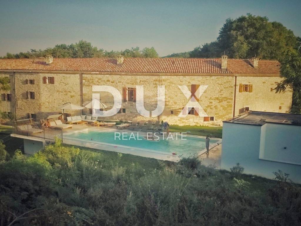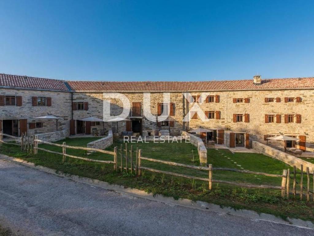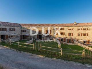 The medieval town of Grožnjan is a hill surrounded by terraces of olive groves and vineyards. Once an important Venetian fortress and regional center, Grožnjan is today a city of artists and one of the most desirable destinations for a creative vacation. As in other towns within Istria, the Mediterranean and continental climates intertwine here, so the living conditions are extremely favorable. Just 3 km from the beautiful Grožnjan is this spacious property with 5 residential units located on a 3360m2 plot. We must note that this is a rare property on the market, built back in 1846, and during a complete renovation in 2020, all the details of an authentic Istrian house were preserved, and this is precisely the charm of this property. The first residential unit of 60.24m2 consists of a kitchen, dining room, toilet and living room with access to a garden of about 30 m2. Internal stairs lead to the first floor where there are two bedrooms and a bathroom. The second residential unit of 40.05m2 consists of a kitchen, dining room, toilet, living room with access to a 50m2 garden. Internal stairs lead to the first floor where there is 1 bedroom with a bathroom. The third residential unit of 78.33m2 consists of a kitchen, dining room, toilet and a spacious living room with access to a 100m2 garden. Internal stairs lead to the first floor where there are 2 bedrooms with a bathroom, one room has access to a terrace and a garden. The fourth residential unit of 110.16m2 consists of a kitchen, dining room, toilet and living room with access to a 87m2 garden. Internal stairs lead to the first floor where there is 1 bedroom with a bathroom, on the second floor there are 2 more bedrooms with a bathroom. The fifth residential unit of 120m2 consists of a kitchen, dining room, spacious living room, toilet. On the first floor there is one bedroom and a bathroom, on the second floor there are 2 bedrooms and a bathroom. This residential unit has an 88m2 garden and a garden house that can be converted into a sauna. All units are luxuriously furnished in Istrian style with carefully selected interior details. Each unit has a fireplace for heating in winter. All units have a large swimming pool of 58m2 and a summer kitchen for use. The advantage of this property is that it is located on a spacious garden and in a quiet place where peace and relaxation are guaranteed. This property already has an established business in tourism, so it is a great advantage for future owners.