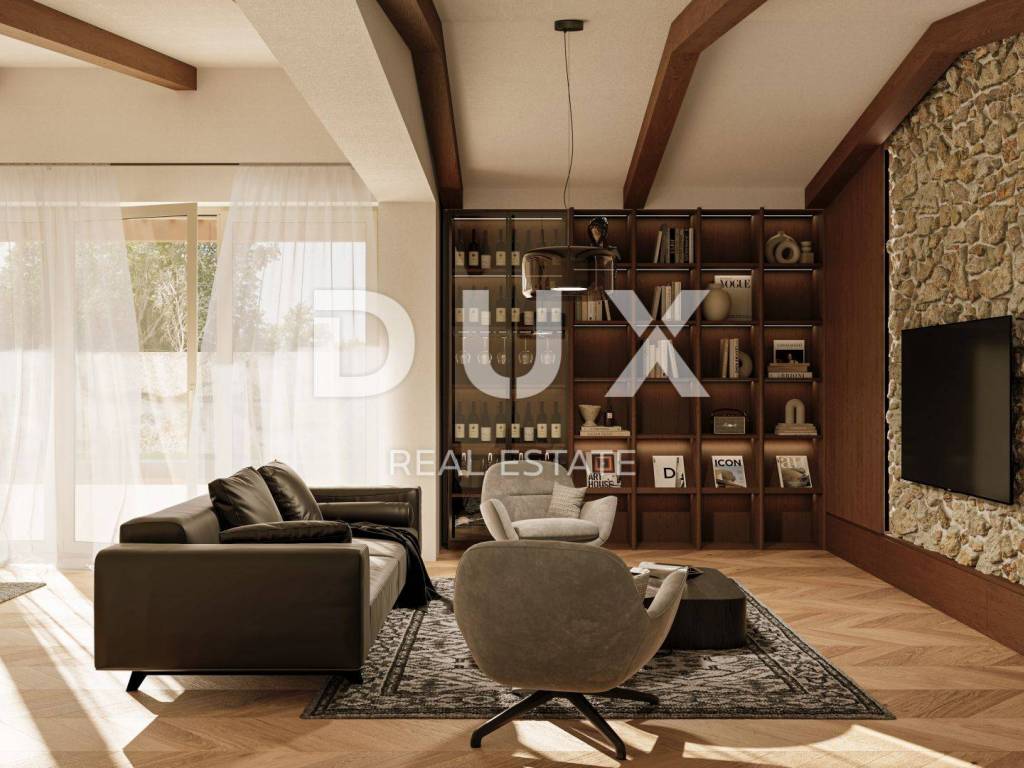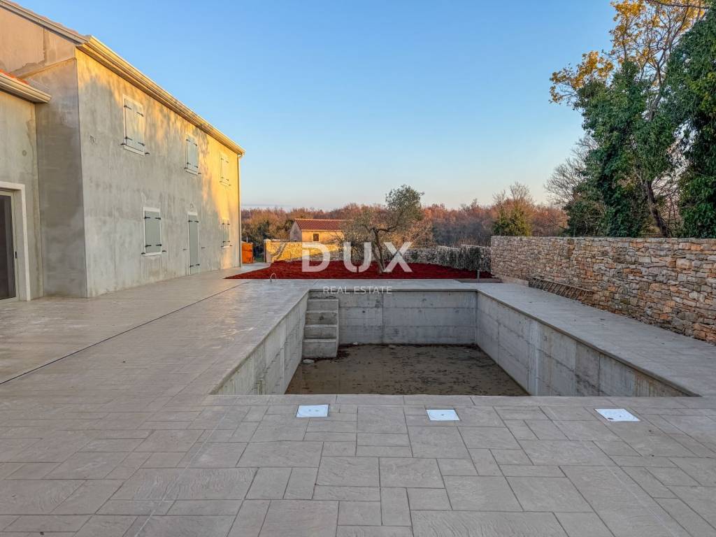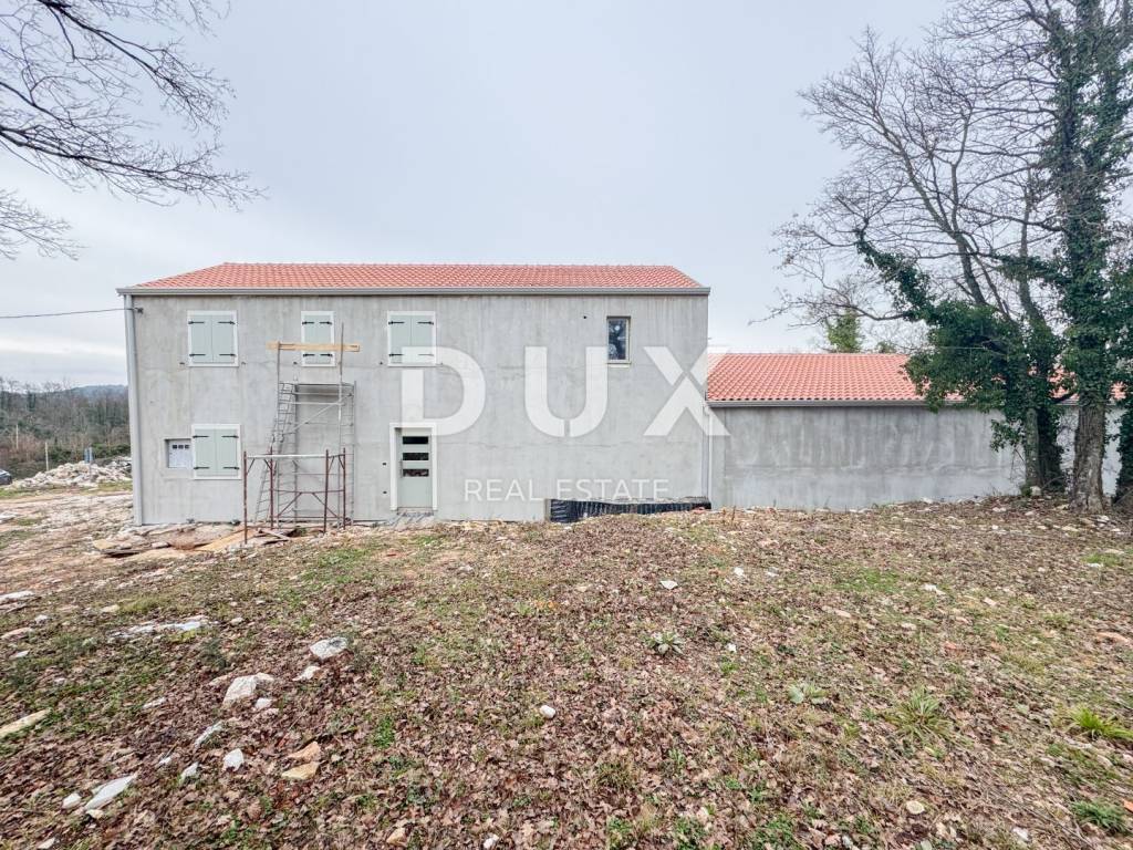 DUX presents a beautiful Istrian house located in an idyllic village not far from Grožnjan. This completely detached villa, surrounded by a spacious garden of almost 1000m, offers the perfect haven of peace and privacy, ideal for those looking for a luxurious and relaxed lifestyle. The interior of the villa extends over 272 m and exudes elegance and functionality. It consists of a hallway, utility room, a large area intended for the kitchen and four spacious bedrooms upstairs, each with its own bathroom. The extremely spacious living room with a central fireplace creates a pleasant atmosphere for relaxation, while large windows provide plenty of natural light and a beautiful view of the manicured garden and the surrounding forest. The exterior spaces of the villa consist of covered and uncovered terraces that provide the perfect setting for outdoor dining and enjoying the sun. The central part of the exterior is occupied by a private swimming pool, ideal for refreshment during the summer months, while the Finnish sauna and outdoor hot tub further raise the level of luxury and relaxation. The garden is enriched with Mediterranean plants and trees, creating a harmonious blend of nature and architecture. The courtyard will be decorated as in the visualizations and is included in the price. (except for the table, chairs, furniture). The villa is equipped with the most modern heating and cooling systems. Underfloor heating with a heat pump ensures a comfortable temperature throughout the year, while air conditioners are installed in each room. The facility is in a high stage of completion - a 10 cm thick facade has been installed, the interior has been plastered, all installations for electricity, water, heating and video surveillance have been installed. Landscaping is currently underway. The villa's location offers a unique combination of peace and proximity to all amenities. Located in the immediate vicinity of Grožnjan, the villa is just a 10-minute drive from the well-maintained pebble beaches of Kanegra and offers easy access to a wide range of activities - from exploring historic towns and local gastronomic delights to outdoor recreation and water sports. The price of the villa includes all finishing touches - ceramics, wall painting, interior doors, heat pump for heating sanitary water and underfloor heating, air conditioning in all rooms, equipped swimming pool, indoor sauna and outdoor hot tub. This exclusive property represents a rare opportunity to purchase a luxurious home in the heart of Istria, perfect for personal use or as an investment for tourism. Contact us and secure your corner of paradise in one of the most beautiful regions of Croatia! To arrange a visit to the property, call the agent with confidence - consultation in German possible.