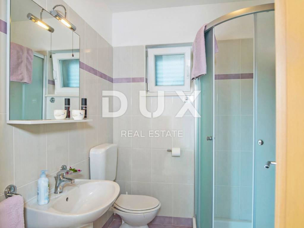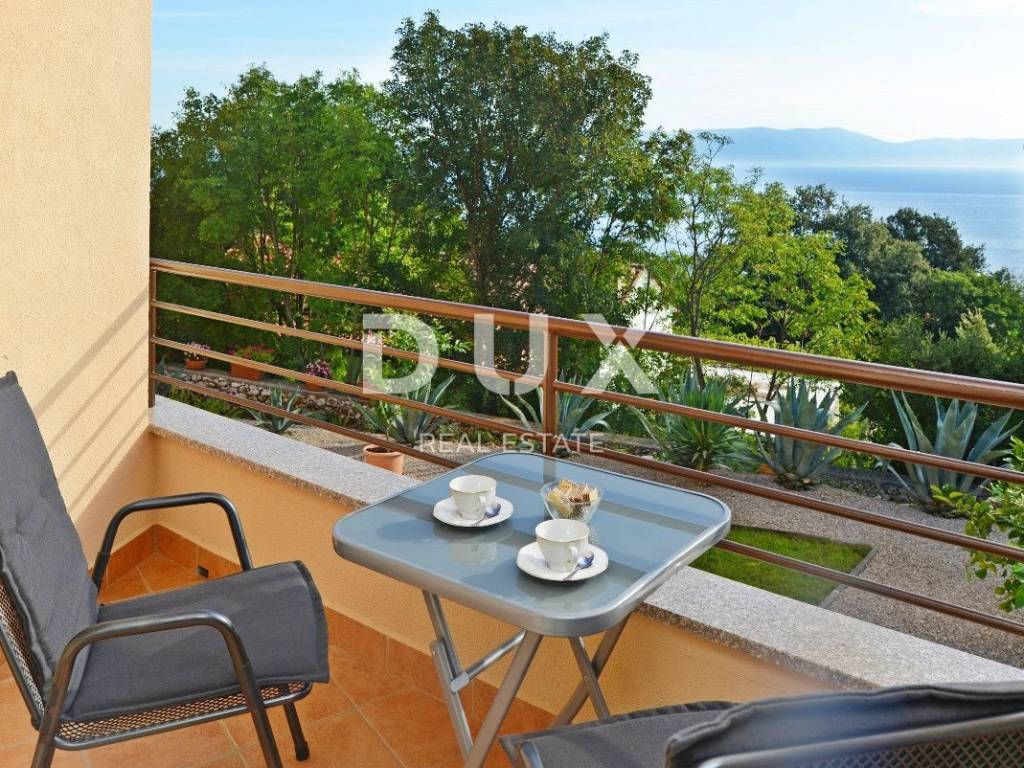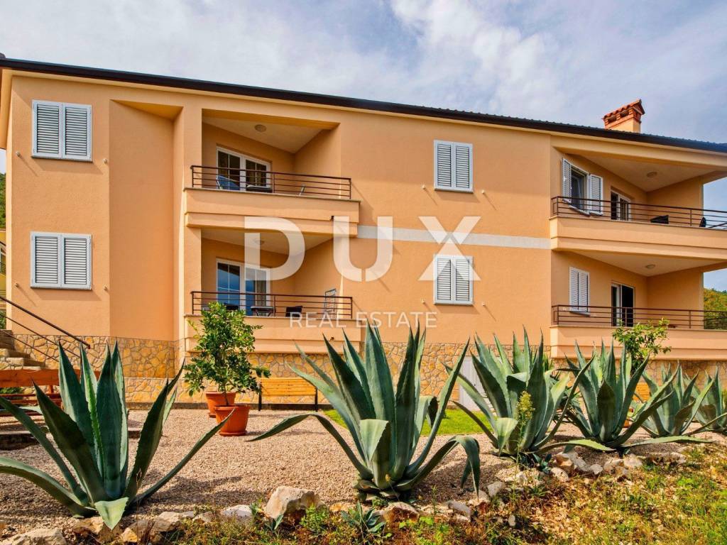 On the southeastern coast of Istria, where green hills meet the sea, where nature and heritage unite, just five kilometers apart are two towns of similar size, but with different, yet complementary characters - Labin and Rabac. Rabac, due to its white pebble beaches, rich Mediterranean vegetation and crystal clear and clear sea, has been called the pearl of Kvarner. Once a small fishing village, Rabac is today an attractive tourist destination that hides an abundance of cultural events in its network of picturesque streets. The green surroundings of Rabac and the picturesque hinterland invite you to adventure, exploration and recreation throughout the year. Not far from Rabac and Labin, in a small village by the sea, there is an apartment house for sale with a sea view. This property is one of those that can provide its future owner with comfort, starting from the surface area itself to the quality materials used in construction, decoration and furnishing, and the proximity of the beaches and the sea. The house is divided into a ground floor and an upper floor and consists of four residential units. The ground floor consists of two residential units, each with an area of 48 m. Each residential unit consists of a bedroom, bathroom and a living area that combines a living room, dining room and kitchen with access to a terrace with a sea view. The first floor consists of two residential units, each with an area of 54 m. Each residential unit consists of two bedrooms, a bathroom and a living area that combines a living room, dining room and kitchen with access to a terrace with an open view of the sea, Cres and the surrounding area. The yard is fenced and decorated in a Mediterranean style. The yard area also includes a separate cadastral plot of 402 m with an access road, which is entirely located in the construction zone. The property is fully furnished and equipped and is being sold as such. This property near the sea and the beach is an ideal opportunity for investment in an already established, successful tourist rental.