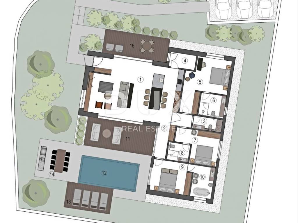 Zemljište ima građevinsku dozvolu za izgradnju građevine stambene namjene s bazenom koja svojom arhitekturom ne remeti okoliš već stvara sinergiju prirodnog okruženja i modernog dizajna.