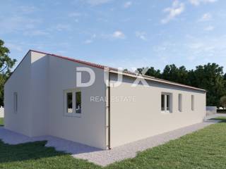 Today, Tinjan is an area that proudly preserves its history and traditions, whether it is about the symbols of this region, dry stone walls and puddles, kosiri and rankun, folklore and architectural heritage, traditions and legends, or about top gastronomic delicacies such as Istrian prosciutto. In the municipality of Tinjan, more than 70,000 overnight stays are realized annually. The municipality of Tinjan has invested its strength and resources in the development of rural tourism as an important branch of the economy that encourages positive demographic trends. With this aim, the development of selective forms of tourism was promoted. Not far from Tinjan, a ground floor house of 110m2 is for sale, located on the edge of the village. The house will consist of a living room, dining room, kitchen, three bedrooms and three bathrooms. The living room and dining room lead directly to the covered terrace and the garden, where there is a 30m2 swimming pool. The garden in front of the house will be planted and decorated with Mediterranean plants, and the central place in the garden is occupied by a swimming pool with a sunbathing area that allows full enjoyment on hot summer days. Heating of the house will be made possible through air conditioning. Given that the house is under construction, upgrades or changes inside the house are also possible. Ideal property for investment for the purpose of tourist rental or family home.
