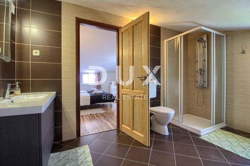 Beautiful luxury villa in a quiet location overlooking the sea is located only 300m from the sea. The garden spreads over 505m2, and the house itself over 360m2. The large spacious house can accommodate up to 14 people. The beautifully decorated interior offers 6 bedrooms with 6 separate private bathrooms with shower. The house has 7 air conditioners so the whole villa is air conditioned. The fully equipped kitchen with utensils offers you a lot of cooking comfort for the whole family. In the dining room there is a large table for 14 people and on the terrace with barbecue. From the living room, dining room and kitchen you have access to a beautiful garden that gives you a pleasant and private atmosphere with a pool of 32m2. The pool is heated by the Solgar system. The villa also offers a jacuzzi and table tennis. The villa is fully furnished and as such is for sale. It has been in the function of tourist rental for many years, so the new owner gets a well-established business. The bars are within walking distance so the place with lots of nature is perfect for a relaxing holiday with family and friends.