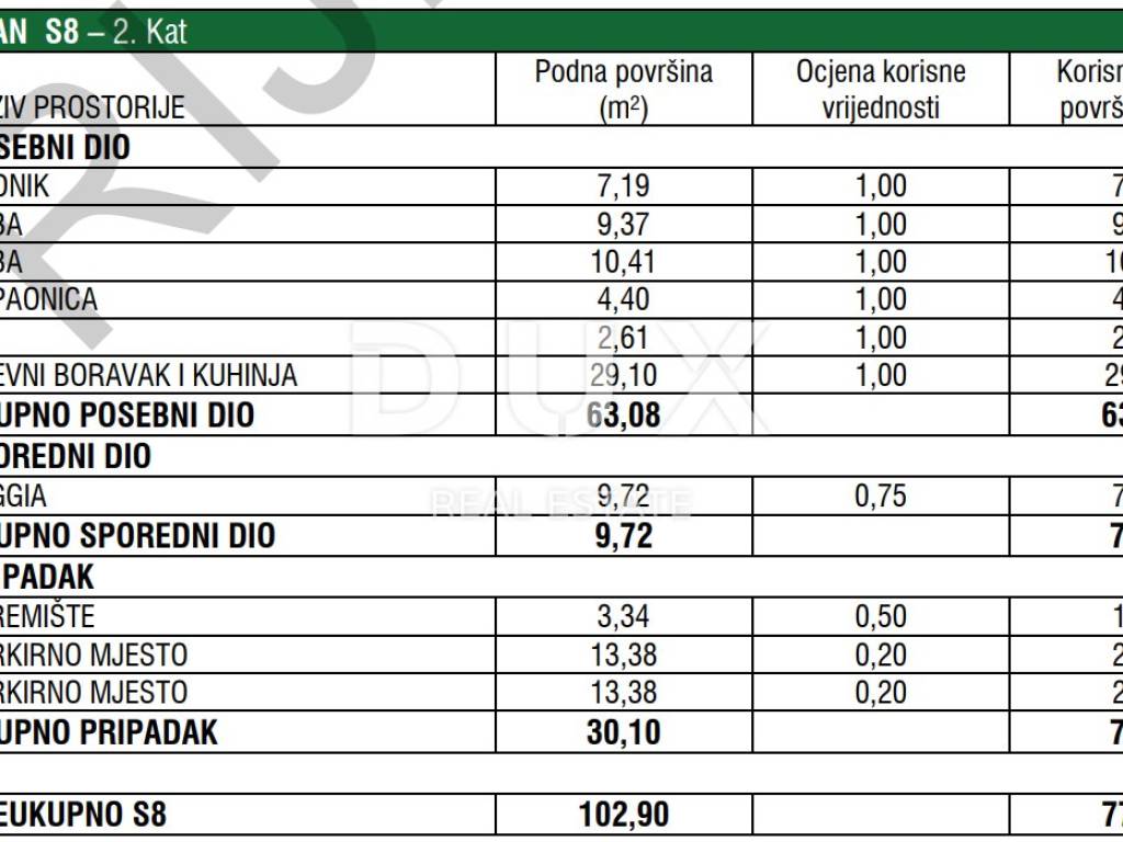 A beautiful apartment in a new building is for sale, located in a quiet village of Zaton, ideal for family life or relaxation in a modern and comfortable space. The apartment is located on the second floor of a building with a special architectural design, which has a total of ten apartments. Each apartment has its own chimney, which enables an individual solution for heating or installing a fireplace, making the space extra warm and cozy. The area of the apartment is 77.40 m2 net, and consists of a spacious living room, a modern kitchen, two comfortable bedrooms, a bathroom and an additional toilet. The living room leads to a beautiful loggia, perfect for relaxing with morning coffee or evening socializing. The apartment is equipped with underfloor heating and a heat pump, ensuring low costs and high energy efficiency throughout the year. Also, there is an air conditioner that will provide you with a comfortable temperature in the summer months. The apartment comes with a storage room and even two parking spaces, which makes this property even more practical for everyday life. This apartment provides everything you need for a quality and comfortable life. Do not miss the opportunity to become the owner of this exceptional space - contact us to arrange a viewing and additional information.
