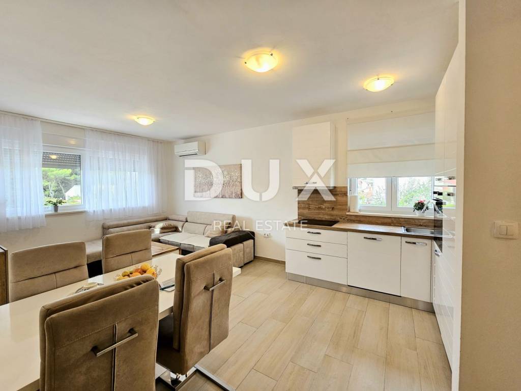 ISTRIA, PULA, NOVA VERUDA- 2SS+DB modern apartment with a private garden and its own parking space located in the most sought-after location in the city. In one of the most sought-after locations in the city of Pula, Nova Veruda, this comfortable apartment is located on the high ground floor of a new building, which offers its future owners everything they need for a safe and peaceful stay. The apartment is ideal for a young family or as an apartment perfect for a tourist rental with a safe return on investment. DESCRIPTION OF THE APARTMENT: Within its 59m2 of living space, the apartment offers maximum comfort and simplicity of stay, with perfect organization of the rooms. Thus, at the very entrance there is a vestibule with a space for a wardrobe, which then leads us into the living area of the apartment, designed according to the "open space" system. Here you have the opportunity to spend your time in a comfortable living room, which is flooded with daylight. In addition to the living room, there is a dining room and a modern kitchen, perfect for preparing your favorite delicacies. Two bedrooms are separated from the living room by the hallway, one of which is the master bedroom, while the other bedroom is perfect as a guest or children's bedroom. Next to the bedrooms is a bathroom with a shower. The apartment also has a private yard measuring 4.20mX4m, perfect for hanging out with friends and family. In the yard there is seating and a small barbecue. In addition to the yard, the apartment also has its own private parking space. ADDITIONAL INFORMATION: * The apartment is sold fully furnished. * The owner is a natural person. * The apartment has air conditioning and a chimney with the possibility of heating with a pellet or wood stove. * Building documentation is in the process of being issued. For any additional information, questions or wish to organize an appointment to view the apartment, feel free to contact us at any time! Dear clients, the agency commission is charged in accordance with the General Business Conditions: www.dux-nekretnine.hr/opci-uvjeti-poslovanja