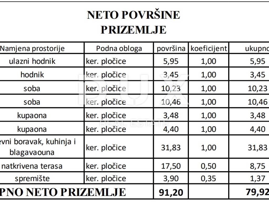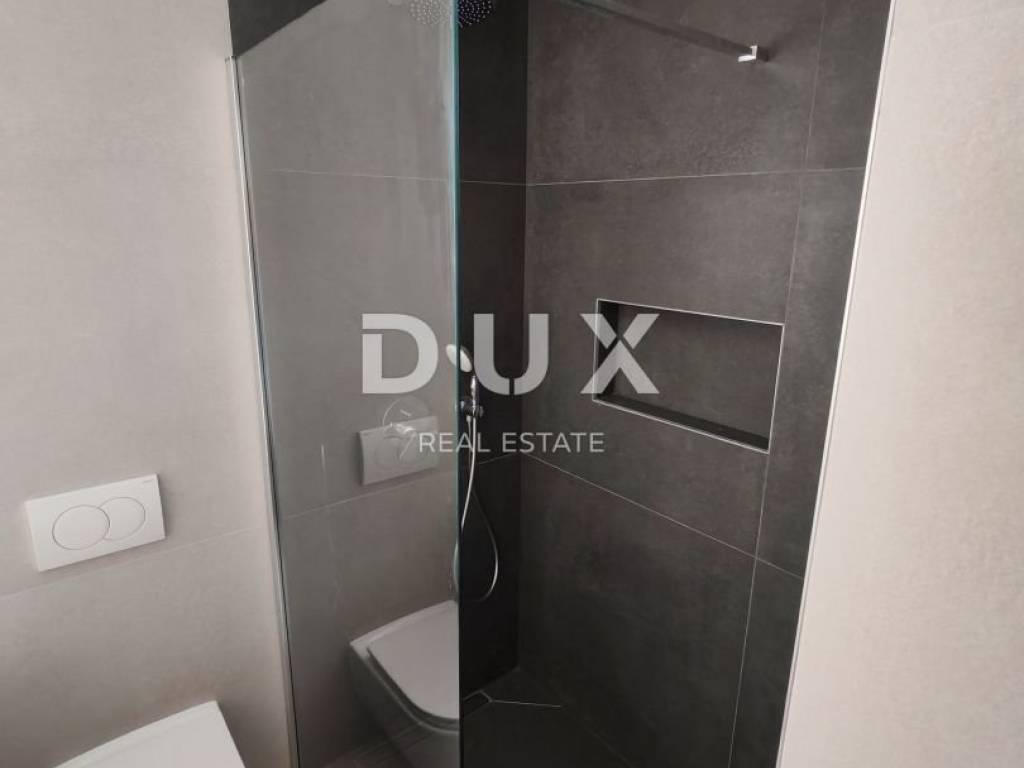 A luxurious apartment on the ground floor is for sale in one of the most sought-after locations on Vir, just 160 meters from the beautiful Jadro beach. In a quiet cul-de-sac, located in the very heart of Vir, this new building offers an extraordinary opportunity for those looking for the perfect combination of comfort and luxury. The 79.92 m2 apartment has been carefully designed to provide maximum comfort and functionality. It consists of a spacious hallway, two elegant bedrooms, one of which has a private bathroom, additional bathrooms, a modern kitchen connected to the dining room and living room, and a spacious terrace ideal for relaxation. Special attention is paid to the quality of construction and finishing details. There are premium anthracite plastic carpentry with three-layer glass, electric blinds, mosquito nets, as well as premium aluminum entrance doors to the building. The facade is insulated with 10 cm Styrofoam, while the terraces are covered with elegant travertine stone. A black fence made of double-layer tempered glass, handmade interior joinery, high-quality ceramics with dimensions of 90 90 cm throughout the apartment, and luxurious bathroom elements of the brands Geberit, Grohe and Aquaestil, ensure a high standard of living. Additional comfort includes electric floor heating in the bathrooms, air conditioners in the bedrooms and living room, anti-burglary and fire-resistant entrance doors to the apartments, as well as a video intercom. Knauf ceilings with built-in LED lighting, both working and ambient, further emphasize the sophistication of the space, while LED strips on the terraces create a pleasant atmosphere for evening get-togethers. The apartment also has a practical storage room under the stairs, equipped for a washing machine, and one parking space. This unique opportunity is exempt from real estate tax, and the completion of the construction of buildings A and B is planned for the beginning of 2025, while the completion of building C is expected in the fall of the same year. Don't miss the opportunity! Contact us and arrange a viewing of this extraordinary apartment that can become your new home or an ideal vacation spot.