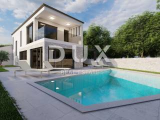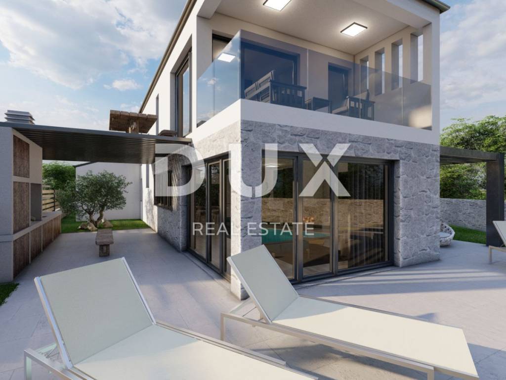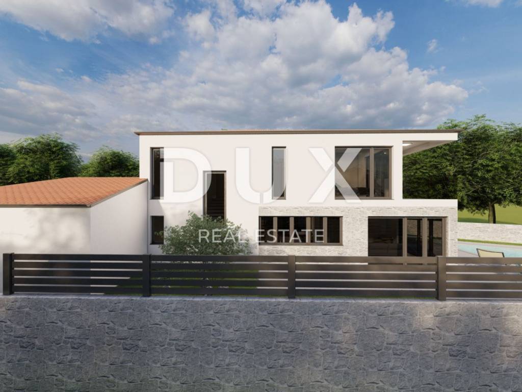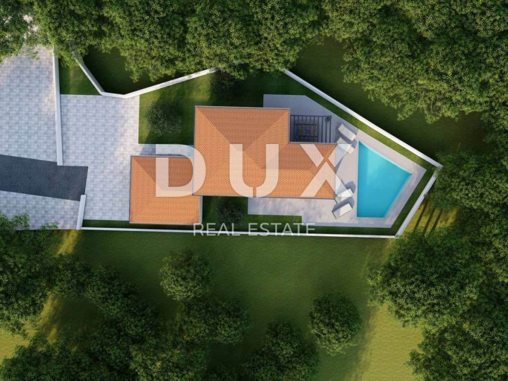 For sale, a detached villa with a swimming pool, located in an exclusive and quiet location in Malinska, only 700 meters from the sea and the center. This luxury property is spread over 165.73 m, with a carefully designed layout spread over two floors. On the ground floor there is a spacious entrance hall, a modern bedroom with a private bathroom, and a guest toilet. The central part of the ground floor is occupied by a sophisticated open-space kitchen, connected to the dining room and living room, from which there is access to a covered terrace. An ideal place to enjoy the Mediterranean atmosphere, with a view of the swimming pool and sunbathing area. An internal staircase leads to the first floor, where there are three luxurious bedrooms and two bathrooms. The master bedroom has its own luxury bathroom and walk-in closet. All rooms have access to a covered balcony with an enchanting view of the sea. The superb villa comes with a garage for two cars, and the garden provides privacy and a luxurious space for relaxing by the pool. The house is equipped with top-quality materials - from ALU and PVC carpentry, underfloor heating, to high-quality air conditioners and security doors, which ensures maximum comfort and safety. It is for sale completely finished, ready to move into in June 2025. An exceptional opportunity to purchase a luxury property that offers the perfect combination of modern design and proximity to the sea.
