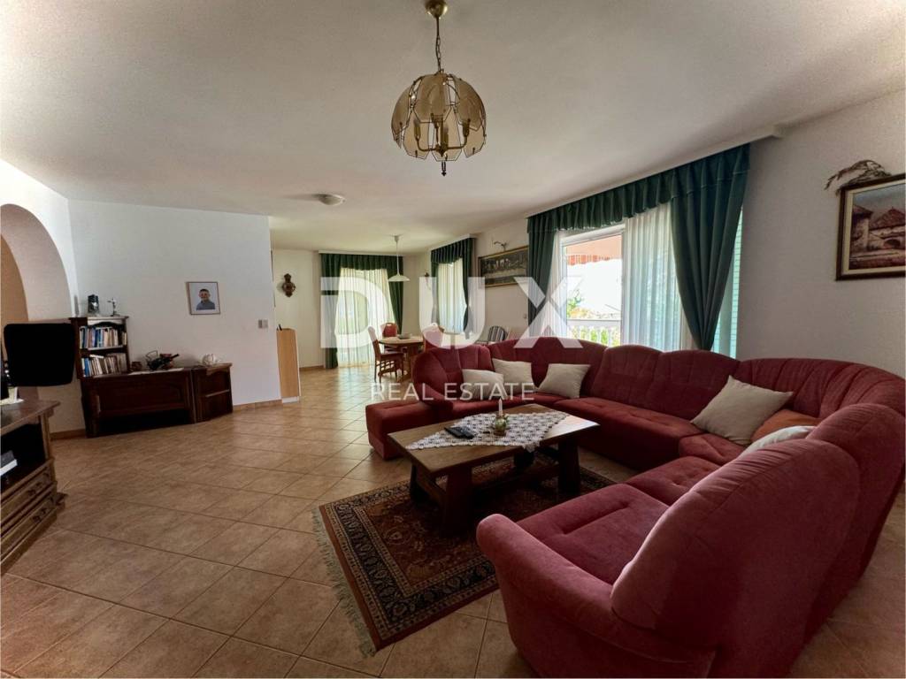 This spacious house in Malinska on the island of Krk is spread over a total of four floors, offering three separate apartments. In the basement of the house there is a corridor, a boiler room, a storage room, a garage and an additional space that can be converted into another apartment. The first apartment, with an area of 130 m, consists of a hallway, kitchen, spacious living room, two bedrooms, two bathrooms, a closed loggia and a covered terrace. The second apartment, with an area of 116 m, includes a hallway, kitchen, living room, three bedrooms, two bathrooms, covered and uncovered terrace, providing plenty of space for family and guests. The attic of the house offers an additional apartment of 64 m, which consists of an entrance hall, storage room, hallway, living room with kitchen and dining room, two bedrooms and two bathrooms. The apartment has an uncovered terrace with a beautiful view of the sea, ideal for enjoying the sunsets. This house is a perfect combination of comfort and luxury in one of the most attractive parts of Krk.