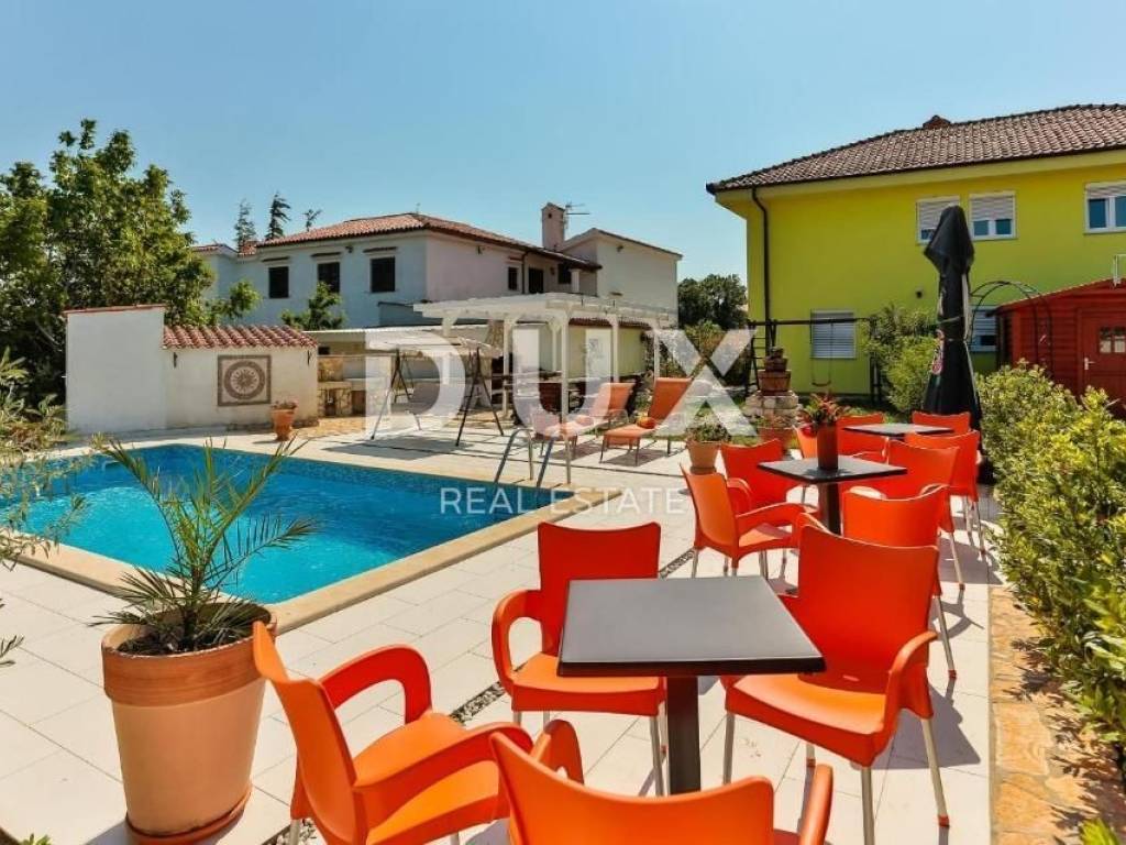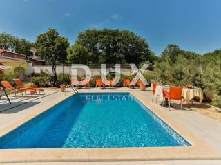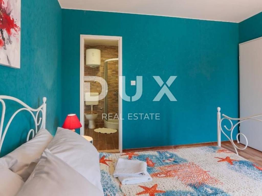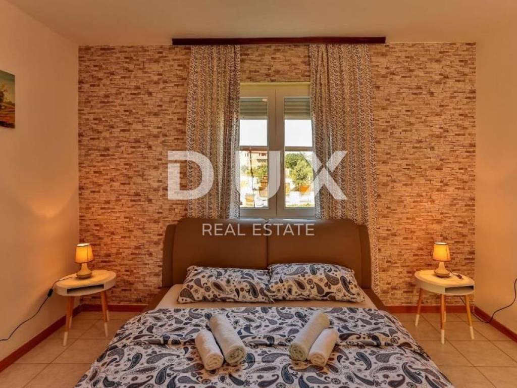 DESCRIPTION OF THE HOUSE: It is a house located on a plot of land with a total area of 910 m2, which consists of a total of 325 m2 of living space, spread over two floors, ground floor and first floor, and 4 apartments. There are 3 apartments on the ground floor, one of which consists of one bedroom, and the other two apartments are studio apartments. Each apartment has its own terrace with access to the courtyard of the house, which offers enough privacy and comfort. Likewise, each apartment has an equipped kitchen, dining room, living room and bathroom. On the first floor, which is accessed by a staircase, there is the largest apartment, with a total living area of 150m2 of living space. At the entrance to the apartment, there is a lobby with a wardrobe space, which then leads us into the spacious living area of the apartment, designed according to the "open space" system, without partition walls. Here you have the opportunity to spend your time in a spacious living room of 50 m2, which has access to a covered terrace, then next to the living room there is a dining room and an equipped kitchen. This same apartment consists of 4 comfortable bedrooms, 3 bathrooms and an additional balcony. Next to the house there is a garage sufficient for parking one car, as well as an additional smaller studio apartment for staff, which can also serve as additional storage space or as a tavern for entertaining friends and family. PROPERTY DESCRIPTION: There is enough parking space for several cars on the spacious fenced plot, which is accessed by a gate from the paved road. The front part of the garden is decorated with a landscaped garden, while the back part of the garden is an ideal place for rest, relaxation and entertainment, given that it is hidden from view and offers maximum privacy. The central part of the rear part of the garden is occupied by a spacious swimming pool with a sunbathing area, next to which there is a covered terrace with a dining table and barbecue. The yard of the house is decorated with numerous Mediterranean plants, which make the stay in the open air more special with the various colors and pleasant scents of the plants. An auxiliary building of 12 m2 that can serve as an additional storage room, as well as outdoor toilets and an outdoor shower, was also placed on the garden plot.