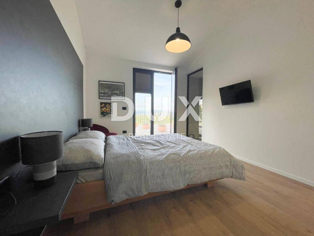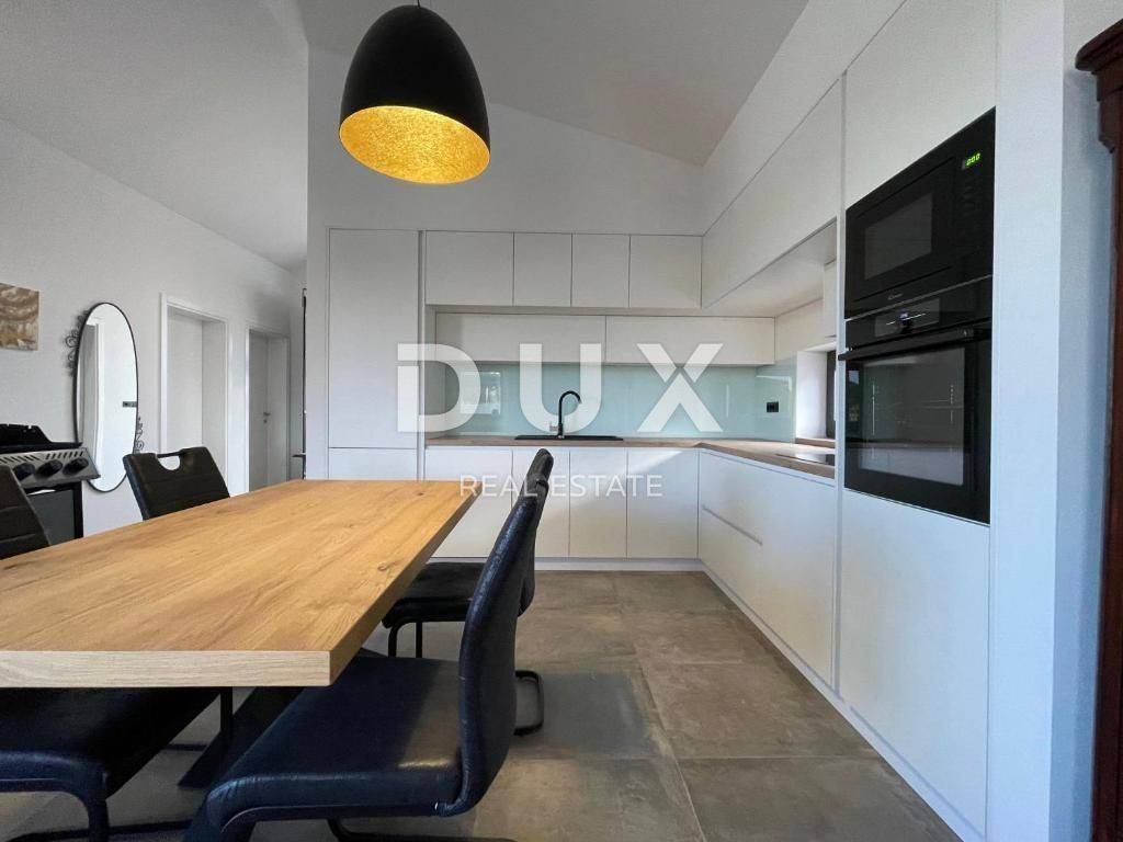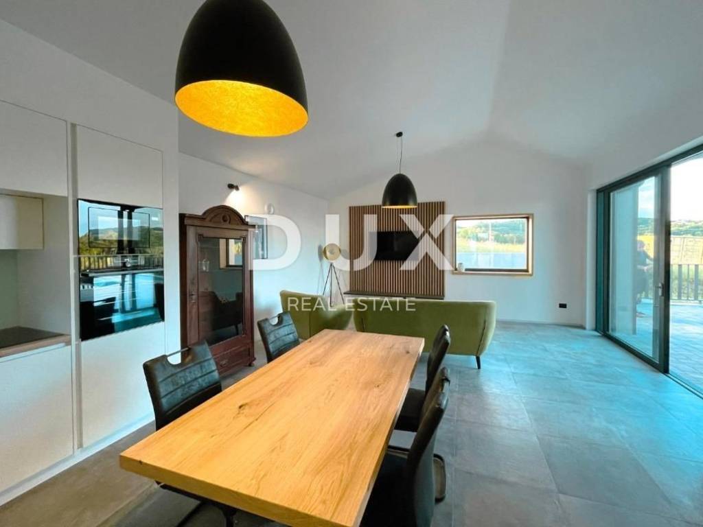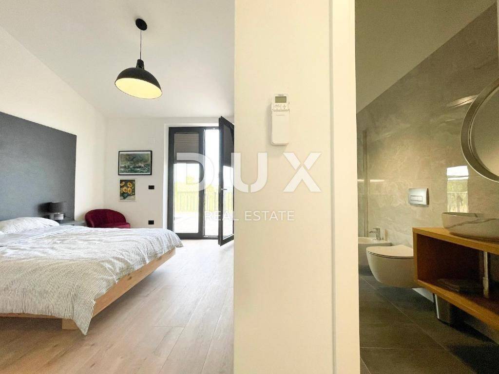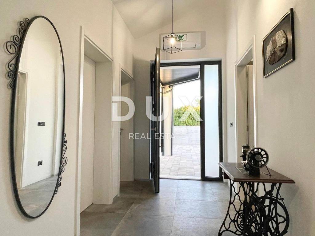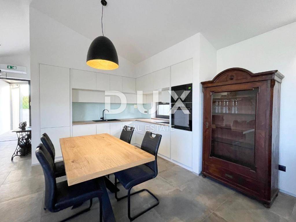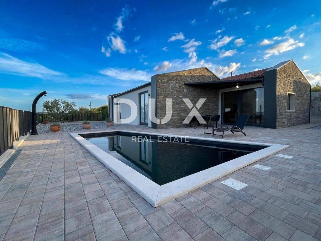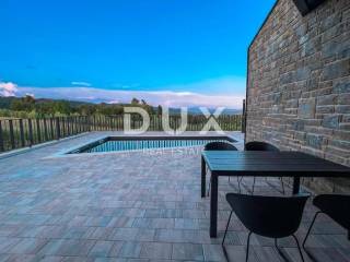 The medieval town of Grožnjan is a hill surrounded by terraces of olive groves and vineyards. Once an important Venetian fortress and regional center, Grožnjan is today a city of artists and one of the most desirable destinations for a creative vacation. As in other towns within Istria, the Mediterranean and continental climates are intertwined here, so the living conditions are extremely favorable. It consists of 11 settlements. A modern villa of 145m2 with a panoramic view of Motovun and the Mirna river valley is for sale. The villa consists of a living room with a kitchen and a dining room, two bedrooms each with their own bathroom and a laundry room with a guest toilet. From the living room there is access to the terrace and landscaped garden where there is a swimming pool and a sunbathing area with a beautiful view. The villa is of high quality construction with top quality floors and carpentry. It was built in a modern style with additions of Istrian dark stone from the interior of Istria and high ceilings. The heating is on the floor, and each room has an air conditioner. An ideal property for all lovers of stone houses who are looking for originality with a touch of modernity. Considering the location, the house is a real opportunity for vacation, year-round residence or for use for tourist purposes. Dear clients, the agency commission is charged in accordance with the General Business Conditions: www.dux-nekretnine.hr/opci-uvjeti-poslovanja
