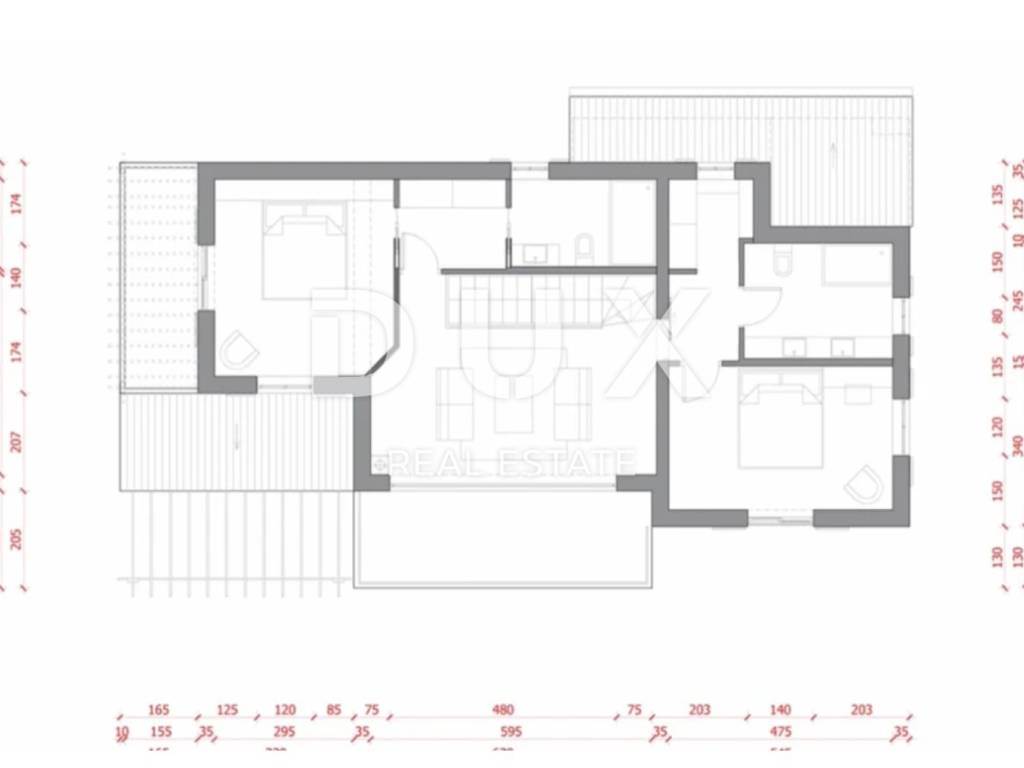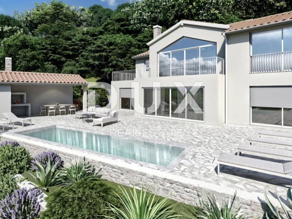 DESCRIPTION: Living area: ca. 230 square meters (2,475 square meters) Plot size: 933 m / 10,040 m 3 bedrooms, 3.5 bathrooms Open kitchen / dining room Living room with fireplace and panoramic windows Family room with large balcony BBQ with covered dining area Heated pool Carport for 3 cars Ready to move in: summer 2024 The villa is accessed via a private driveway. Below the villa, which is located on a slope, there is a wood that provides plenty of peace and privacy. The spacious garden and flexible room layout offer enough space for the whole family, home office, guests and hobbies. The villa is also suitable as a holiday rental investment property. The living room on the ground floor has a view of the pool and the sea. Between the living room and the spacious open kitchen with dining area, there is an open fireplace that is visible on both sides. Also on the ground floor there is a guest bathroom that serves as a laundry room, as well as a room that can be arranged as a sauna or wine cellar (no windows). From the bedroom as well as the bathroom on the ground floor you have a beautiful view of the sea. On the first floor there is a garage with a freight elevator to the kitchen and the main entrance that opens into a large family room with panoramic views and a gable roof. It is designed as a multi-purpose family space and can be used as a home office, gym, games room etc. Or simply to enjoy the magnificent bird's eye view. If you want to climb even higher, you can reach the roof terrace via the external staircase next to the garage. From here you can admire spectacular sunrises or count shooting stars. But let's go back home. Upstairs there are two more bedrooms, each with a bathroom. One of them has a full view of the sea and a balcony. The second room has a separate entrance and a terrace that overlooks the garden. The kitchenette can be used from this apartment as well as from the family room. In front of the house there is a heated swimming pool, a spacious terrace, a large garden, as well as a barbecue area with a covered seating area. The villa is expected to be ready for occupancy in the spring of 2024. There is still the option of choosing floor coverings and wall colors. The villa is located on the Opatija Riviera between the picturesque fishing towns of Ika and Lovran. The villa is 800 meters from the sea. Ika and Lovran are approximately 1.6 km (1 mile) by car or 1.1 km (0.68 miles) by footpath from the garden gate. Distance from ACI Marina Ičići is 3.2 km (2 miles). LOVRAN: Lovran is a city with a long and rich past with a hundred-year tradition in tourism. It was named after the laurel (laurus nobilis) which grows abundantly in the evergreen groves in the town and its surroundings. Lovran is located on the eastern coast of Istria in the Kvarner Gulf. It is located at the foot of the greenest and most vegetated mountain on the Adriatic - Učka. It is 19 km from our largest port Rijeka, 14 km from the railway station in Matulji, and 80 km from the airport in Pula. It is surrounded by high mountains to the north and west (Učka 1396 m, Snježnik 1605 m, Risnjak 1528 m), and on the sea side by islands (Krk, Cres), and its position is exceptionally protected from the winds. In the winter months, the most common wind is the bora, which blows from the north and brings clear and cold weather. Jugo brings rain and high humidity, and in the summer months the mistral brings freshness from the open sea, mitigating the heat and humidity. Lovran has preserved its historical core of the medieval urban concept. The old town was surrounded by a defensive wall and bastions on the foundations and walls of which houses were built over time. The courtyards of the Old Town are the charm and specialty of Mediterranean urban architecture. Behind the stone portal, the facades of the neighboring houses can be seen, decorated with staircases, porches and skodes, and in the middle of the courtyard rises the stone mouth of the cistern. In the 21st century, Lovran has a rich historical heritage, a centuries-old tourist tradition, preserved nature, built infrastructure, all of which enable tourism to take off again with sustainable development and compliance with all ecological standards. The good climate, lush Mediterranean vegetation and favorable geographical position enabled the strong development of tourism at the turn of the 19th and 20th centuries. Since that time, Lovran has been, along with Opatija, the most important place on the famous Riviera. Several villas built at that time are included in the world architectural heritage. The climate is Mediterranean with continental elements. The average winter air temperature is 7C, summer 22C, while the annual average is 13.3C. Sea temperatures range from a minimum of 9C in the winter months to a maximum of 26C in August. Lovran has 2,230 sunny days per year and an average amount of precipitation of 1,500 liters per m2. These specific microclimatic conditions allowed all Mediterranean vegetation and plants to thrive. Laurel, palm, magnolia, various types of evergreen shrubs, honey oak, pines and cypresses grow in abundance along the coast. Above Lovran, cherries, vines and olives thrive in the terraced gardens, and on the deep, washed and acidified soils, forests of tame chestnuts (the famous chestnuts from Lovran) grow abundantly. The abundance of vegetation and the high concentration of salt in the sea (37.8 ) result in rich plant and marine aerosol in the air. All these elements make Lovran's climate very stimulating and favorable for health. Dear clients, the agency commission is charged in accordance with the General Terms and Conditions www.dux-nekretnine.hr/opci-uvjeti-poslovanja Dear potential buyers, tenants and lessees, viewing the property you are interested in and in which you have an interest is possible only and exclusively with signature of the Real Estate Brokerage Agreement, for the purpose of protecting the property owner from visit