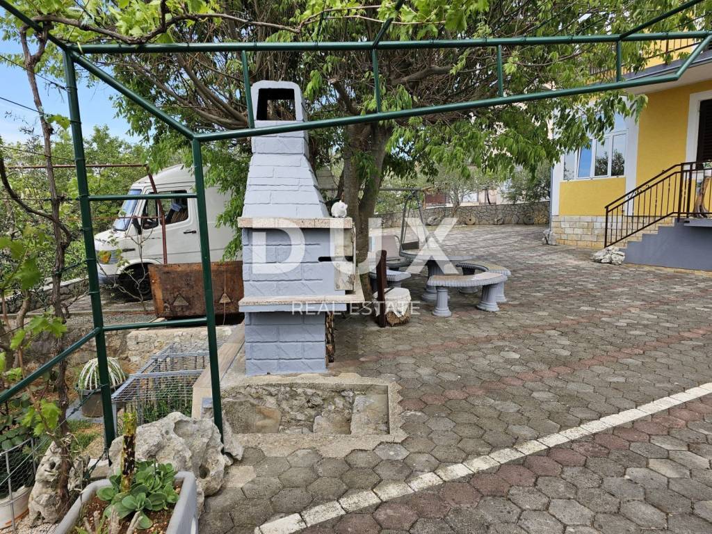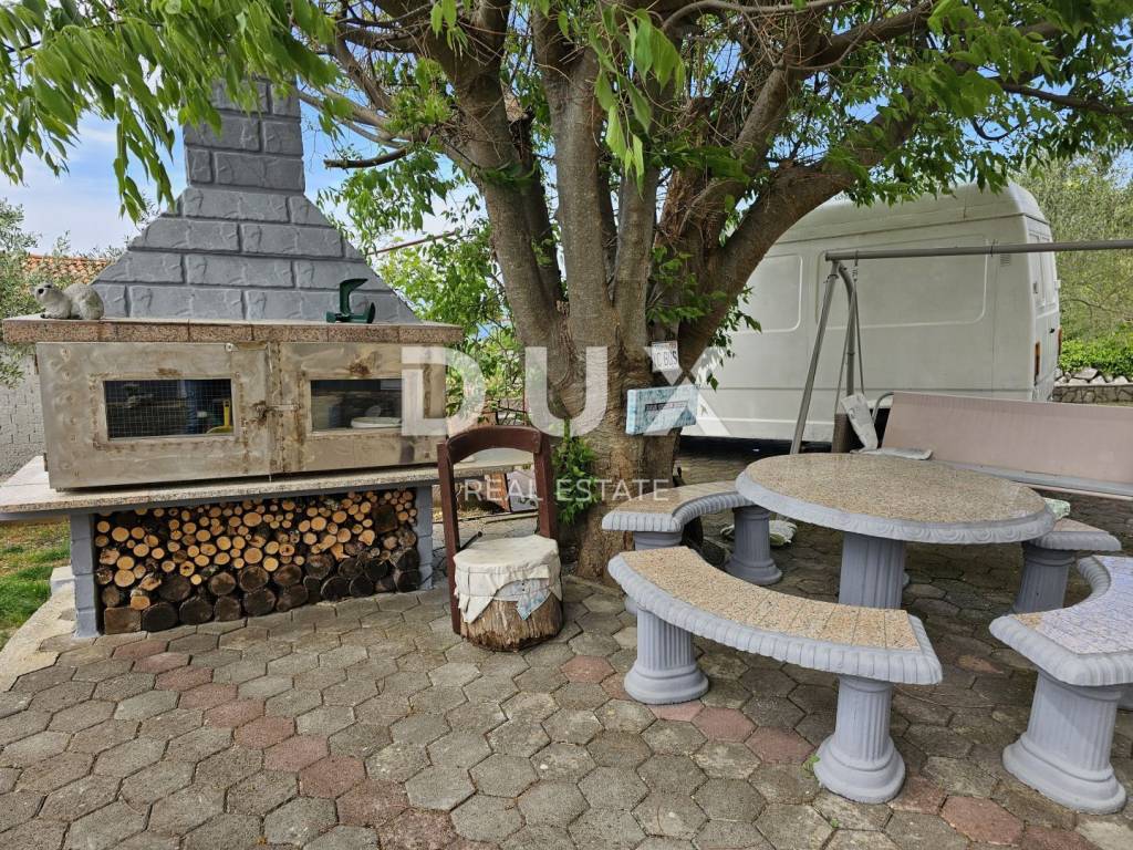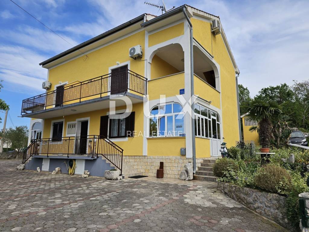 Great opportunity on the island of Krk! A house for sale on 650 m2 of land, with 4 apartments, an outbuilding, spacious parking and on the edge of a green zone. The house has a total of 275 m2 of living space, and extends over three floors: - ground floor - two-room apartment that includes an entrance hall, bathroom, living room with kitchen, dining room and terrace. - the first floor consists of two apartments with an identical floor plan, and the apartments are one-bedroom with a bathroom, kitchen, living room and dining room, and a terrace. - attic - three-room apartment with bathroom, guest toilet, kitchen with dining room and living room and access to the terrace with a beautiful view of the sea. In the garden there is an auxiliary building, which serves as a tool room and storage, parking for several cars, a brick fireplace, a stone table with benches and Mediterranean plants, olives, palm trees. The roof does not need to be changed, the joinery is a combination of wood and ALU. Each apartment has a separate air conditioner, while the ground floor has an additional pellet stove. The house is sold fully furnished. A septic tank is used, in the fall it should be connected to the city sewer system. The documentation is neat and available for inspection. Good location, 1500 meters from the sea and beaches, yet in a quiet place, next to nature. *** Dear clients, the agency commission is charged in accordance with the General Business Conditions: www.dux-nekretnine.hr/opci-uvjeti-poslovanja