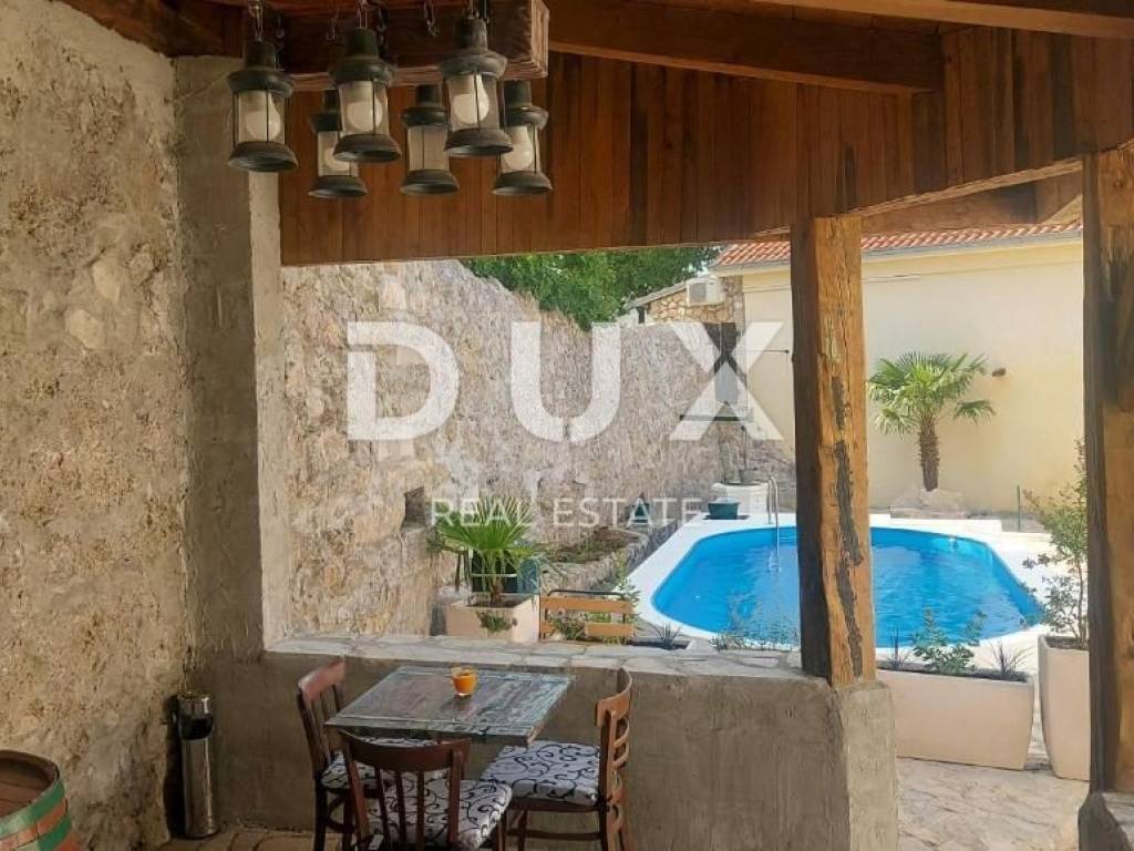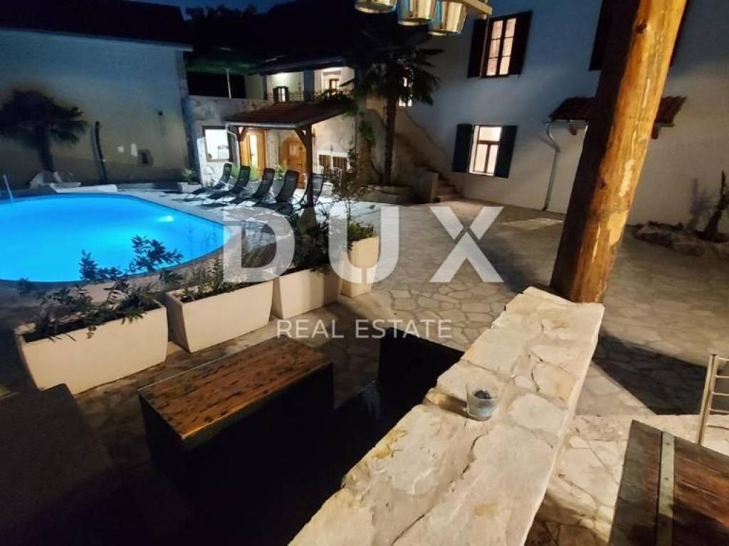 We are selling two stone houses from 1880, located in a nice little place Tribalj in the Vinodol municipality. The distance to Crikvenica is 6 m, which with good traffic connections is not even 10 minutes by car to the whole range of beaches on the Crikvenica coast. The two houses are located in a beautifully landscaped garden with a swimming pool. There are parking spaces next to the house, where six vehicles can be parked. The houses were completely renovated in 2021 with high-quality materials and fully equipped, keeping the old original charm of the stone houses. They are surrounded by a wall and an entrance, where you enter a beautiful paved courtyard with a swimming pool, a fireplace and two covered terraces through the massive front door. In the second house on the ground floor there is a tavern where the living room and kitchen are located. The ground floor of the first house consists of a bedroom, a living room, two bathrooms, a large tavern that has been converted into a kitchen with a dining room. In a room with a separate external entrance, there is a fitness room and a separate toilet. On the upper floor, there are four bedrooms and a terrace of 40 m2. They are connected by an internal staircase. The property, which exudes antique charm, is ideal for tourist rental. For all other information, contact the agent. Dear clients, the agency commission is charged in accordance with the General Terms and Conditions. https://www.dux-nekretnine.hr/opci-uvjeti-poslovanja
