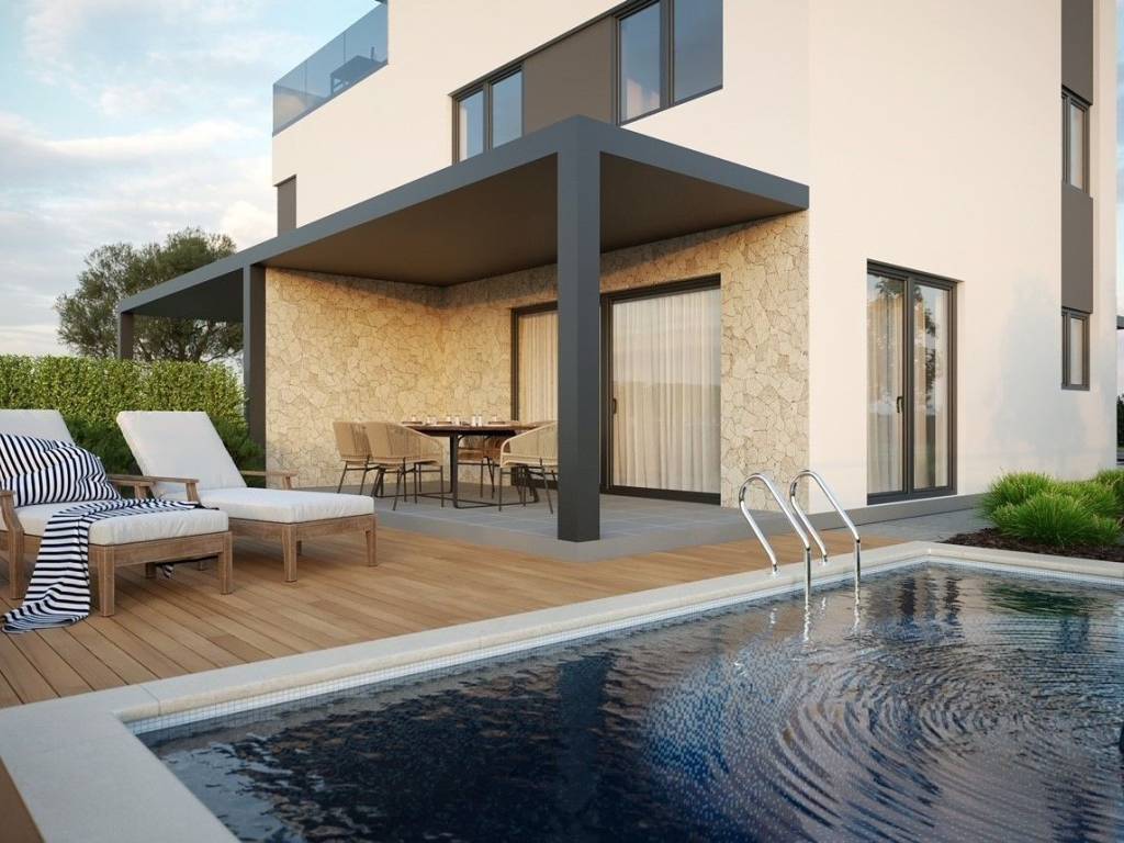 The island of Pag is located between the Velebit Channel and Kvarnerići, between the islands of Rab, Olib and Vir, in the immediate vicinity of the mainland. With an area of 286.6 km2, it is one of the largest Adriatic islands, and with 270 km of indented coastline, it is the island with the longest coastline in the Adriatic, full of bays, coves, capes and beaches. The largest bay, Paška Bay, is surrounded by 20 km of pebble beaches. Mandre is a tourist town with almost 400 permanent residents located on the southern side of the island of Pag with a beautiful view of Silba and Olib and the islets of Maun and Škrda. A beach with clear sea stretches along the town of Mandre. The place is perfect for those who want a peaceful vacation in a beautiful natural environment of holm oaks, dry stone walls and crystal clear sea. In a unique peaceful and quiet location, yet not far from the center of the village, 150m from the sea, a modern penthouse with a sea view. It is located on the second floor of a modernly designed new building, with only three apartments. The apartment is comfortable. It consists of a kitchen with a dining room, a living room with an exit to the terrace, one bathroom, an entrance hall, two bedrooms. The terrace has a hydromassage pool. The total square footage of the apartment is 104.13 m2. A very modern property with a sea view. First-class materials are used for the construction itself, and the property will be equipped at a high level, low-e iso glass + argon, two-tone PVC joinery (anthracite-white), electric blinds, first-class tiles, all rooms heated/cooled by separate air conditioners, walk-in showers in the bathrooms. The terrace is uncovered. Possibility of additional payment for a modern awning/pergola - aluminum construction, PVC 3D canvas, included electric motor and LED lighting with remote control. Two parking spaces. Planned completion of works and moving in 06/2024 For all other inquiries call +385 91 522 65 29 Dear clients, the agency commission is charged in accordance with the General Terms and Conditions. https://www.dux-nekretnine.hr/opci-uvjeti-poslovanja