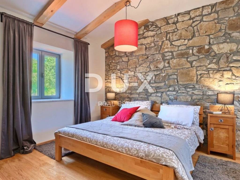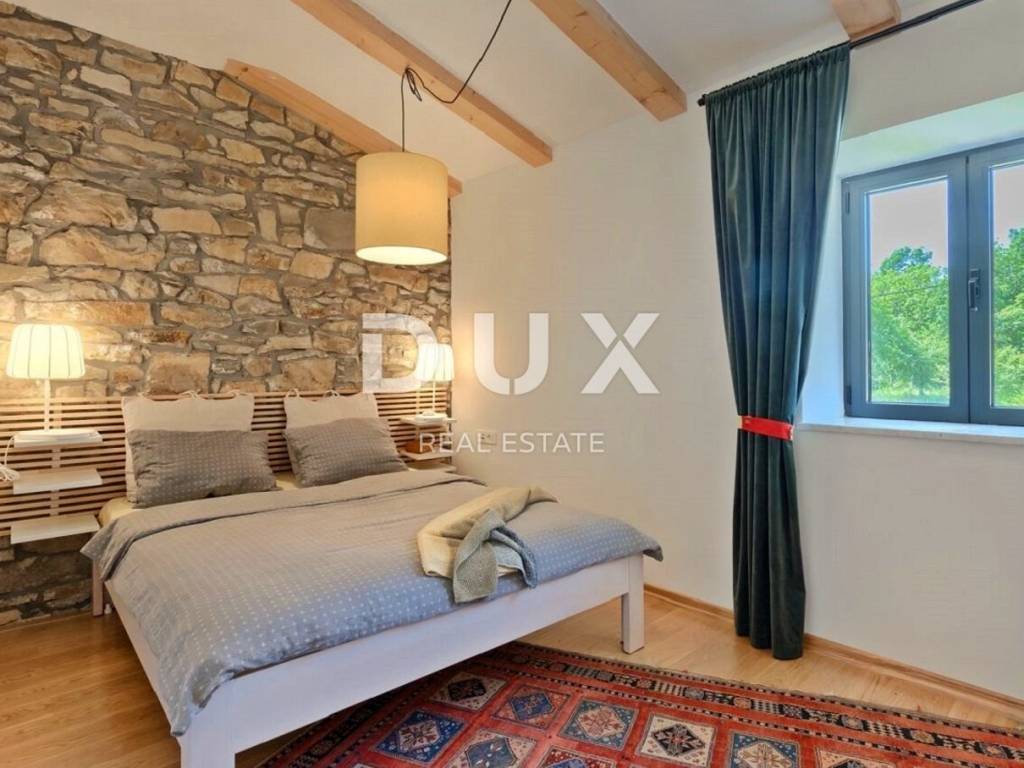 The house was created by the reconstruction of an autochthonous Istrian house from the beginning of the 20th century, using old crafts and the use of original materials and construction methods, and is distinguished by a combination of authentic and modern. The interior of the old stone house, which was saved from oblivion and completely adapted to the modern lifestyle through adaptation, radiates an ambience filled with the warmth of wood and the freshness of stone with a combination of modern and rustic style furniture. The living area is divided into ground floor and first floor. On the ground floor there is a living room, a dining room and a kitchen with exits to a spacious covered terrace and a bathroom, while on the first floor there are two bedrooms and a bathroom. The house is surrounded by a meticulously arranged garden that offers a combination of comfort, peace and nature, and it is decorated with an outdoor pool of 40 m. Far from the noise of the city, this property is an ideal opportunity for a quiet family life as well as an investment for the purpose of tourist rental.