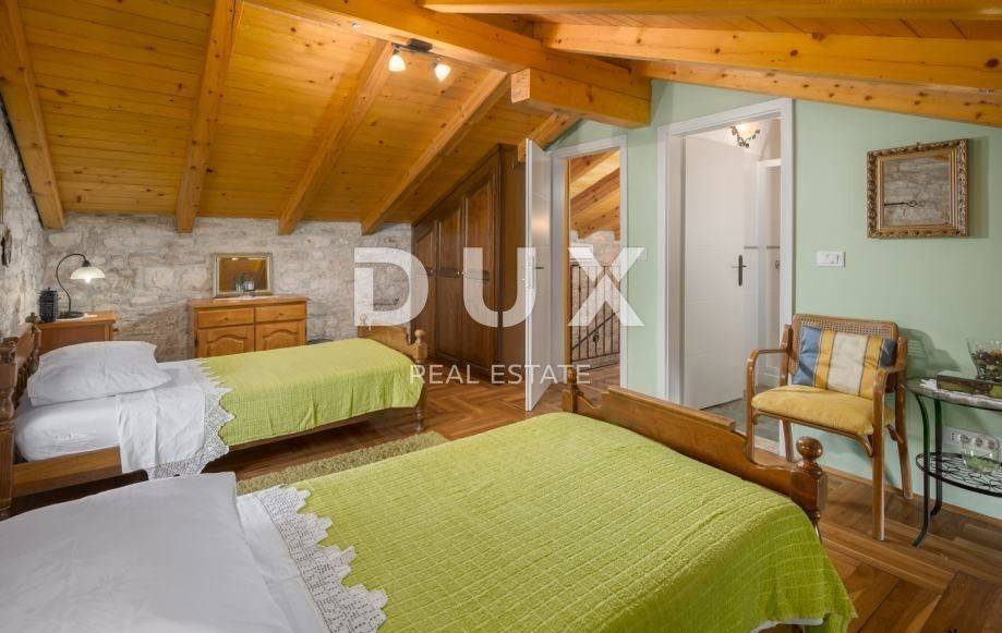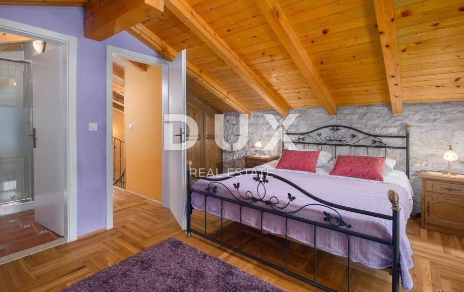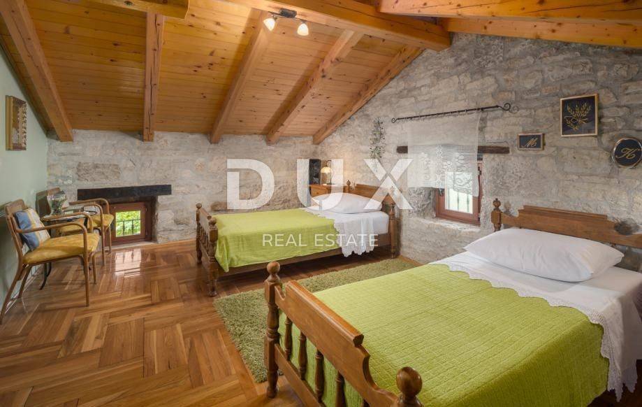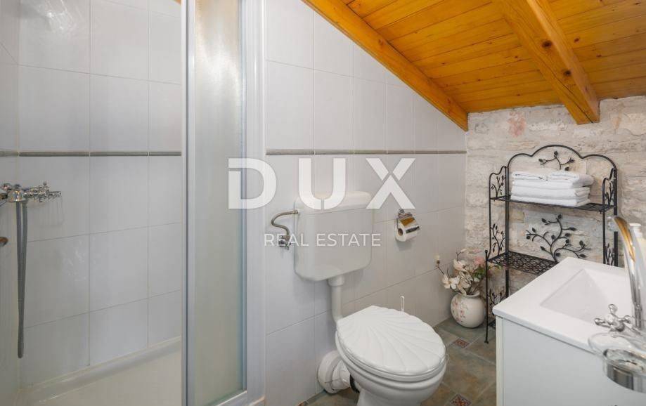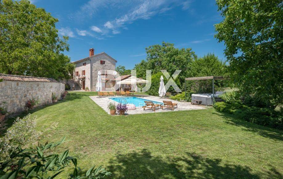 Villas with swimming pools, numerous apartments, campsites, bicycle paths, viewpoints, old dry walls, kažuni, puddles - all this is Tinjan, a place where visitors will experience Istria in all its uniqueness. And there are numerous sights that tell stories about the rich history of our region at every turn. The Municipality of Tinjan is the most developed touristic municipality in the area of central Istria. We are proud to say that its residents have recognized tourism as one of the most important branches of development, which is why they have more than 150 rental properties in this area. One of the villas that has been rented for more than a decade is this indigenous stone beauty with a swimming pool! The villa was built long ago in 1817, and in 2006 it was completely adapted and since 2008 it has been used as a tourist rental, bringing the owners excellent income. The villa has an area of 193.47 m2 and its area is spread over the ground floor, first floor and attic. The ground floor has a kitchen, living room and dining room. The first floor has two bedrooms, each with its own bathroom. The attic also contains two bedrooms, each with its own bathroom. Another bathroom is located on the outside of the house and is ideal for use during the summer months while enjoying the outdoor facilities. There is also a storage room, brick barbecue, bicycle storage and a covered terrace. In addition to the swimming pool of 36 m2, there is also a massage tub for 6 people next to the house, as an additional feature for warm summer days. In the yard there is also an orchard, a children's playground with a slide, swings, soccer goals and a trampoline. In the immediate vicinity of the house there is a facility of 32 m2 with contents for entertainment (darts, billiards, table football). The total area around the house is 7,057 m2, of which 3,081 m2 is construction land, 3,172 m2 is agricultural land, while 804 m2 is land located next to the house and that part is surrounded by a wall. A lot of land certainly offers various possibilities, such as the construction of additional stone villas for vacation and engaging in various agricultural activities, such as olive growing or viticulture. There are many possibilities, and it is up to you to turn your ideas into reality, and this is very possible with this property. Tinjan is 5 minutes away by car, and Poreč is 15-20 minutes away. Become the owner of this unique property and call us for a viewing! Dear clients, the agency commission is charged in accordance with the General Business Conditions www.dux-nekretnine.hr/opci-uvjeti-poslovanja