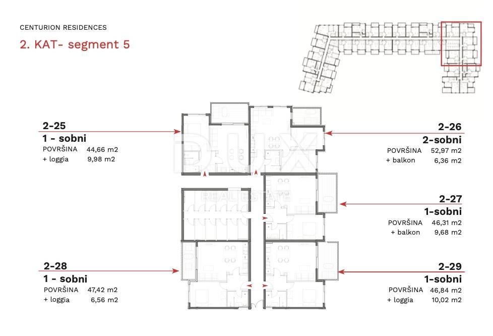We proudly present to you an exclusive two bedroom apartment with an elevator in one of the most prestigious new buildings in Umag. This spacious apartment with a total area of 60 m2 is located on the second floor of this imposing residential building. The apartment offers elegance and comfort, it consists of a spacious living room with a modern kitchen, two luxurious bedrooms, an elegant bathroom, and a balcony of 6 square meters. The apartment also comes with a storage area of 3.44 m2, one covered parking space and one garage parking space, making your everyday life extremely practical. This apartment building was built with a professional approach and attention to detail. The building is designed from reinforced concrete monolithic construction with mezzanine panels for additional safety and stability. Inside the apartments, partition walls are made with double-thick plasterboard coverings, providing excellent thermal and sound insulation. The facade cladding is in the ETICS system with thermal insulation 10 cm thick, ensuring energy efficiency. New generation high-quality PVC carpentry with electric blinds provides additional comfort and safety. Each apartment is equipped with a top multisplit heating and cooling system, ensuring perfect temperature and economy. The apartments have their own meters for water and electricity, and sanitary water is heated using an electric boiler. In addition, each apartment has a telephone, antenna, TV and Internet connection, with a built-in video intercom for greater security. The apartment is covered with high-quality parquet in the rooms and living room, while the corridors and hallways are equipped with elegant tiles. With the highest quality materials and equipment, this apartment not only provides extraordinary comfort for living, but is also ideal for renting for tourist purposes. The planned completion of construction is in the middle of 2025, which will allow you to quickly enjoy all the advantages of this luxury apartment. The location is perfect, just 700 meters from the sea and the center of Umag, which allows you to enjoy all the charms of this beautiful Mediterranean city. General specifications of the building: Ground floor: - 1x studio apartment with garden - 18x apartments with one bedroom, living room, terrace and garden - 5x apartments with two bedrooms, living room, terrace and garden - 43x storage room 1st floor: - 26x apartments with with one bedroom, living room, terrace and garden - 7x apartments with two bedrooms, living room, terrace and garden - 16x storage room 2nd floor: - 26x apartments with one bedroom, living room, terrace and garden - 7x apartments with two bedrooms, living room, terrace and garden - 16x storage room 3rd floor: - 24x apartments with one bedroom, living room and balcony - 7x apartments with two bedrooms, living room and balcony - 1x apartment with three bedrooms, living room , balcony and loggia - 14x storage Underground garage: - 74 parking spaces - 33 storage spaces Ground parking: - 26 covered parking spaces - 82 uncovered parking spaces Do not miss the opportunity to become the proud owner of this luxury apartment in Umag and enjoy an exclusive life experience in one of the most attractive new buildings on the market. For additional information and viewing of the apartment, contact our agency today. Dear clients, the agency commission is charged in accordance with the General Terms and Conditions. www.dux-nekretnine.hr/opci-uvjeti-poslovanja