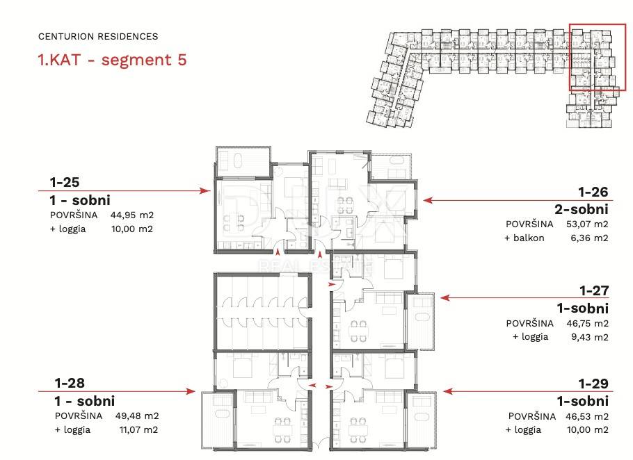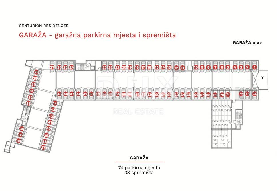 We proudly present to you an exclusive one-bedroom apartment with an elevator in one of the most prestigious new buildings in Umag. This spacious apartment with a total area of 61 m2 is located on the first floor of this imposing residential building. The apartment offers elegance and comfort, it consists of a spacious living room with a modern kitchen, a luxurious bedroom, an elegant bathroom, and a loggia of 11 square meters. The apartment comes with a storage area of 2.67 m2, one outdoor covered parking space, making your daily life extremely practical. This apartment building was built with a professional approach and attention to detail. The building is designed from reinforced concrete monolithic construction with mezzanine panels for additional safety and stability. Inside the apartments, partition walls are made with double-thick plasterboard coverings, providing excellent thermal and sound insulation. The facade cladding is in the ETICS system with thermal insulation 10 cm thick, ensuring energy efficiency. New generation high-quality PVC carpentry with electric blinds provides additional comfort and safety. Each apartment is equipped with a top multisplit heating and cooling system, ensuring perfect temperature and economy. The apartments have their own meters for water and electricity, and sanitary water is heated using an electric boiler. In addition, each apartment has a telephone, antenna, TV and Internet connection, with a built-in video intercom for greater security. The apartment is covered with high-quality parquet in the rooms and living room, while the corridors and hallways are equipped with elegant tiles. With the highest quality materials and equipment, this apartment not only provides extraordinary comfort for living, but is also ideal for renting for tourist purposes. The planned completion of construction is in the middle of 2025, which will allow you to quickly enjoy all the advantages of this luxury apartment. The location is perfect, just 700 meters from the sea and the center of Umag, which allows you to enjoy all the charms of this beautiful Mediterranean city. General specifications of the building: Ground floor: - 1x studio apartment with garden - 18x apartments with one bedroom, living room, terrace and garden - 5x apartments with two bedrooms, living room, terrace and garden - 43x storage room 1st floor: - 26x apartments with with one bedroom, living room, terrace and garden - 7x apartments with two bedrooms, living room, terrace and garden - 16x storage room 2nd floor: - 26x apartments with one bedroom, living room, terrace and garden - 7x apartments with two bedrooms, living room, terrace and garden - 16x storage room 3rd floor: - 24x apartments with one bedroom, living room and balcony - 7x apartments with two bedrooms, living room and balcony - 1x apartment with three bedrooms, living room , balcony and loggia - 14x storage Underground garage: - 74 parking spaces - 33 storage spaces Ground parking: - 26 covered parking spaces - 82 uncovered parking spaces Do not miss the opportunity to become the proud owner of this luxury apartment in Umag and enjoy an exclusive life experience in one of the most attractive new buildings on the market. For additional information and viewing of the apartment, contact our agency today. Dear clients, the agency commission is charged in accordance with the General Terms and Conditions. www.dux-nekretnine.hr/opci-uvjeti-poslovanja