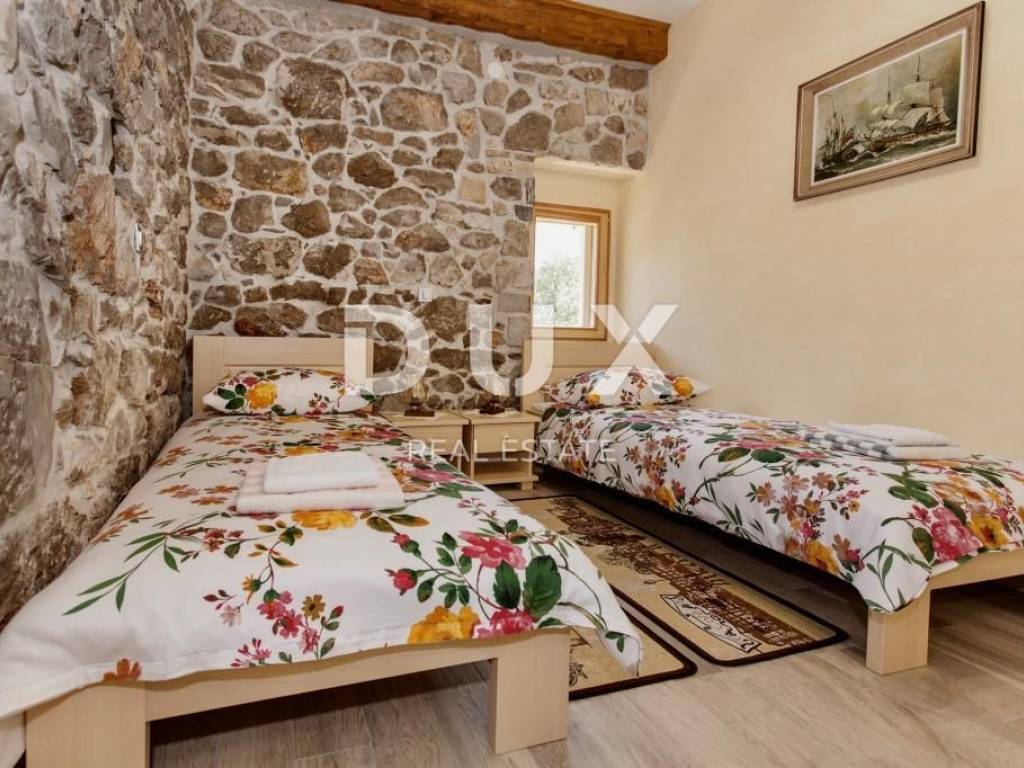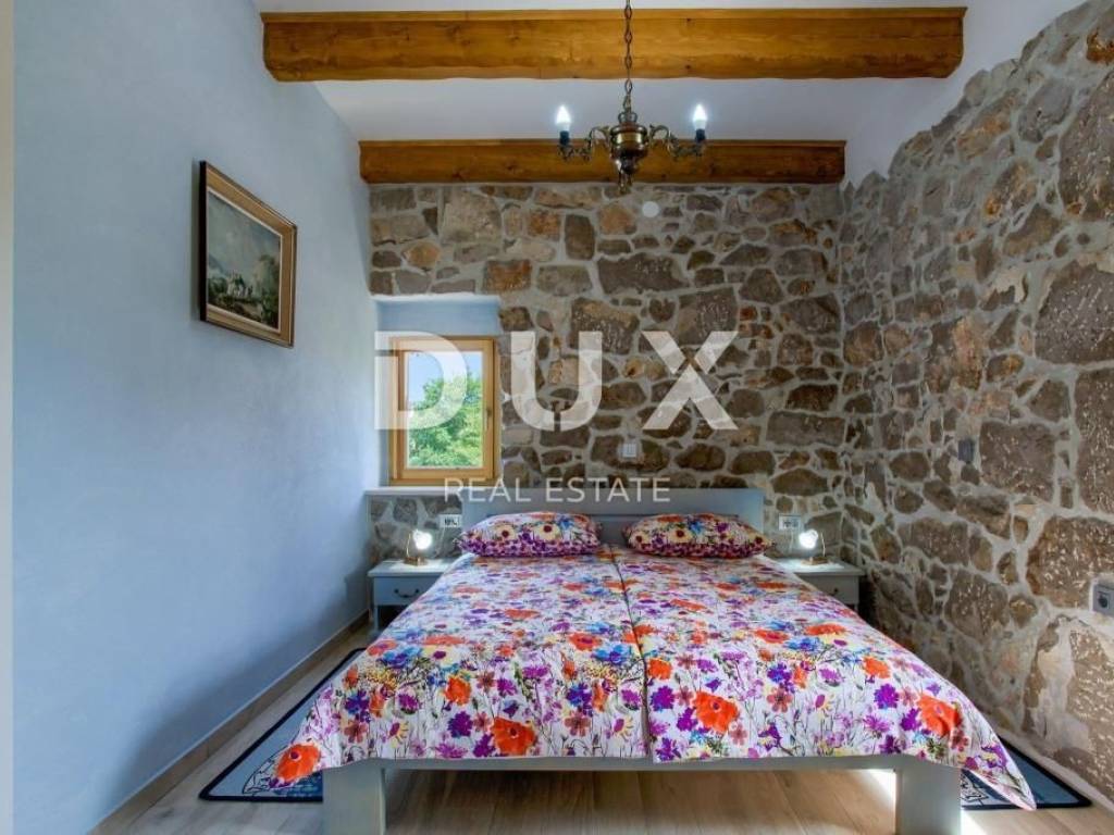 We must be proud that we have for sale an adapted stone villa in the interior of the island of Krk, it is a real masterpiece that offers a perfect combination of traditional charm and modern comfortable living. With an impressive 144 square meters of space, this villa offers exceptional comfort and luxury at every turn. The ground floor offers everything you need for a comfortable stay. A spacious living room, a kitchen with a dining room and a large covered terrace create the perfect space for relaxing and spending time with family and friends. From the terrace you can go out into the beautiful garden of an impressive 620 m, where you will find a fairy-tale pool, deck chairs for sunbathing, a barbecue for preparing delicious meals outdoors and a garden house that further enriches this idyllic picture. There are four air-conditioned bedrooms on the first floor, and each of them has its own bathroom. This means that every guest will be able to enjoy complete privacy and comfort during their stay. The villa is equipped with beautiful furniture and traditional stone details that give it an antique charm, and the beams on the ceiling further emphasize the authenticity and character of this space. The location of this stone house is another amazing attribute. Located in the interior of the island of Krk, it offers you peace and privacy, far from the hustle and bustle of the city. At the same time, it offers an exceptional opportunity to rent when not in use. The island of Krk is a popular destination during the tourist season, which makes this villa an ideal investment. In this wonderful villa, you will experience the luxury and comfort of interior life on the island, the highlight is that it is not just a house, but also a true oasis that provides an experience to remember. Dear clients, the agency commission is charged in accordance with the General Terms and Conditions. https://www.dux-nekretnine.hr/opci-uvjeti-poslovanja
