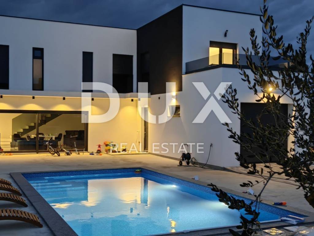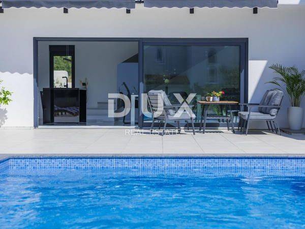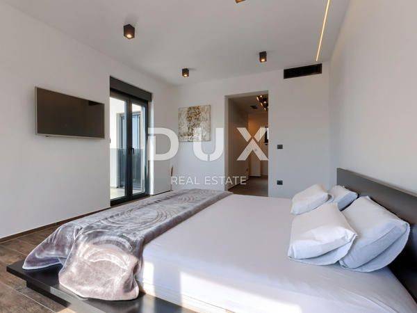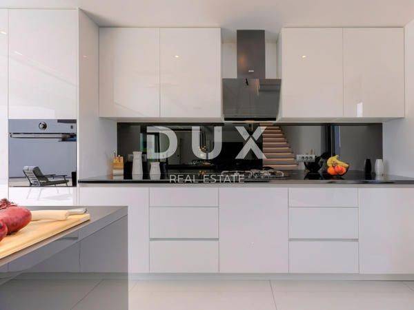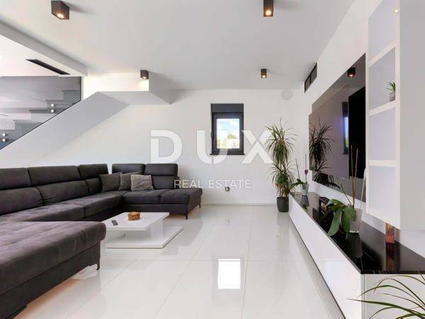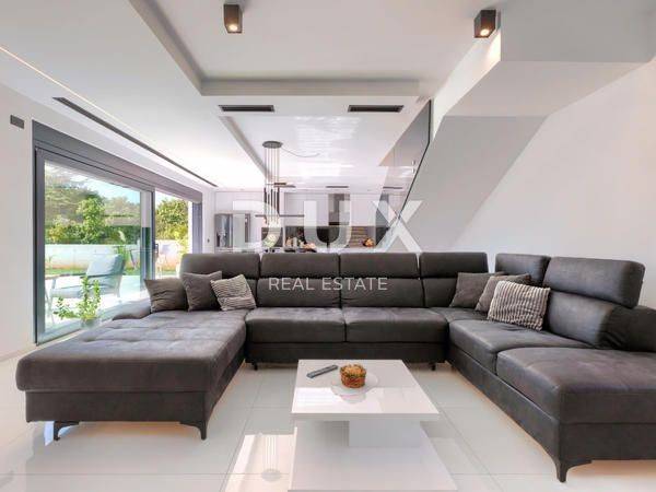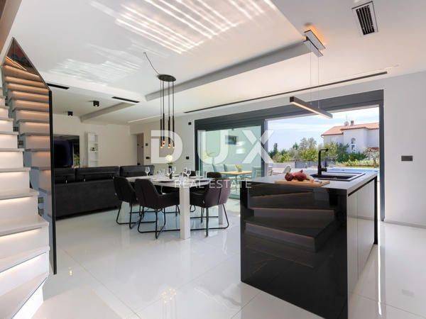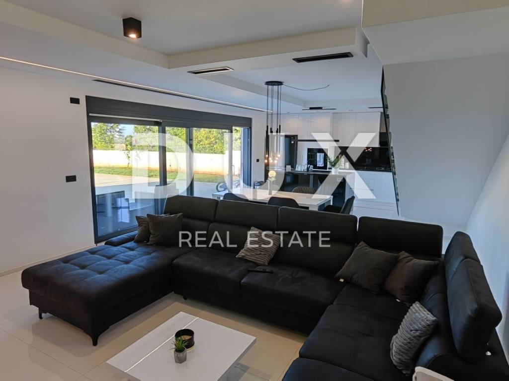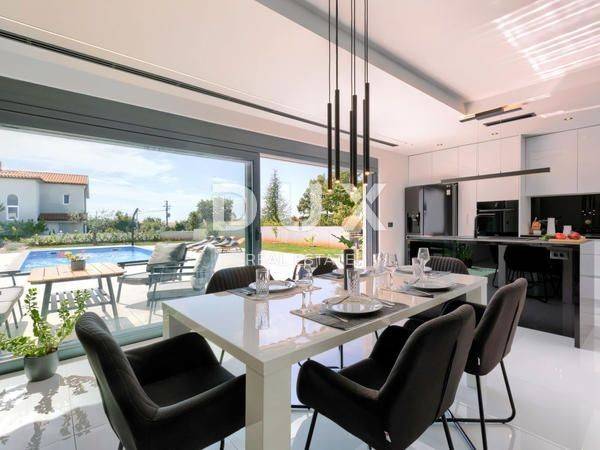 Not far from the town of Vodnjan, there is a small town called Majmajola, which is rich in family houses and top quality holiday villas. Our agency offers exactly one of these. It is a villa of modern construction located on a plot of land of 666m2, while the living space is 174m2 and extends through the ground floor and the first floor. On the ground floor there is an entrance hall, a spacious living room connected to the kitchen and dining room, a bathroom with a toilet and a storage room. The living room is illuminated thanks to the Rehau glass wall, which provides direct communication with the spacious outdoor terrace and access to the pool and sunbathing area. The internal staircase leads to the first floor where there are three bedrooms. The two bedrooms each have their own wardrobes and share a spacious and modern bathroom. The third bedroom, the master bedroom, has its own wardrobe, bathroom with toilet and a spacious balcony. The heating and cooling of the property is solved through the ventilation ducts of the central floor system powered by Mitsubishi machines that reach the desired temperature in just a few minutes. The interior of the property was made to measure, and the interior designer is responsible for it. The floor coverings, marble and ceramics, are first class and Mapei materials are used, while all the carpentry is Rehau brand with double and triple glass. There is a 4x8 swimming pool on the 492m2 plot, decorated with ceramic mosaics and epoxy joints, fully automated and includes counter-current swimming. The garage has direct communication with the villa and is intended for one vehicle, while there is space for 5 additional cars in the outdoor parking lot. Considering the location and the arrangement and the quality of the property, we believe that the villa is highly recommended and is ideal for a wonderful family life in a quiet location or for a safe return on investment through rental for tourist purposes. Feel free to contact us for any additional information!