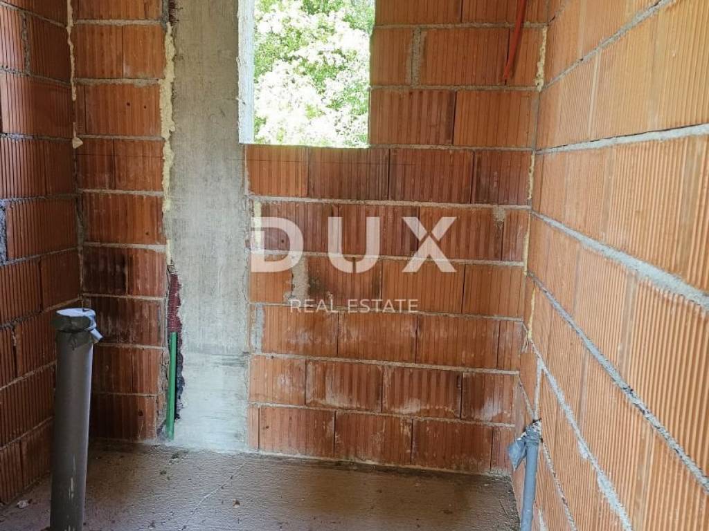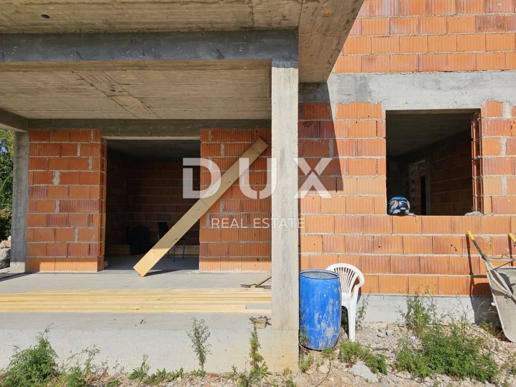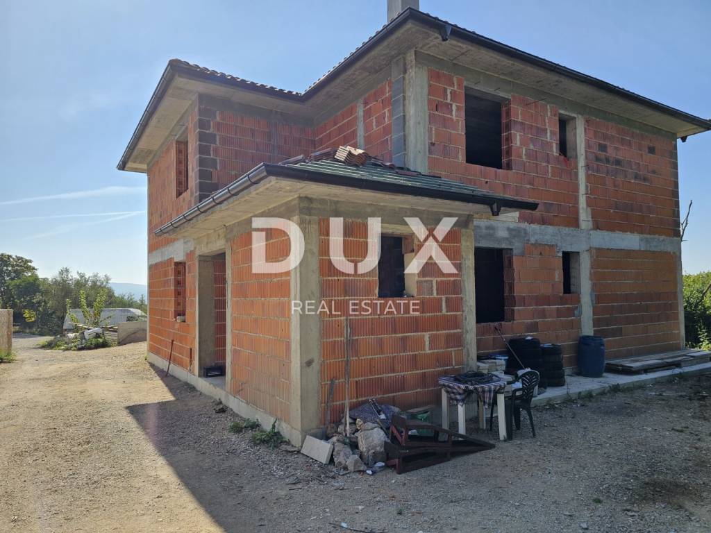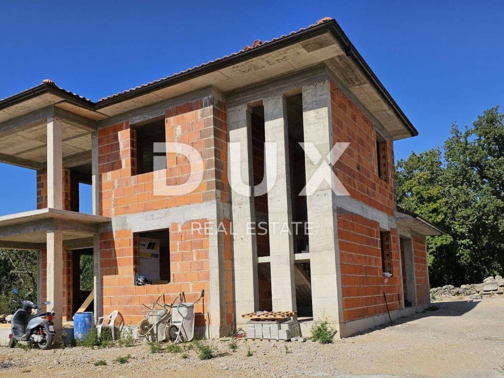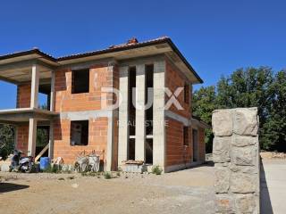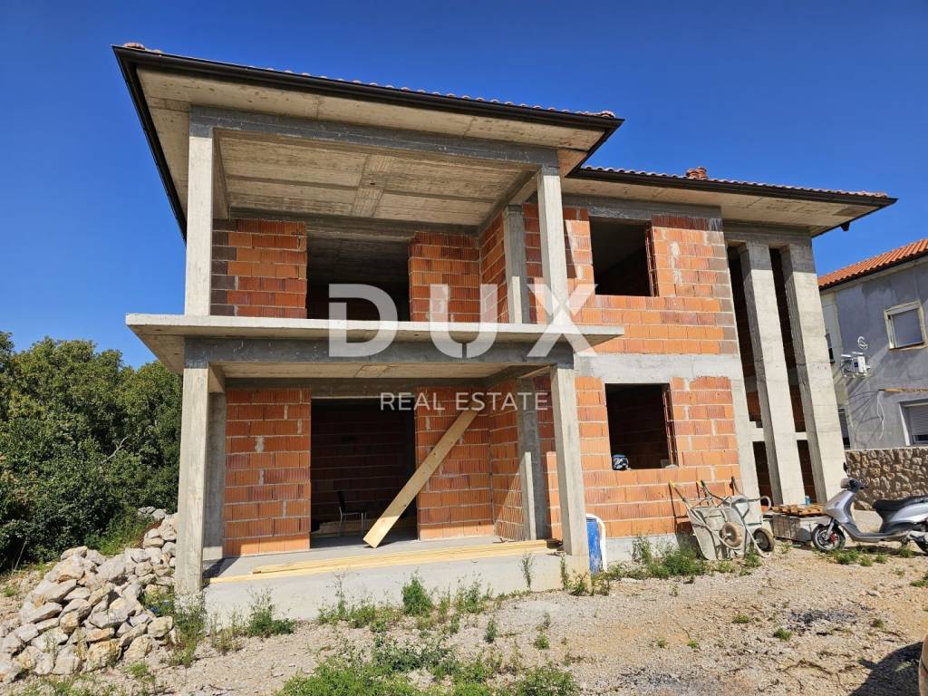 Excellent opportunity in a quiet and peaceful location, in a settlement 4 km from the sea and the eastern beaches of the island of Krk. The house is for sale in the Rohbau phase, which consists of the ground floor and the first floor. The ground floor consists of an entrance, an entrance hall, a kitchen with a dining room and a living room, two bedrooms, a bathroom, a boiler room for central heating and a covered terrace. A modern staircase leads to the first floor where, according to the project, there are four comfortable bedrooms and a bathroom, with the possibility of changing one room into an additional bathroom. An L-shaped pool of 35 m2 will be built on the plot of approximately 500 m2, parking for several cars, and a garden house or a place for barbecue can be placed on the remaining yard. An excellent opportunity to get away from the hustle and bustle of the city or for a tourist investment. Upon agreement with the owner, it is possible to carry out the remaining finishing works for a surcharge. Dear clients, the agency commission is charged in accordance with the General Business Conditions www.dux-nekretnine.hr/opci-uvjeti-poslovanja