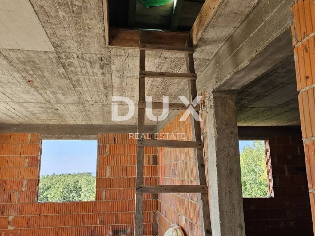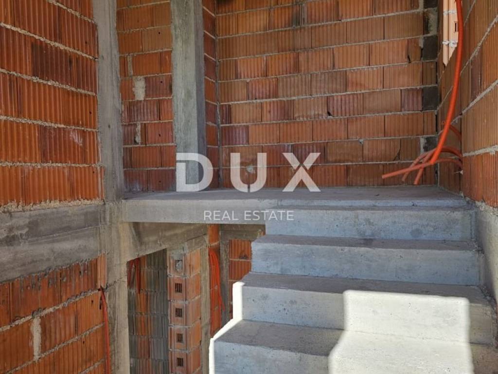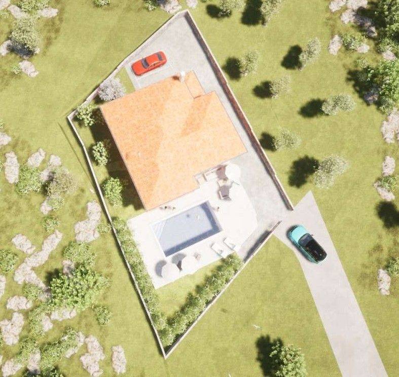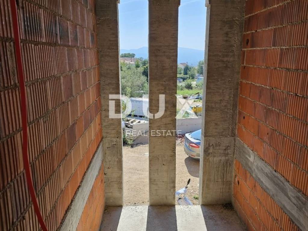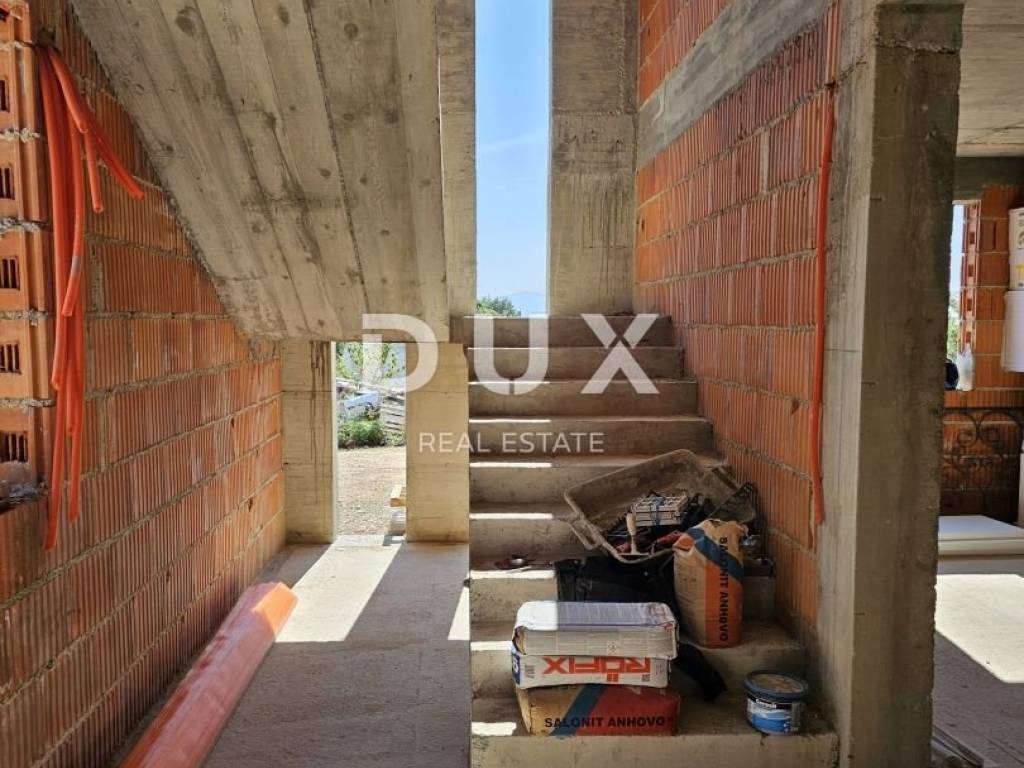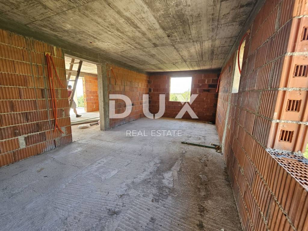 Excellent opportunity in a quiet and peaceful location, in a settlement 4 km from the sea and the eastern beaches of the island of Krk. The house is for sale in the Rohbau phase, which consists of the ground floor and the first floor. The ground floor consists of an entrance, an entrance hall, a kitchen with a dining room and a living room, two bedrooms, a bathroom, a boiler room for central heating and a covered terrace. A modern staircase leads to the first floor where, according to the project, there are four comfortable bedrooms and a bathroom, with the possibility of changing one room into an additional bathroom. An L-shaped pool of 35 m2 will be built on the plot of approximately 500 m2, parking for several cars, and a garden house or a place for barbecue can be placed on the remaining yard. An excellent opportunity to get away from the hustle and bustle of the city or for a tourist investment. Upon agreement with the owner, it is possible to carry out the remaining finishing works for a surcharge. Dear clients, the agency commission is charged in accordance with the General Business Conditions www.dux-nekretnine.hr/opci-uvjeti-poslovanja