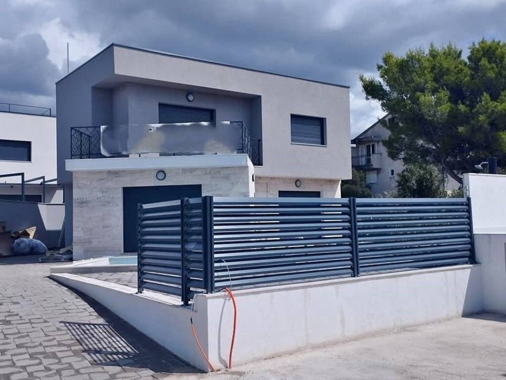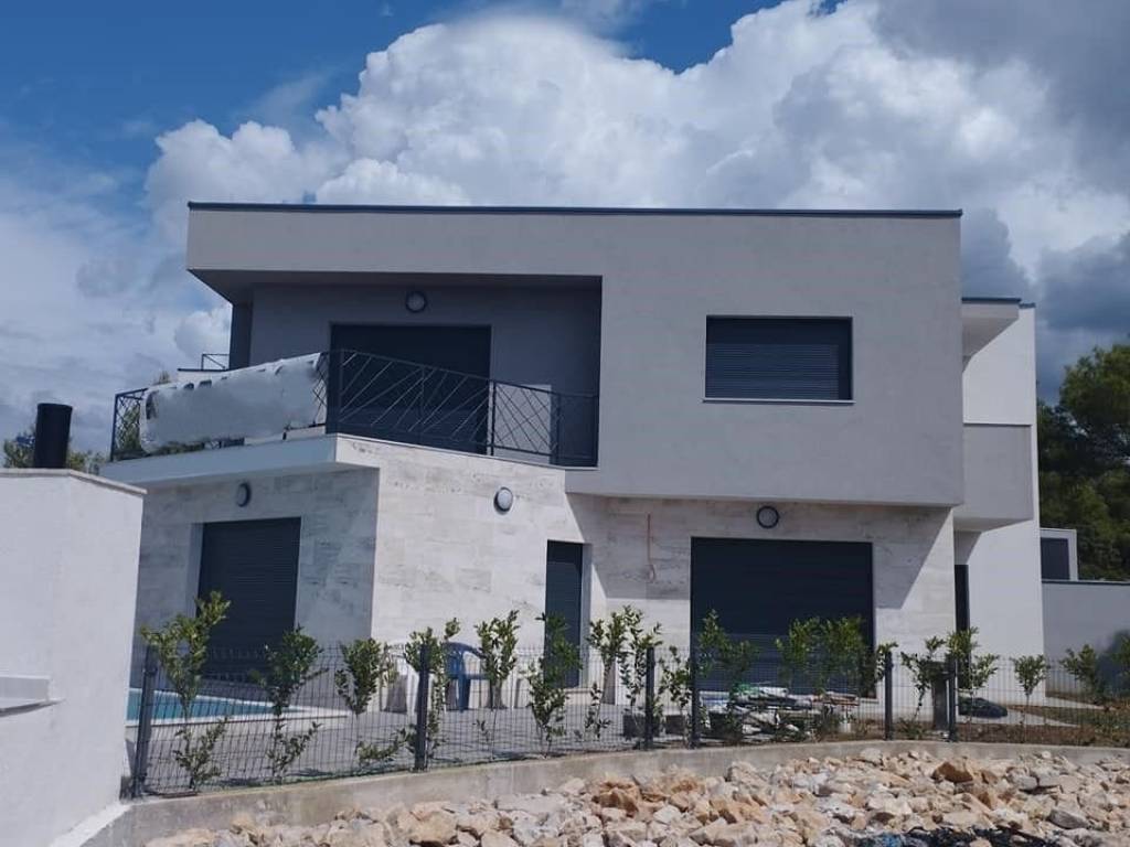Šibenik is located in the central part of the Croatian Adriatic coast, in a picturesque, indented bay into which flows the Krka, one of the most beautiful Croatian karst rivers. Today, Šibenik is the administrative - political, economic and social - cultural center of Šibenik - Knin county, which stretches along the Šibenik coastline for about 100 km, while its hinterland reaches all the way to the foot of the Dinara, 45 km away. In the surroundings of Šibenik, just 200 meters from the sea, a modern new building with a residential area of 200 m2 is for sale. It consists of four bedrooms, living room, kitchen, dining room, 3 bathrooms and one toilet. There is a 5x4 meter swimming pool in the fenced yard.