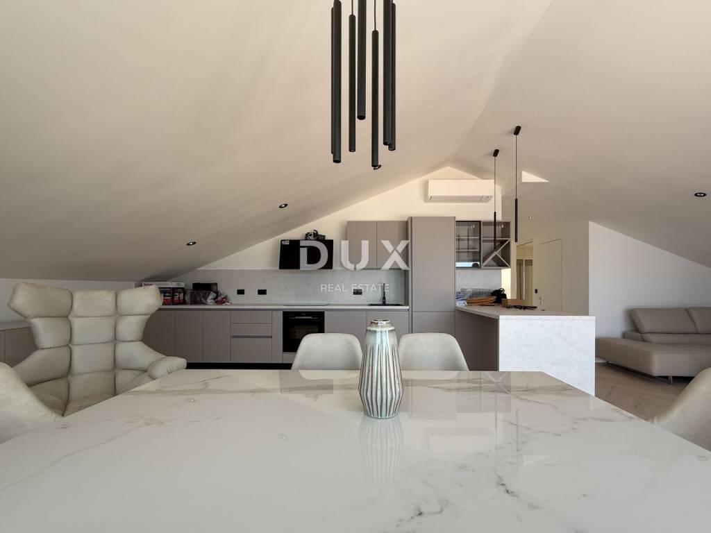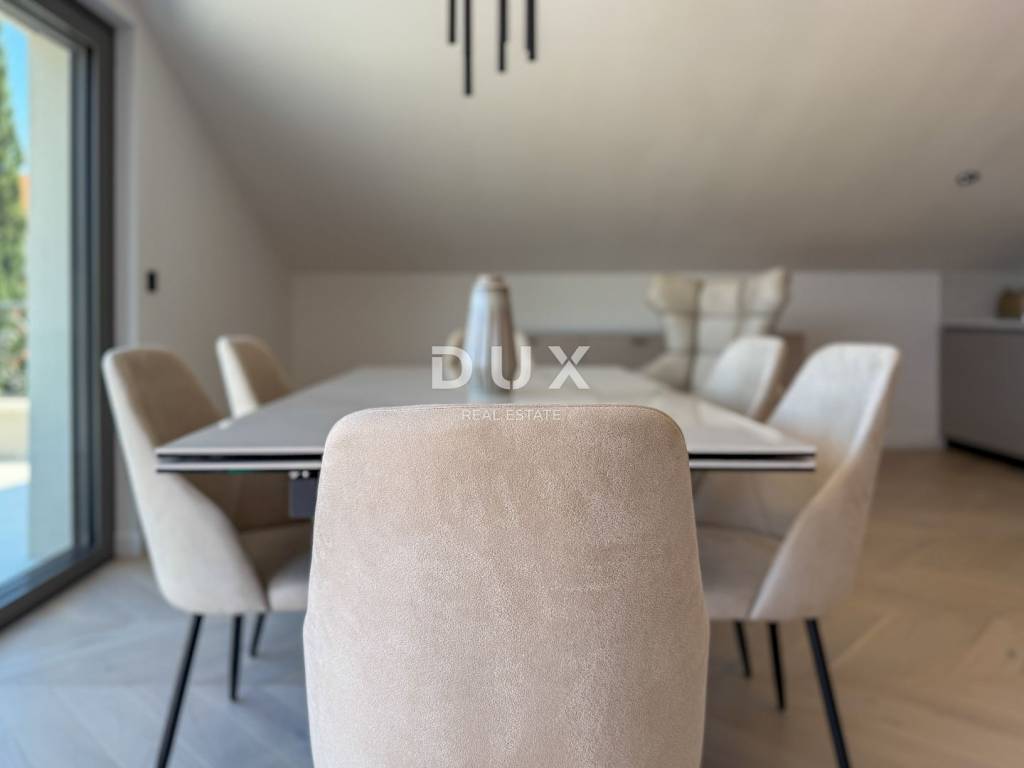 Exclusively in the DUX offer, we present a unique penthouse of 204 m2 in a superb new building under a new road in the very center of Opatija. Located in a new building with a garage, this penthouse boasts a unique location in the heart of the city, only 200 meters from the main street of Opatija or the Lungomare promenade by the sea. This strategic location ensures a peaceful and quiet environment, providing an oasis of peace in the middle of the bustling city center. Apartment S9 with a size of 204 m2 on the 3rd floor covers the entire floor and consists of a hallway, a living room, three large bedrooms, 3 bathrooms (en suite), a terrace from the bedroom with a sea view of 35 m2 and a private terrace of 20 m2 also offers a panoramic view of the sea and the roofs of Austro-Hungarian villas in the center of Opatija. What sets this project apart from other new developments in the city is the integration of art nouveau details. Careful attention to architectural style and details has resulted in a living space that perfectly fits the aristocratic charm and elegance that characterizes the city of Opatija. Every aspect of the design has been carefully crafted to create a harmonious balance between contemporary lifestyle and the timeless appeal of classical architecture.