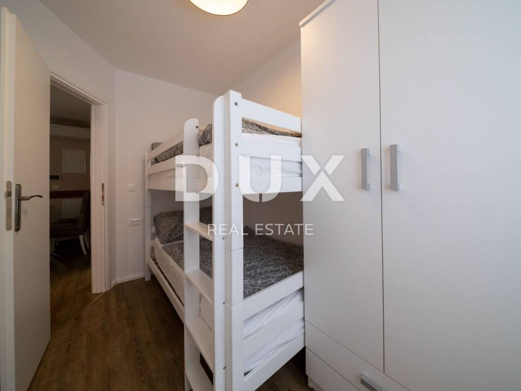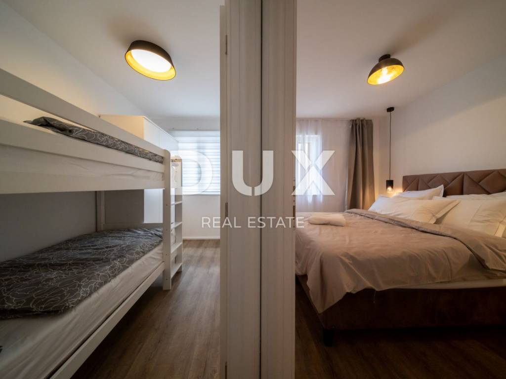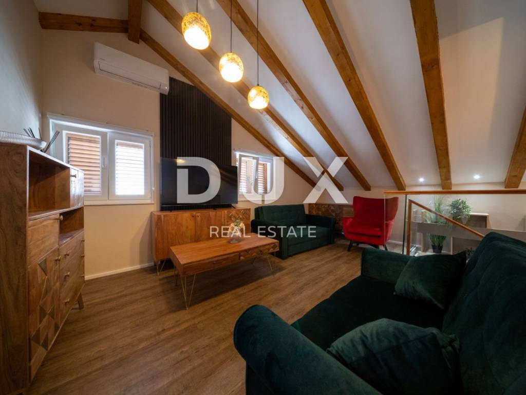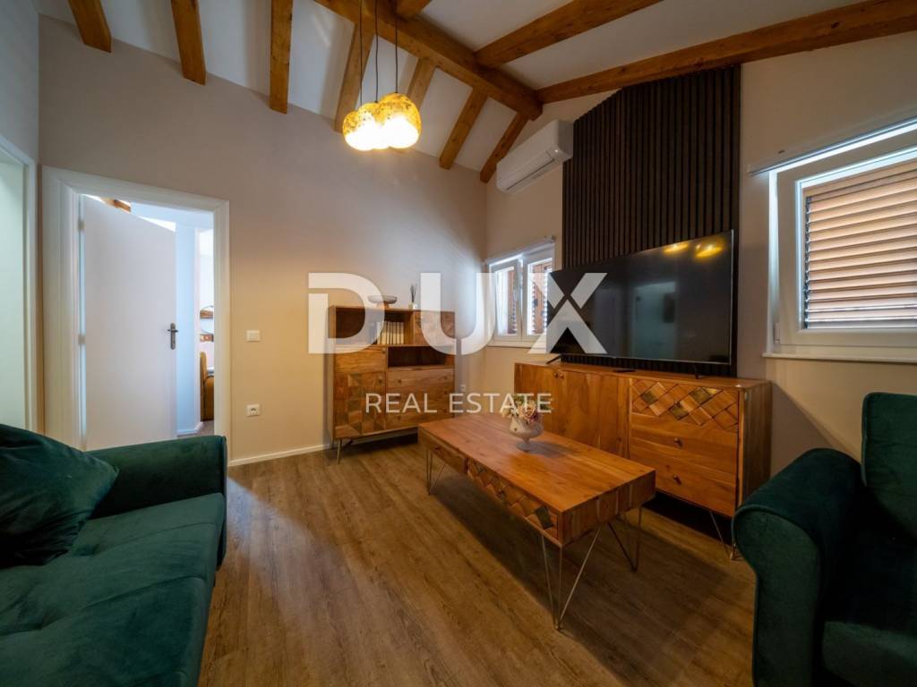Beautiful terraced house for sale in Rogoznica near Šibenik. The completely renovated and reconstructed old house has a total living area of 180 m2, and consists of a basement, ground floor, first floor and attic. There is a tavern in the basement. The ground floor consists of one bedroom, a bathroom and a storage room. On the first floor there is a kitchen, a bathroom and two bedrooms. In the attic there is a living room, bathroom and one bedroom. All rooms are decorated in accordance with the Mediterranean climate, and natural materials such as wood and natural stone are used. During the renovation, the facade insulated with 10 cm Styrofoam, the roof, new installations, ALU-PVC joinery, floor coverings and furniture were installed. The facility is fully air-conditioned. The property represents an opportunity for investment in tourism. The facility is only 30 m from the seashore, and is located near the Frapa marina, the nautical paradise for which Rogoznica is famous. A large number of pristine beaches offered by this beautiful Dalmatian place stretch on as much as 50 km of coastline. One of the most interesting places in Rogoznica is certainly Dragon's Eye, a natural salt lake located on the Gradina peninsula near the Frapa marina. There are also several National Parks and Nature Parks in the area. For example, the Kornati National Park, also known as the pearl of the Adriatic, is located in the immediate vicinity of Rogoznica. The town of Šibenik, whose picturesque streets are reminiscent of the Mediterranean as it once was, is 35 km to the north. 50 km to the south is the city of Split, the cultural and administrative center of Central Dalmatia.