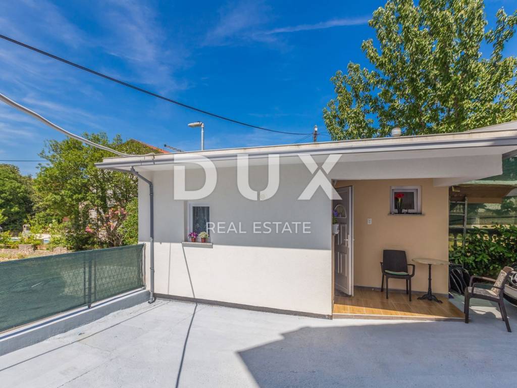 Semi-detached apartment house 220 m2, garden 310 m2 and auxiliary building. The house is a two-story building divided into 4 apartments. It consists of: - the ground floor, where there is a two-room apartment with a living room and a terrace, and a room with a bathroom - the first floor, where there are 2 apartments, one is a studio apartment and one is a two-room apartment with a living room. Both apartments have a terrace. - the attic in which there is a large two-room apartment with a living room and a terrace with a panoramic view of the sea. - an auxiliary building in which there is a living room with a kitchen. The house was renovated and decorated in 2019. The interior is well maintained and fully equipped with the necessary technical devices and quality furniture. The auxiliary facility has solar water heating. PVC carpentry, air conditioning, kitchen are fully installed. In front of the house is a spacious garden with a beautifully decorated gazebo and grill area, as well as a covered parking space for 5 cars. It is in a great location near the very center of Malinska. The title deed is in order, it has a building and use permit. MALINSKA, as the center of Dubašnica, was once an island port for the export of wood and a favorite tourist destination of the Viennese aristocracy. It was mentioned in the 15th century as a good anchorage where ships took shelter during strong winds, especially from the south. With the arrival of the steamship in 1866, Malinska went from being a port for the export of wood to a climatic health resort thanks to the mild climate with about 260 sunny days a year. Today, it is one of the island's strongest tourist destinations, known for its numerous beaches and developed hotel industry, as well as family tourism. Not far from Malinska is Porat, a quiet place where the population once lived from fishing, but today tourism has taken over the leading role. The name of the place comes from the Italian word porto, which means port. The beaches in Malinska and on the island of Krka are known as some of the best in Croatia. One of the advantages of the indented and wide coastline in Malinska is that the beaches, wherever you go, are never far away. The diverse coast of the island offers a wide range of beaches: from rocky, sandy and pebble beaches to hidden coves. Beaches for children, for the disabled, non-swimmers or the elderly, beaches for dogs, beaches for those looking for natural shade and proximity to parking spaces, lovers of sports activities and beach bars, but also an unofficial nudist beach - all this is offered by Malinska. The beaches in the Malinska-Dubašnica municipality are connected by numerous walkways and form a unique natural entity. The layout of the beaches varies from well-maintained concrete plateaus to wild, rocky, adventurous entrances to the sea, but also many more hidden and hidden places for swimming in small coves that are worth visiting. The beaches stretch along the western part of the island of Krk: they start along the Paradise road that connects Malinska and Njivice, and end behind the romantic town of Porto.