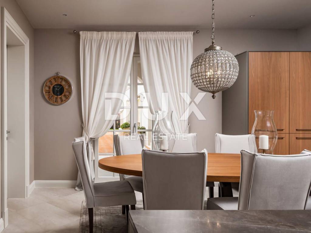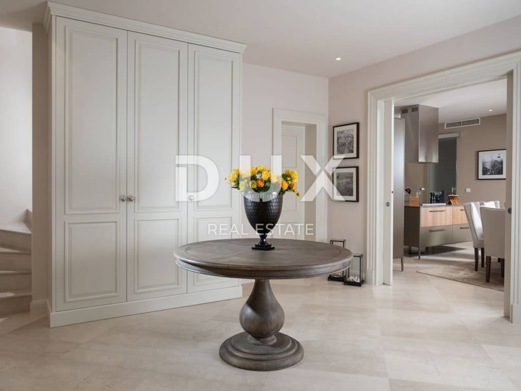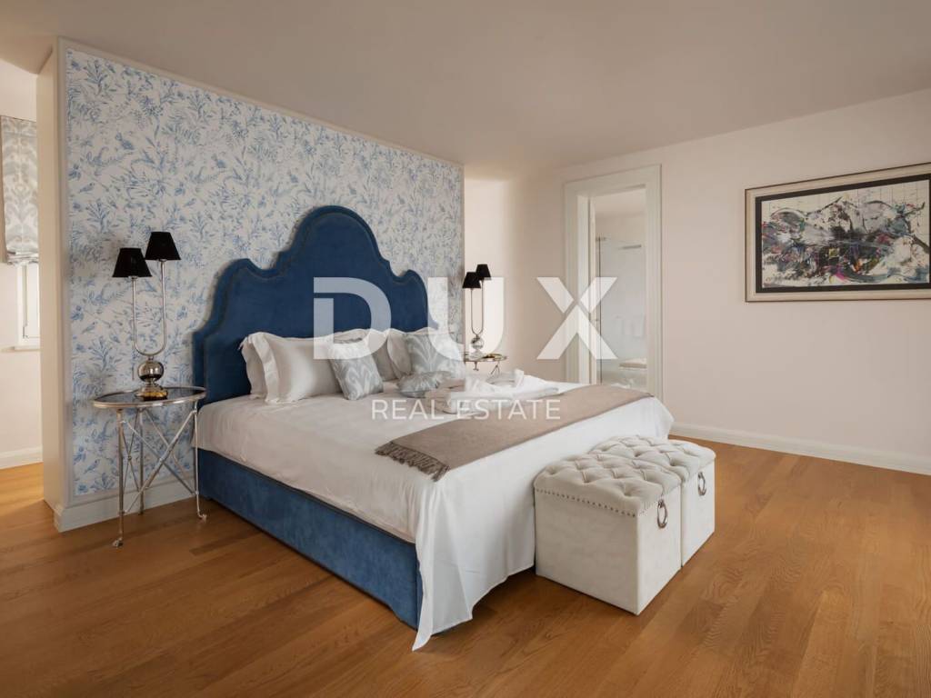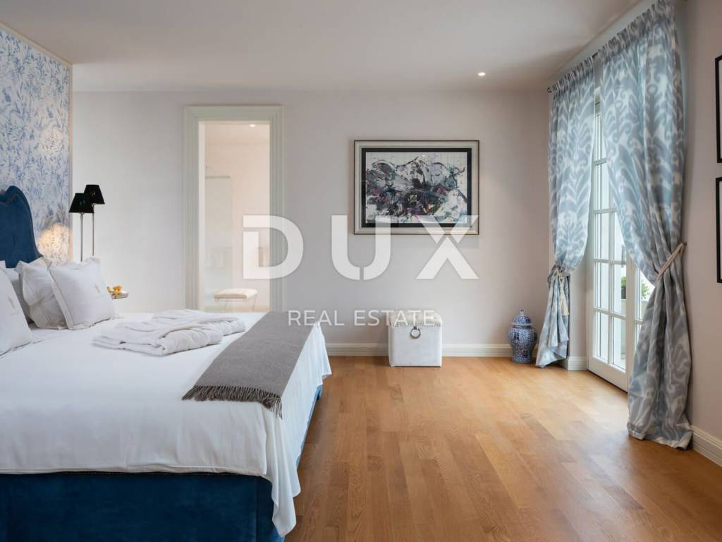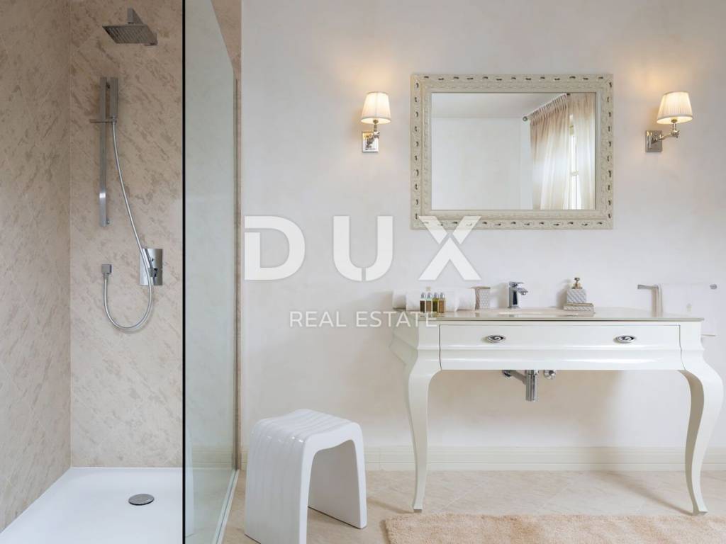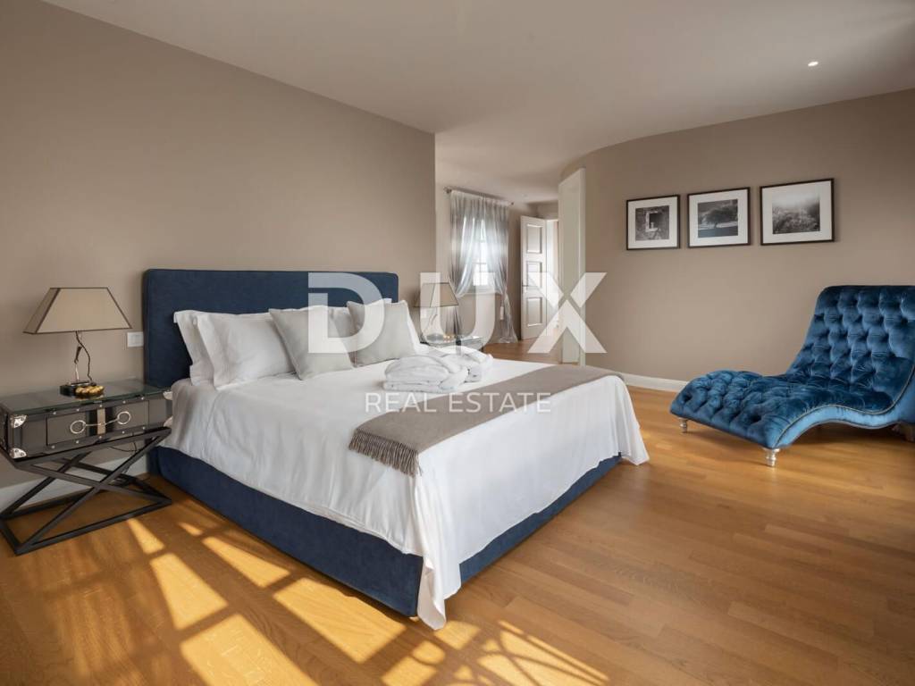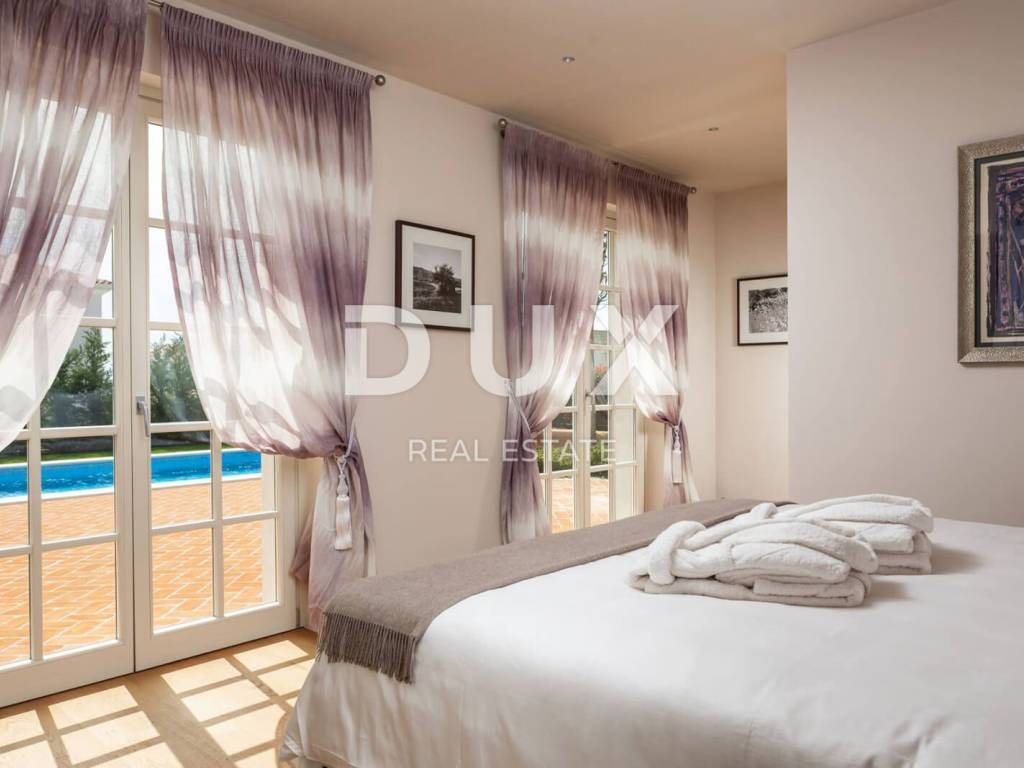 The municipality of Tar-Varbiga is located between the tourist centers of Poreč and Novigrad, offering their charm within easy reach, but at the same time nurturing its own authentic offer dominated by olive growing and fishing, the hospitality of the local people and the tradition that is passed down from knee to knee. Tar-Vabriga is a municipality with six settlements that was created by separating from the city of Poreč. The story begins with the merging of two places into one, places that condense strong contrasts into a unique whole. There, at the same time, you come across the largest river of the Istrian peninsula, the Mirna, which flows into the restless sea and creates wonderful pictures in nature, but also the roads that lead inland, the realm of fresh forests and olive groves. The olive plantations that frame Tar and Vabriga and descend from the hinterland all the way to the sea, precisely because of their extraordinary location, produce the best olive oil in Europe. This beautiful luxury villa of 348m2 is located on a plot of land of 945m2. The villa consists of an entrance hall, a kitchen with a living room with access to the terrace, a 36m2 swimming pool and 4 bedrooms with bathrooms. From the first floor there is an exit to the roof terrace with a beautiful view of the sea. The luxurious interior with carefully selected details is only part of the overall beauty of this villa. With a beautiful garden that includes a swimming pool for recreation and relaxation, an outdoor dining area and a barbecue, it is an ideal place for maximum enjoyment of privacy and complete peace and quiet. The villa will win you over at first sight with its magnificent appearance and the luxury and comfort it exudes in every corner. You will also be amazed by the carefully selected details, from works of art by Croatian artists, interesting chandeliers to a touch of the Mediterranean in the choice of colors in the bedrooms, all for your complete dream vacation experience. An ideal property for investment for the purpose of tourist rental due to the proximity to the sea and all facilities or as a private holiday residence.