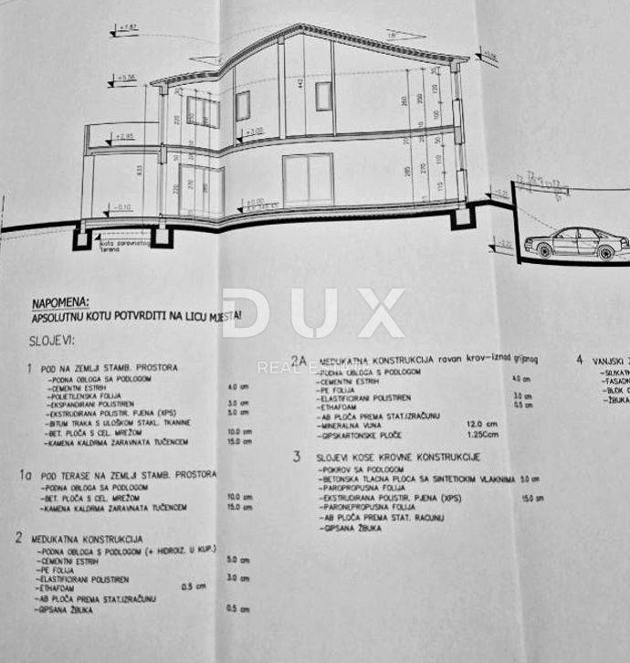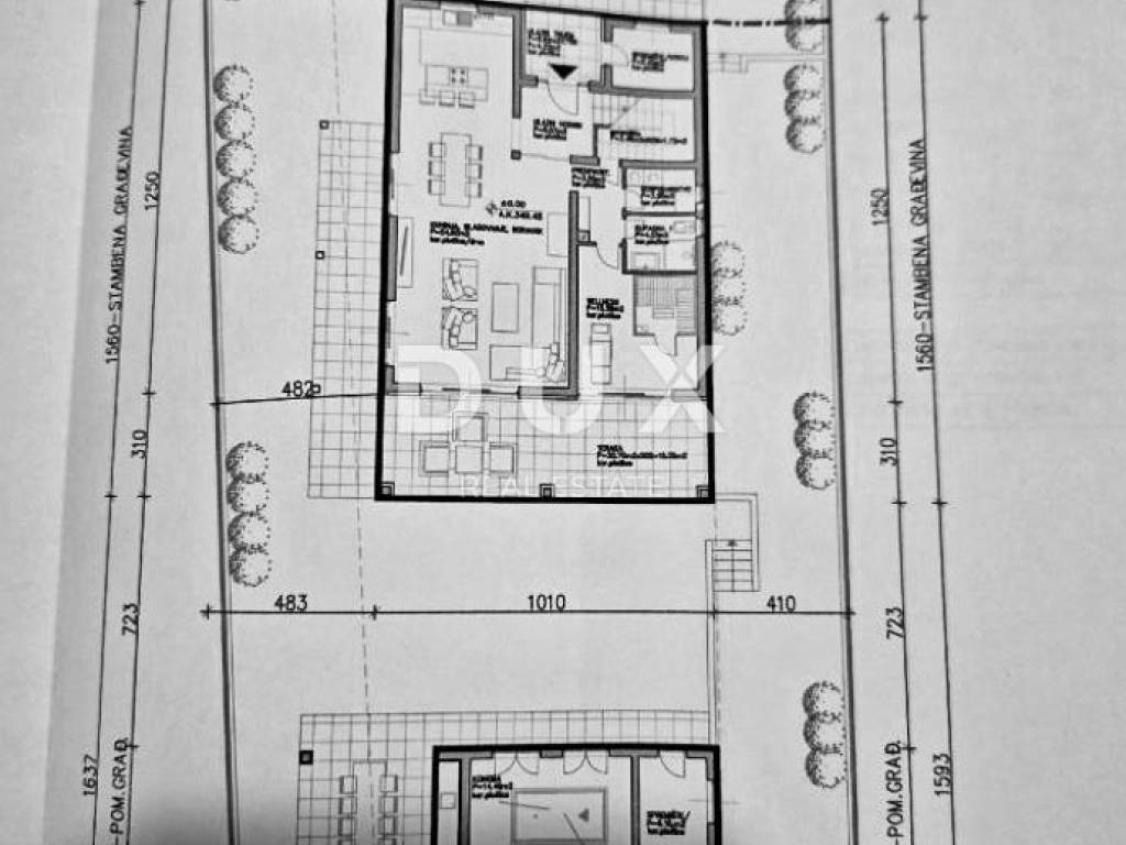 Zemljište ima pravomoćnu građevinsku dozvolu za objekt netto površine 212 m s pomoćnim objektom.