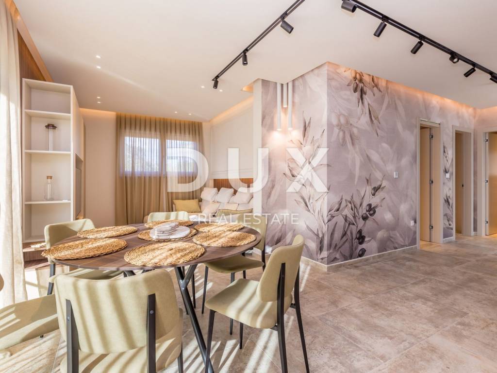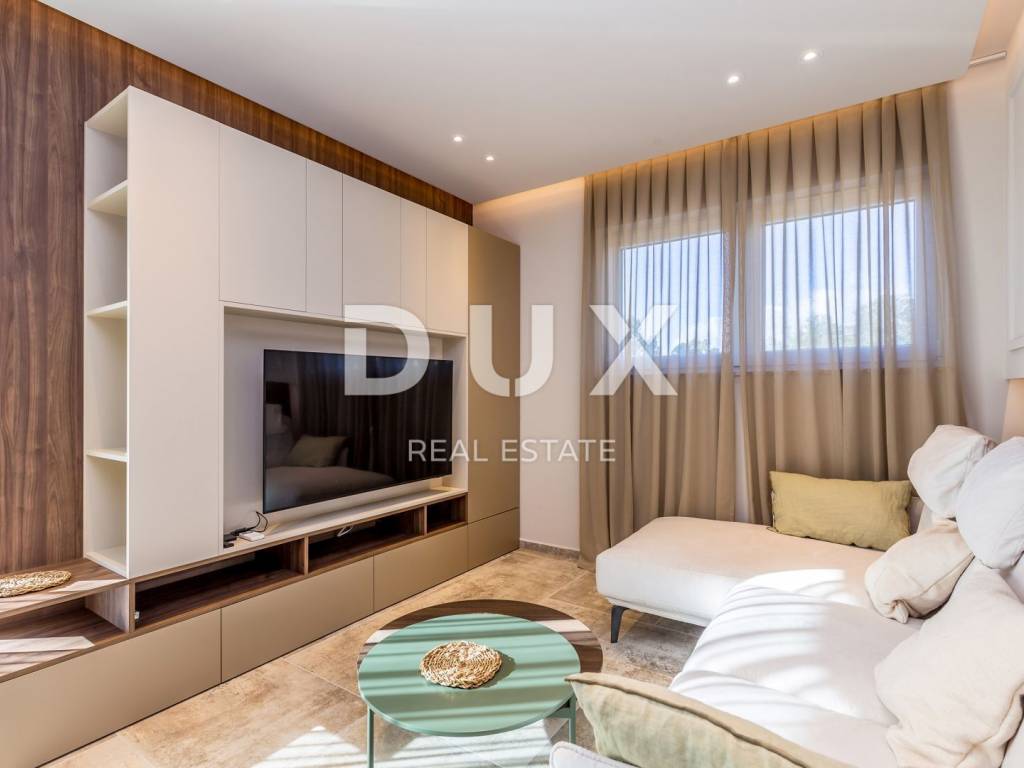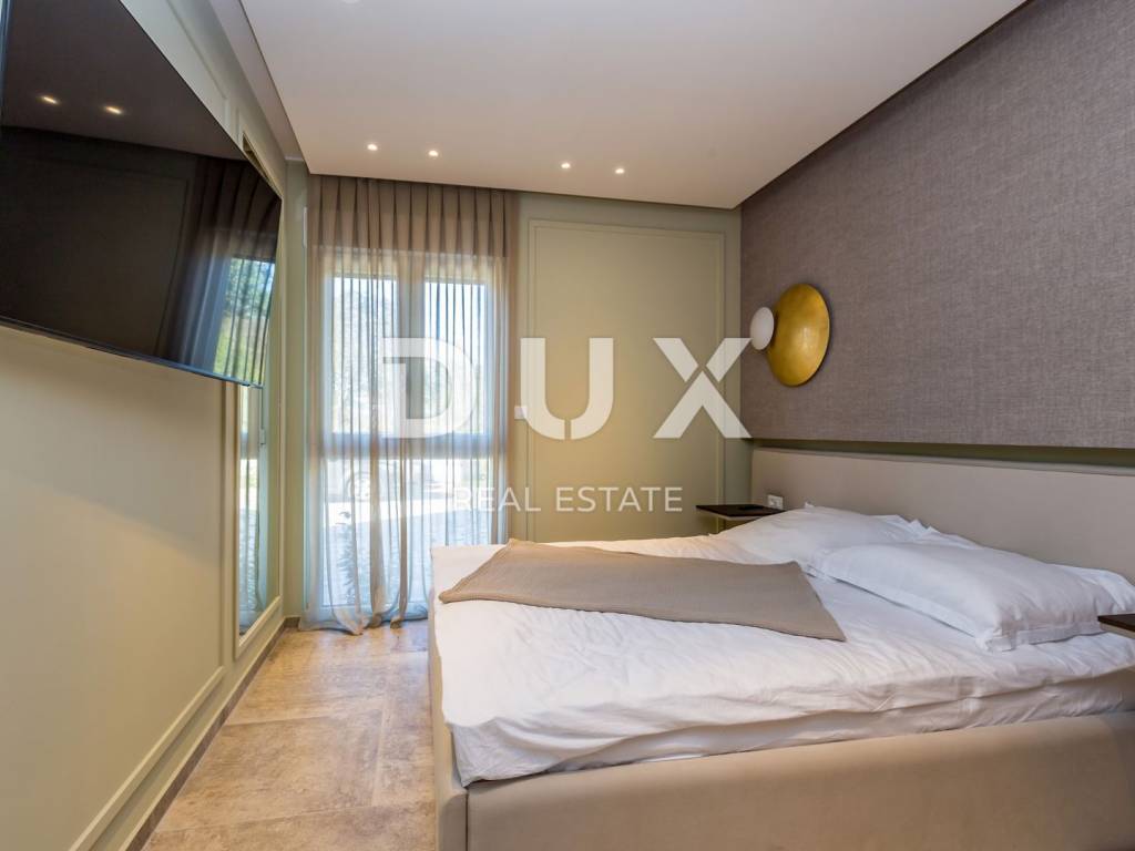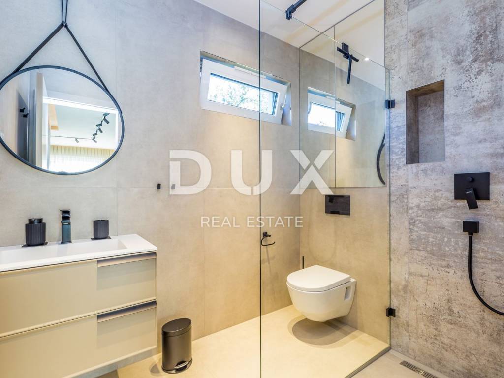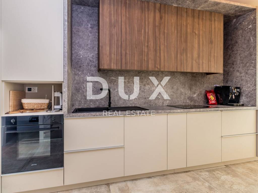 ISLAND OF KRK, NJIVICE - Luxury duplex apartment with rooftop pool and sea view. The entrance to the apartment is located on the ground floor where the entrance hall, pantry, one bedroom and bathroom. Internal stairs lead to the first floor, where there is a living room with kitchen and dining area, two bedrooms and a bathroom. On the roof terrace there is a swimming pool and sun deck. During the construction, the highest quality materials were used, energy certificate A class, underfloor heating in the bathroom, all rooms are air-conditioned.