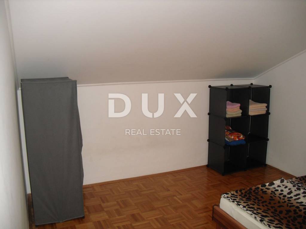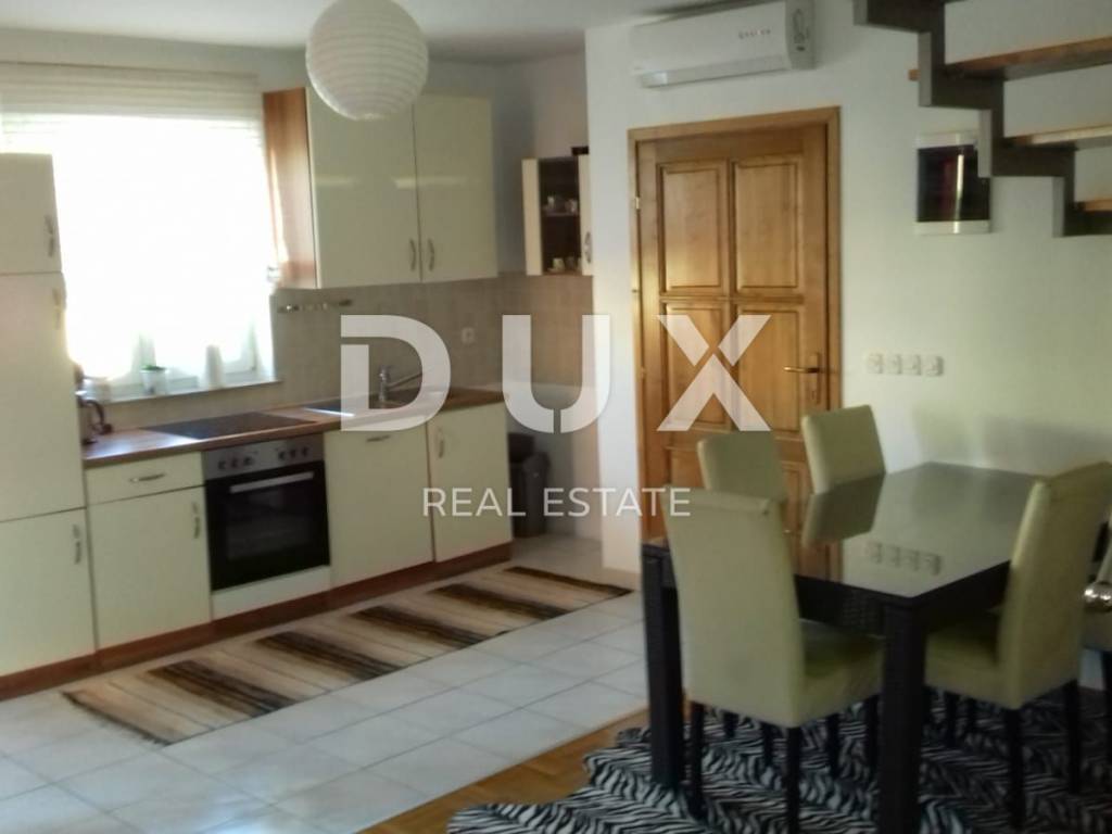 Only in our offer! A three-room apartment for sale on the first floor and high attic of a residential building with only four residential units. The apartment has a garden/courtyard of 57 m2 and two parking spaces of 37 m2. On the first floor there is a bathroom and a kitchen with a dining room and living room and a loggia. An internal staircase leads to the second floor in the loft, which consists of three bedrooms and a spacious toilet. The apartment is fully furnished, equipped with PVC carpentry with shutters and air-conditioned with one air conditioner per floor. Wood/pellet heating is possible. The residential building of recent construction is located approx. 700 m from the center of the town of Krk and all amenities. T