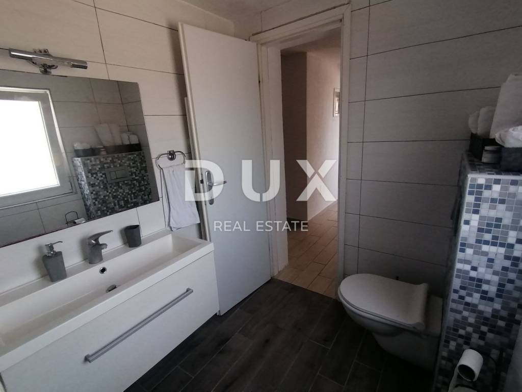 Two family houses are for sale just a few minutes' drive from the center of Pula. They were built on one plot. The ground floor of the first house has a hallway, one bathroom, a kitchen with dining room and living room, and one bedroom. Internal stairs connect the upper floor, where there are three more bedrooms, one of which has a terrace, and one bathroom. In the yard of the house there is a table with chairs and a barbecue and two covered parking spaces. The property is air-conditioned, and central heating is used for heating. The house is used for tourist rental. The second house is divided into two residential units. On the ground floor is an apartment consisting of a hallway, spacious living room, dining room and kitchen, one bathroom, and two bedrooms. There is a separate storage room and boiler room, and a summer terrace. We climb the external staircase to the floor where there is another residential unit consisting of a hallway, one bathroom, three bedrooms, a kitchen with a dining room and a living room from which there is access to the terrace. The apartments are air-conditioned, and in the winter months, central heating is used using fuel oil or electricity. The house has four parking spaces. The houses are fully furnished and are sold as such.