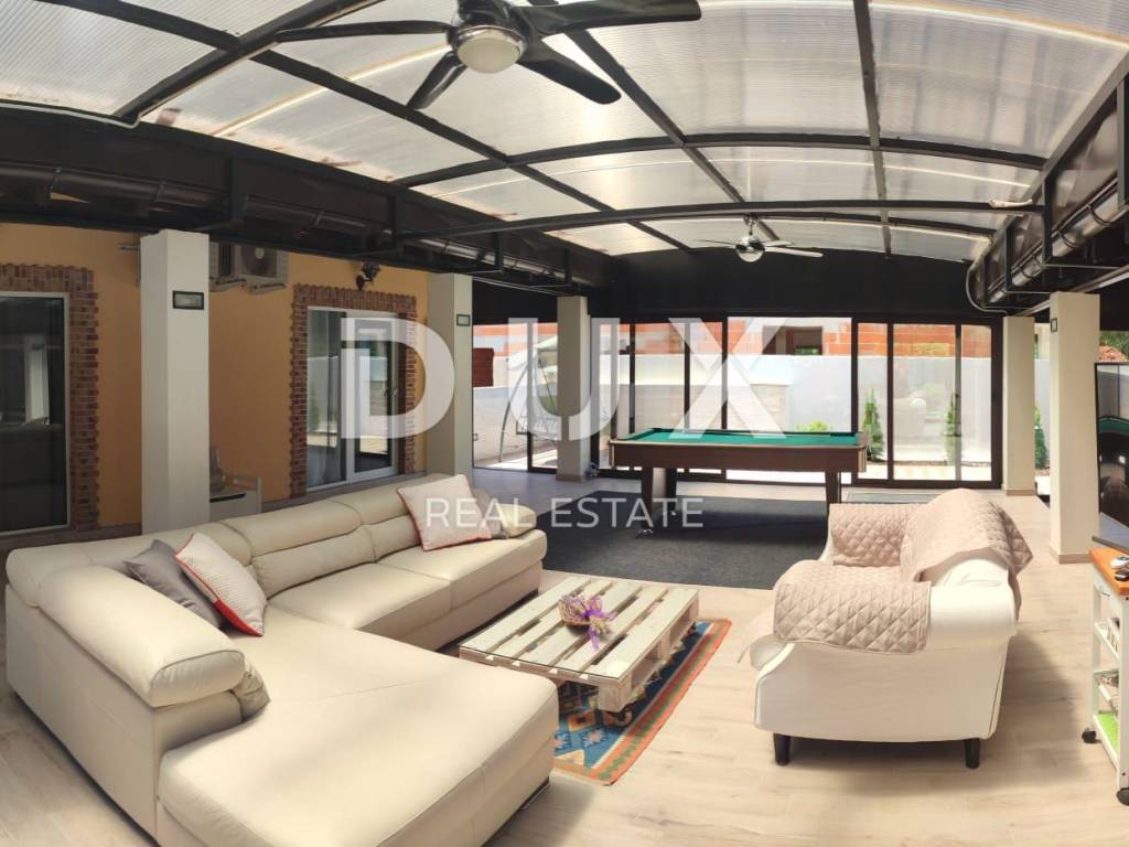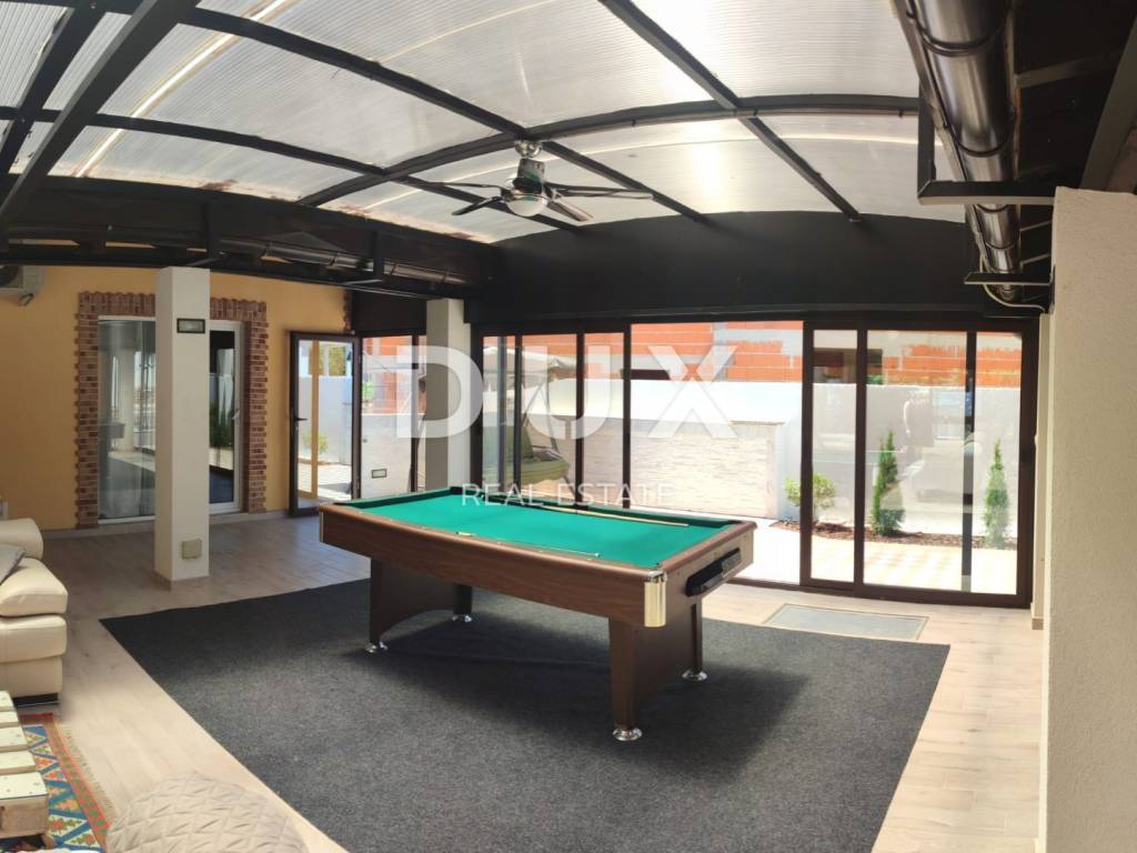 Unique and interesting property in the area of Pomer, only 500 meters from the first beaches! The property extends through a residential area of 450 m2. It is a large house that is divided into four two-story apartments with the same layout, and they have a common central part that is intended for socializing and has an exit through glass walls on two sides to a beautifully landscaped garden. Inside the garden there is also a summer house ideal for lunches and dinners with a glass of good wine. We go down the stairs to the large and spacious summer kitchen, and in the basement there is a large cooled space with a beautiful French brick fireplace, a large dining table, and a living room. In addition to the above, there are two additional rooms in the basement. The property has a video and alarm system, automatic irrigation of the garden, its own water well (25m deep). Four air conditioners have been installed and the property is being sold furnished. In 2018, a new roof, facade, water and electricity installations, bathroom and new laminate were installed. Parking spaces: 4 Given that it is a property with a specific layout, as such it is a rarity on the market and opens up a number of possibilities for future owners. It is located 500 meters from the sea, and in the vicinity there are restaurants, shops, a luxury camp, as well as other tourist spots on the sea surrounded by beautiful nature.