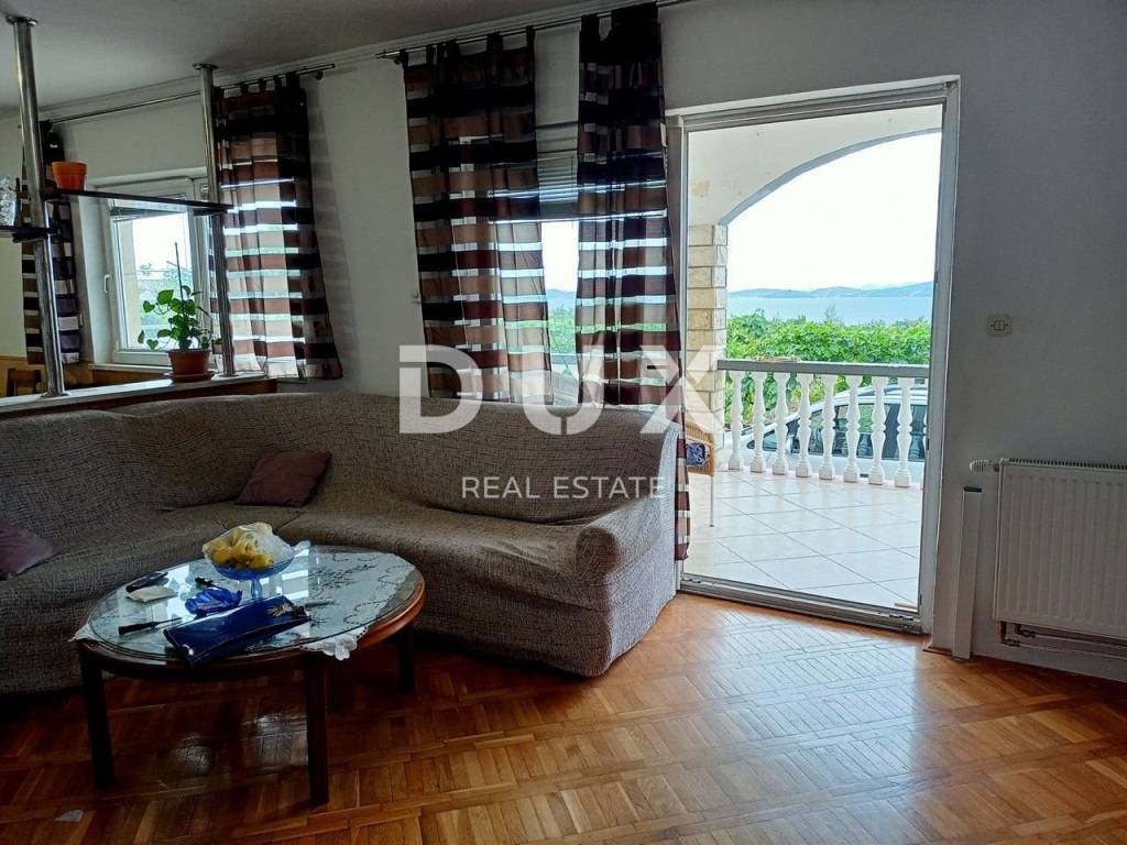 Spacious house with sea view is located in an area called Ploče, or Black in Zadar. On a total of 1160 m2 of plot, this large and fully furnished two-storey house has a total of 350 m2 distributed in three separate apartments. On the ground floor there is one apartment with three bedrooms, one bathroom and an additional toilet. The living room, kitchen and dining room have access to the terrace overlooking the sea and the nearby port of Gaženica. The house is air conditioned, and in the living room there is also central heating. On the first floor of the house there are two separate apartments. Both have two bedrooms, bathroom and kitchen with living room and terrace. A staircase leads to the second floor of the house, which requires investment and renovation, and offers a beautiful view of almost the entire Zadar archipelago. The house has a basement, and in the yard there is a garden house with fireplace, garage and workshop.