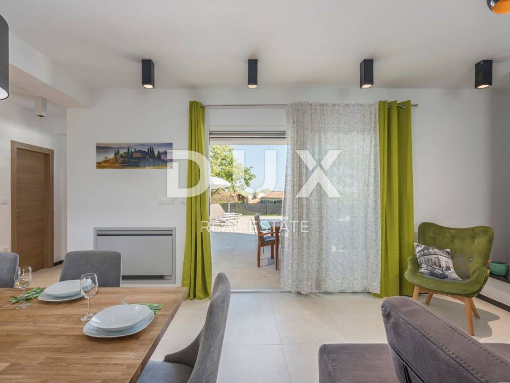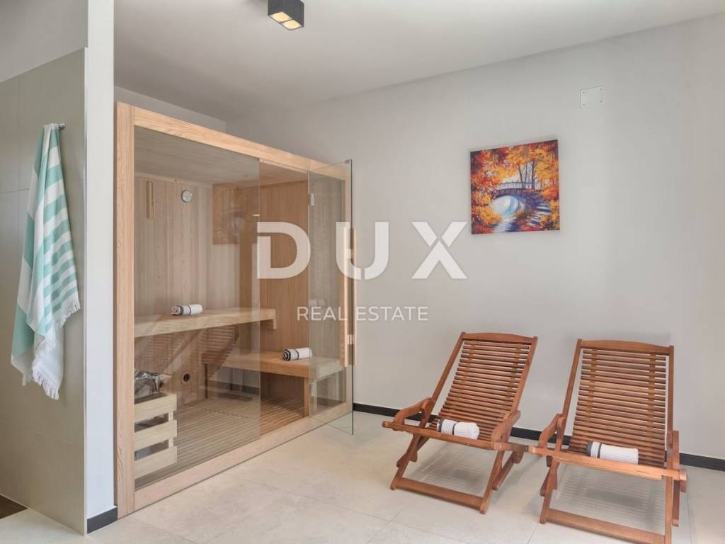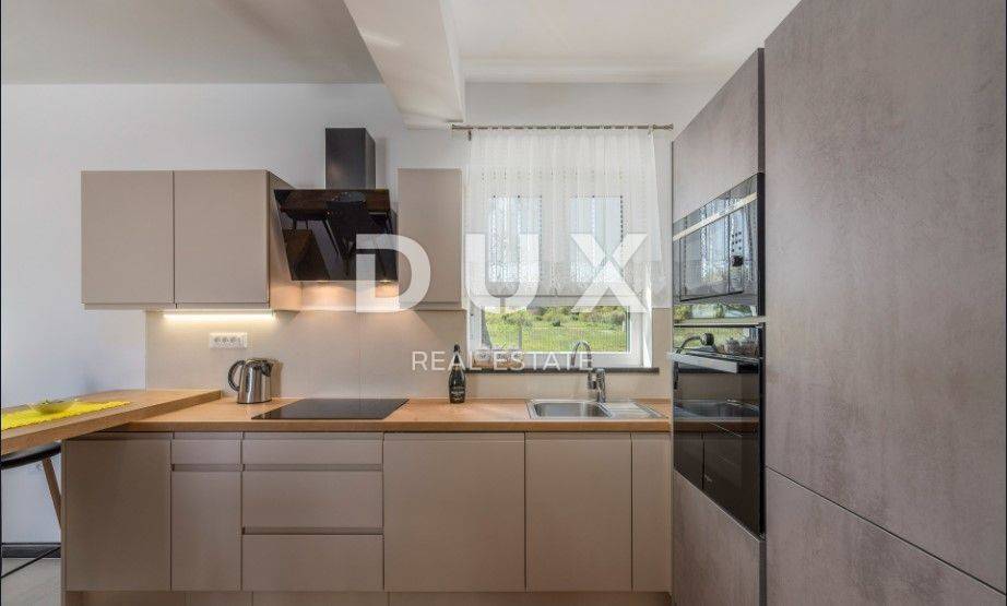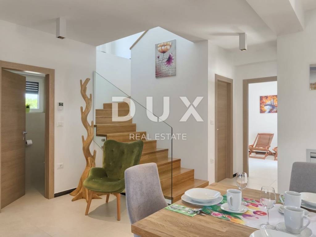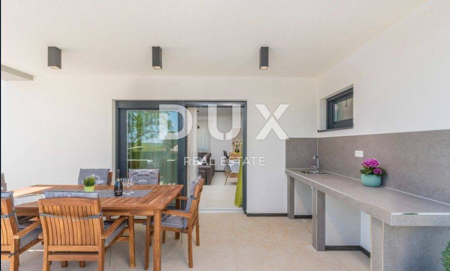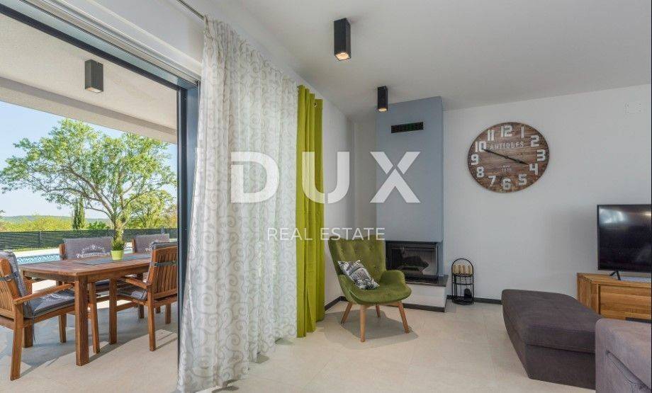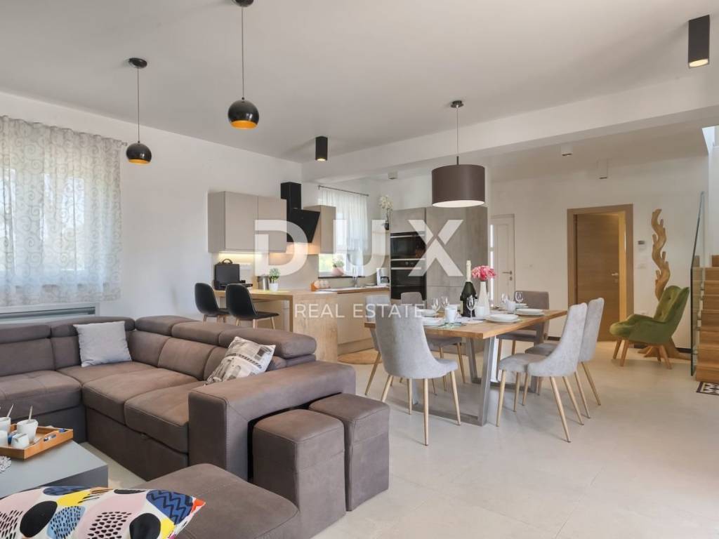 In a small town nearby This modern detached villa of 144m2 is located in Pula on a plot of 1001 m2 and a swimming pool of 40m2. It consists of ground and first floor. The ground floor has an open space with kitchen and dining area, living room and area with sauna. The living room opens onto a terrace with a swimming pool and a children's playground. Upstairs are 3 bedrooms each with its own private bathroom. In the hallway there is an exit to the common terrace which offers a view of the Istrian hills and the sea in the distance. The villa is fully air conditioned and has underfloor heating. The parking lot is fenced with 3 parking spaces. This property is a great opportunity for investment, as it is located in a well-established tourist rental or for a quiet family life close to all amenities and the sea.